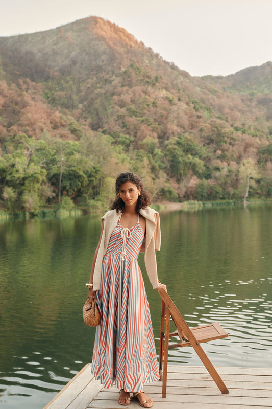 Navy High Tide Embroidered Stripe Gabriella Dress