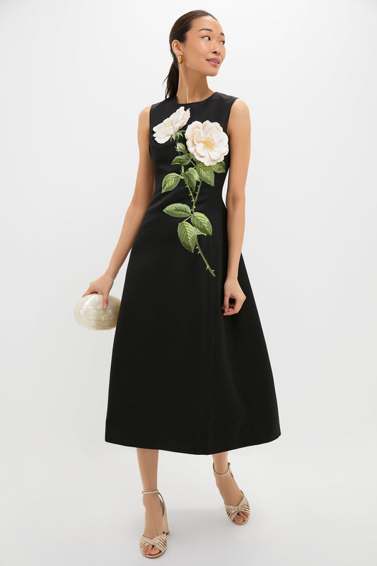 White Rose Printed Cleo Embellished Sleeveless Midi Dress