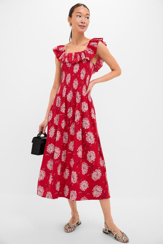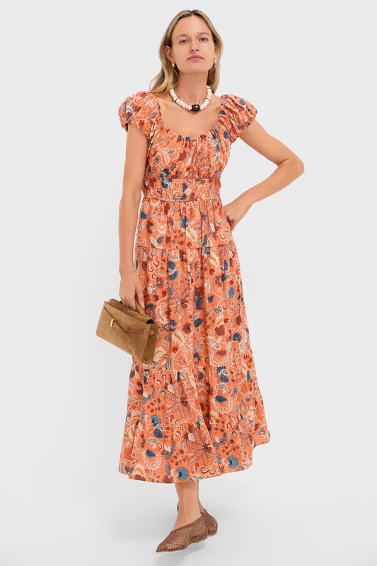 Coral Peony Paloma Cap Sleeve Midi Dress