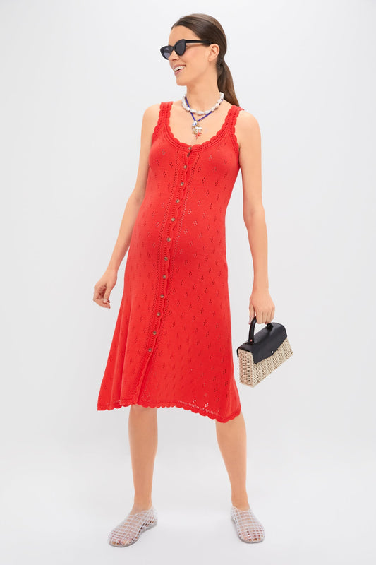 Hibiscus Red Linen Flutter Sleeve Bella Dress