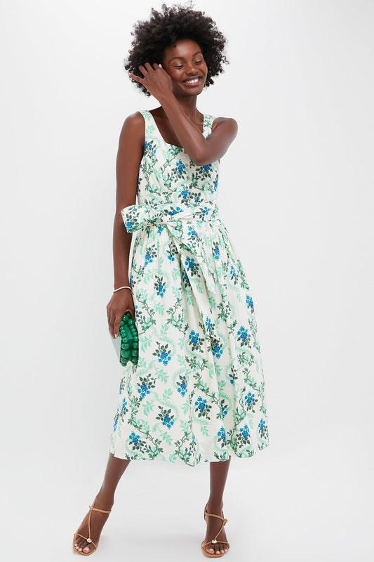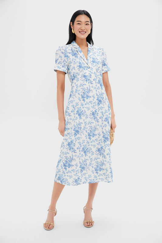 Cerulean Vine Cotton Poplin Lachlan Dress
