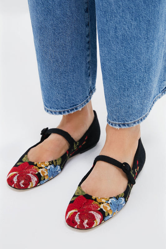 Larroude x Markarian Floral Wool and Black Embroidery Flats