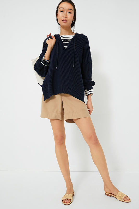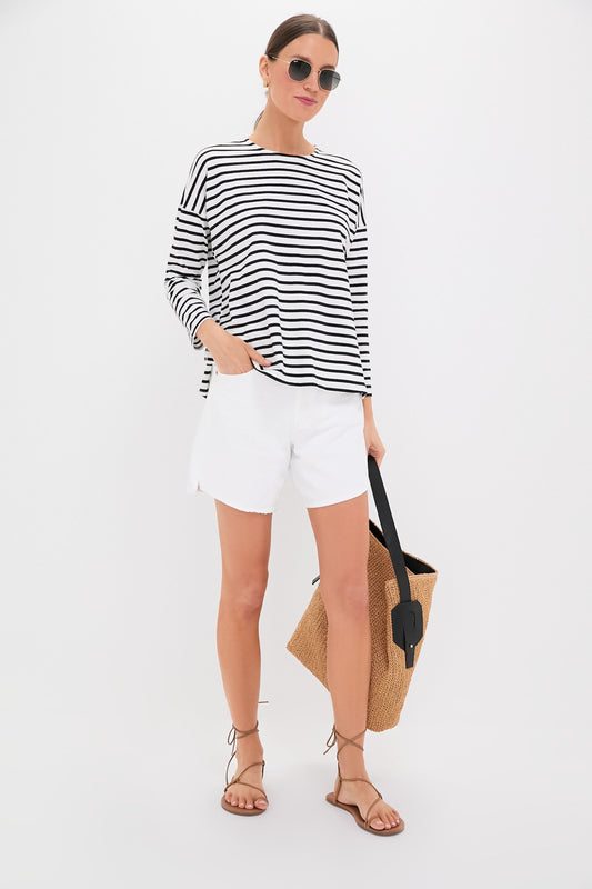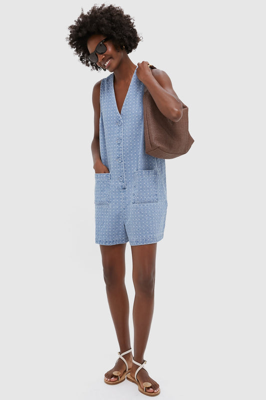White and Klein Blue High Waist Shorts with Bellflower Block Print
