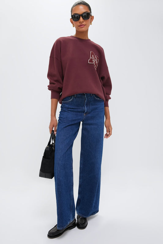 Dark Burgundy Miles Oversized Letterman Sweatshirt