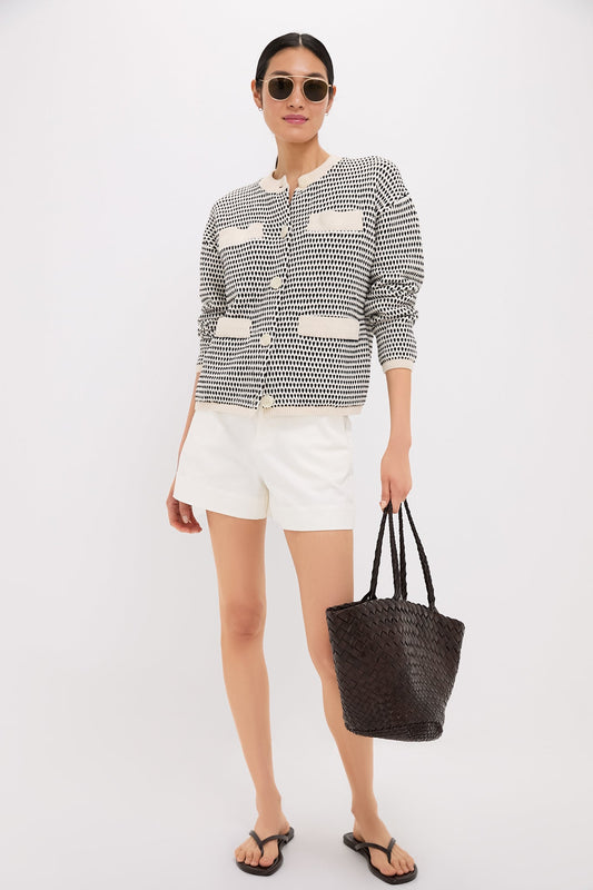 Black Pointelle Classic Crew Cardigan