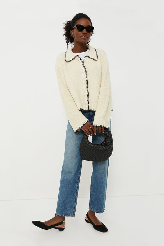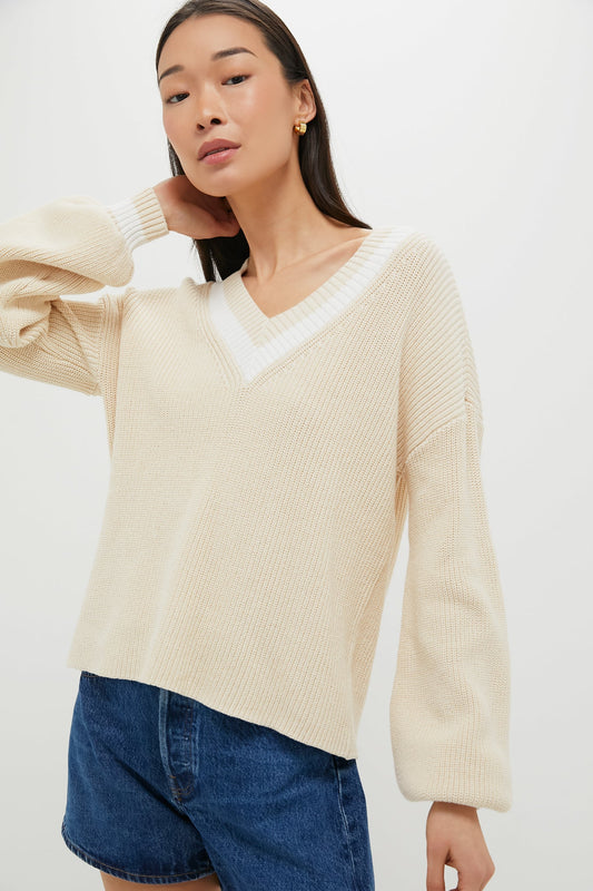 Indigo and Ecru Short Sleeve Pullover Sweater