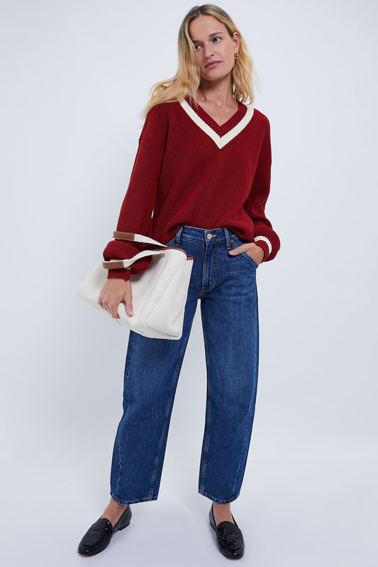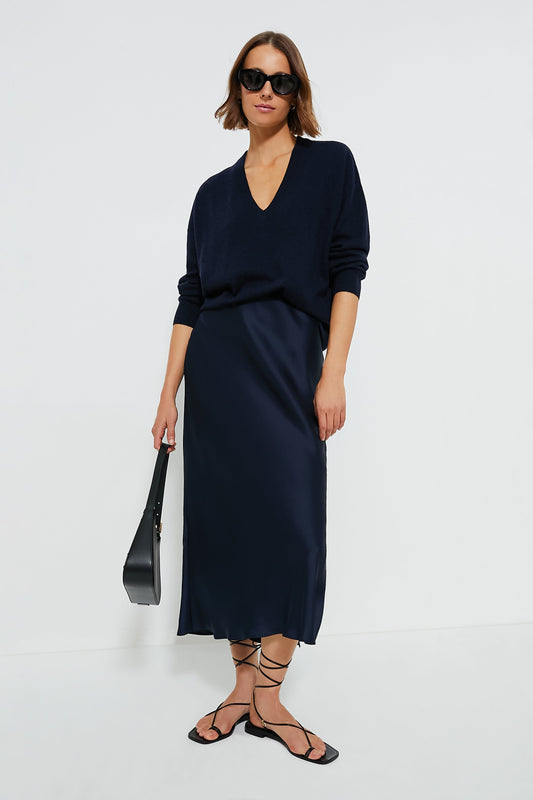 Navy Cashmere Emma V-Neck Boyfriend Sweater