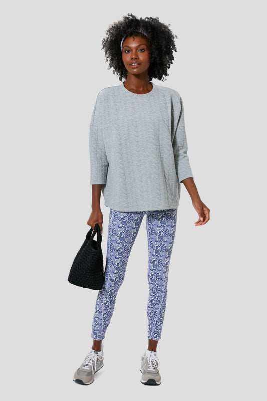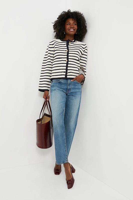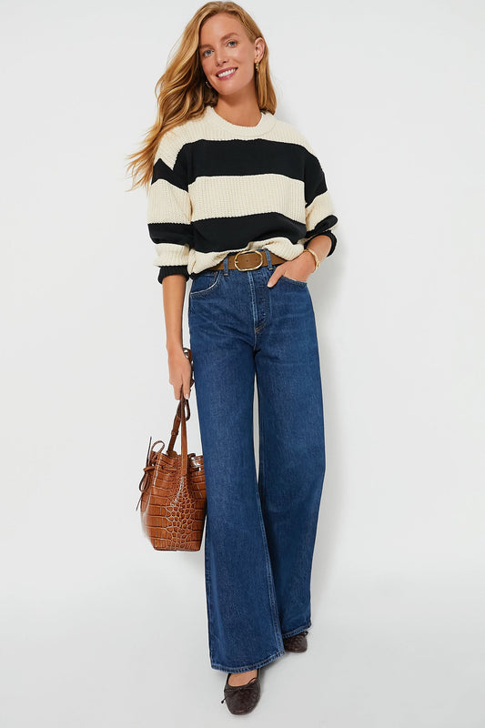 Mocha and Ivory Pointelle Stripe Maxine Sweater