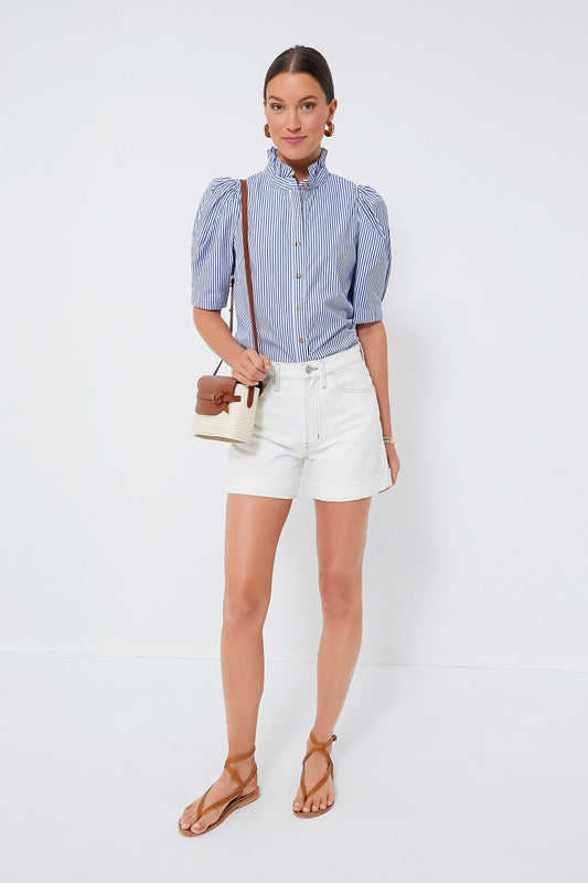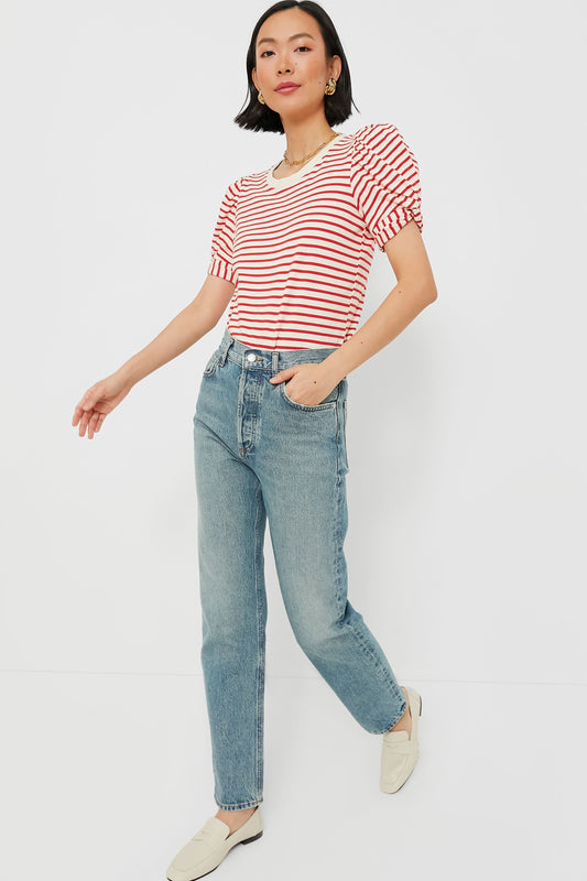 Red Striped Vesty Puff Short Sleeve Crewneck