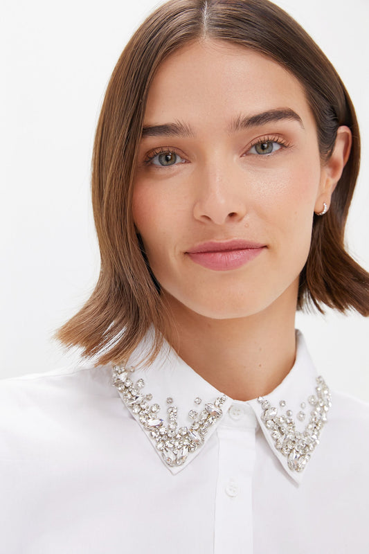 White Embellished Cropped Jasper Button Down