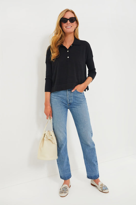 Black Clayton Long Sleeve Knit Polo