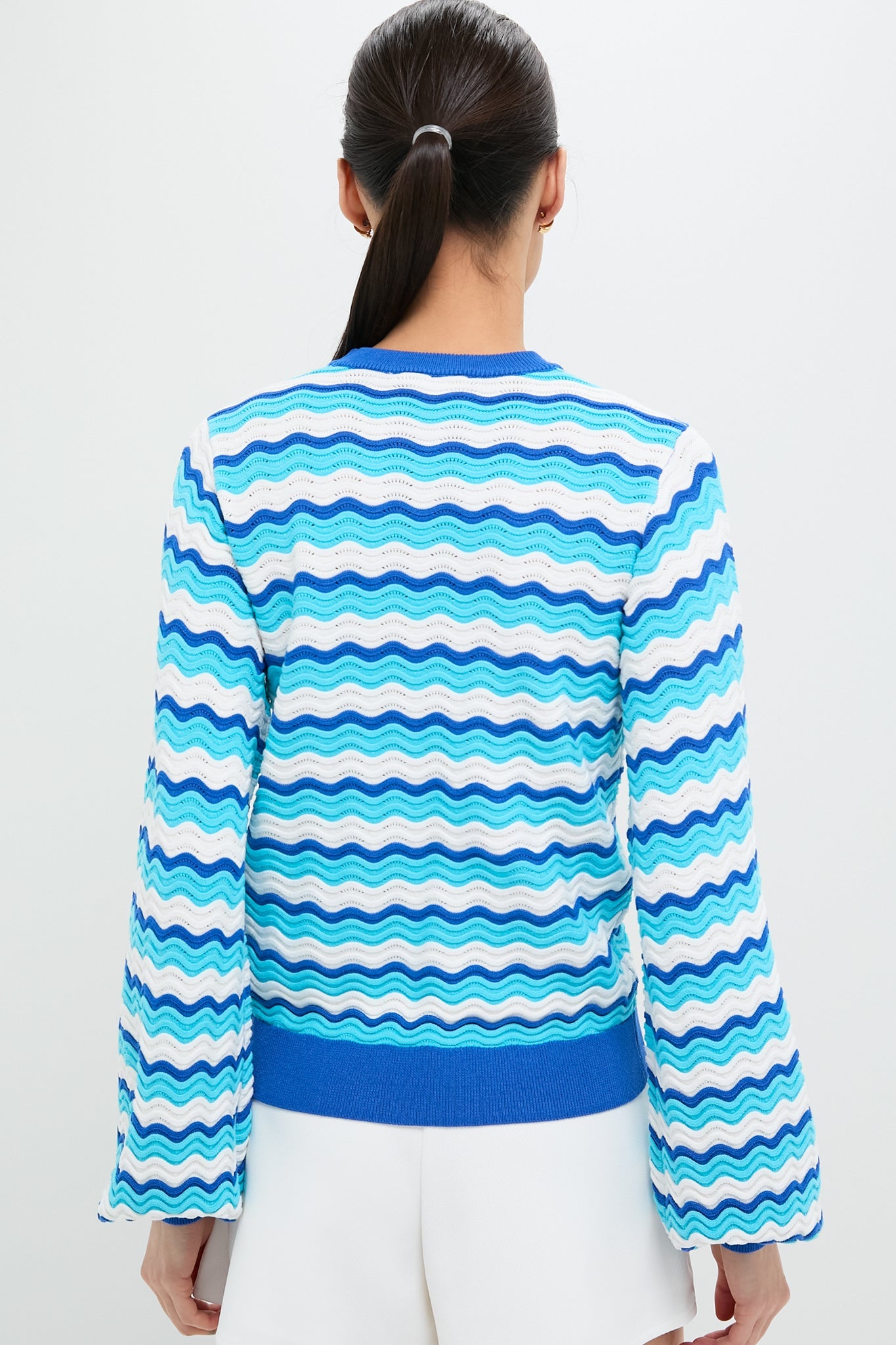 The Aqua Wavy Stripe Callie Crewneck is a unique pullover that is sure to turn heads. This flattering silhouette includes long balloon sleeves and ribbing along the neckline, cuffs, and hem. The colorful wavy knit pattern pairs nicely with everything from denim to mini skirts!
