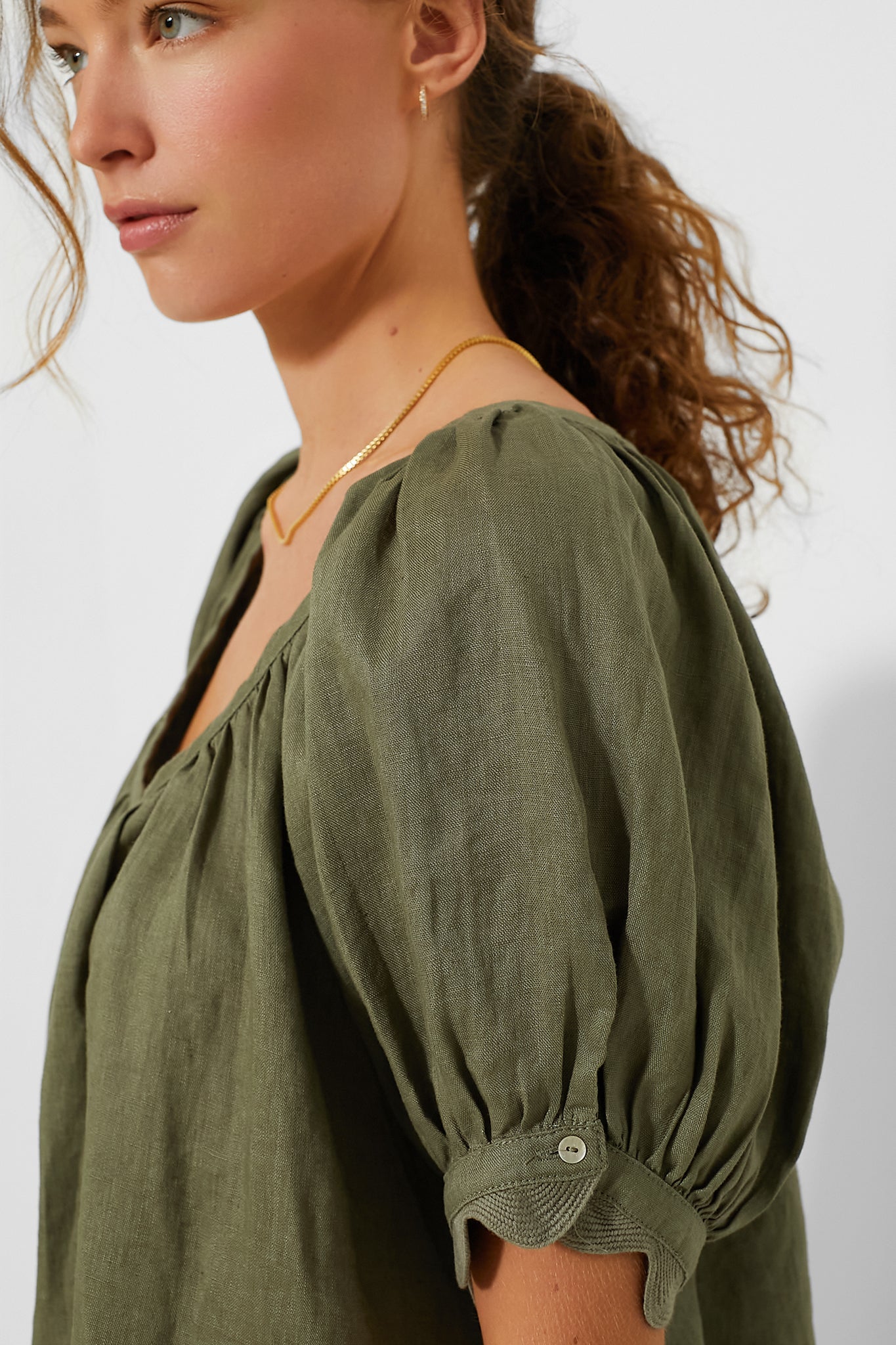 Army Green Linen Tully Top