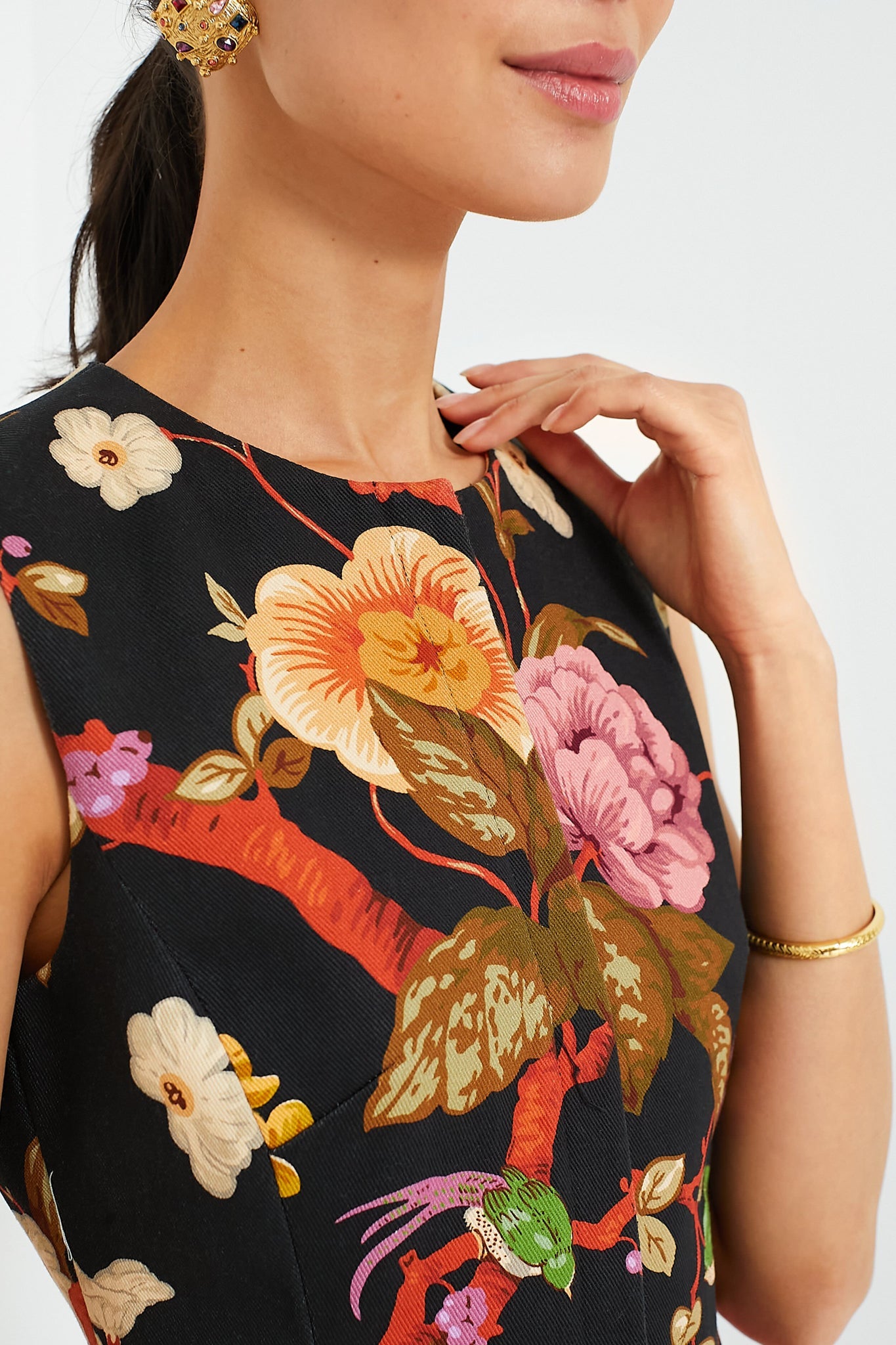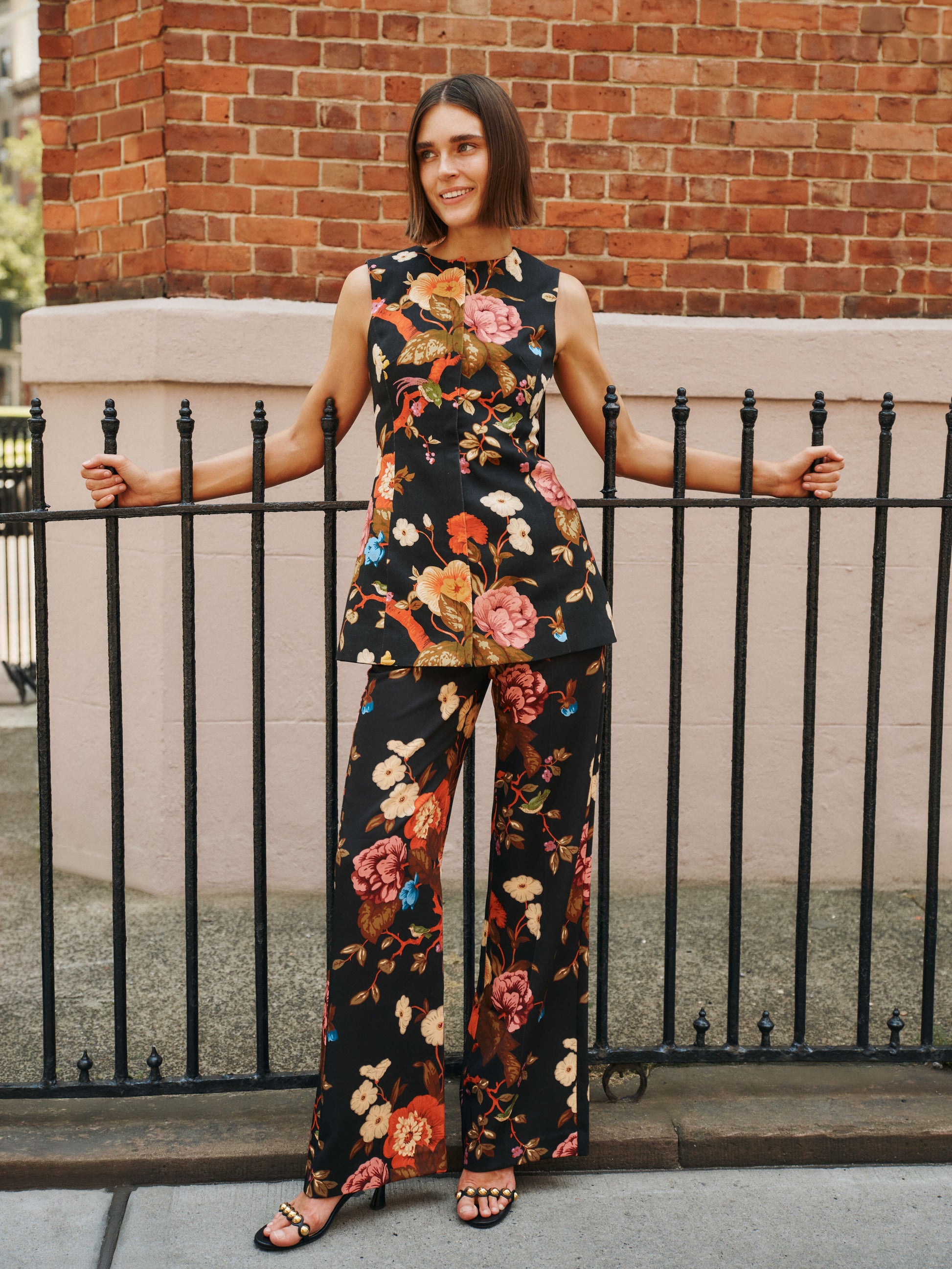 Step out in style and comfort in the Rhoda Tunic Top. Featuring our signature Baroque Floral print and an elegant silhouette, this sleeveless blouse is perfect for everything from date night to cocktail. Pair with gold accessories and the matching Erin Pants for a monochromatic look sure to stun, or wear separately with black jeans and golden studs for a casual yet elevated look.