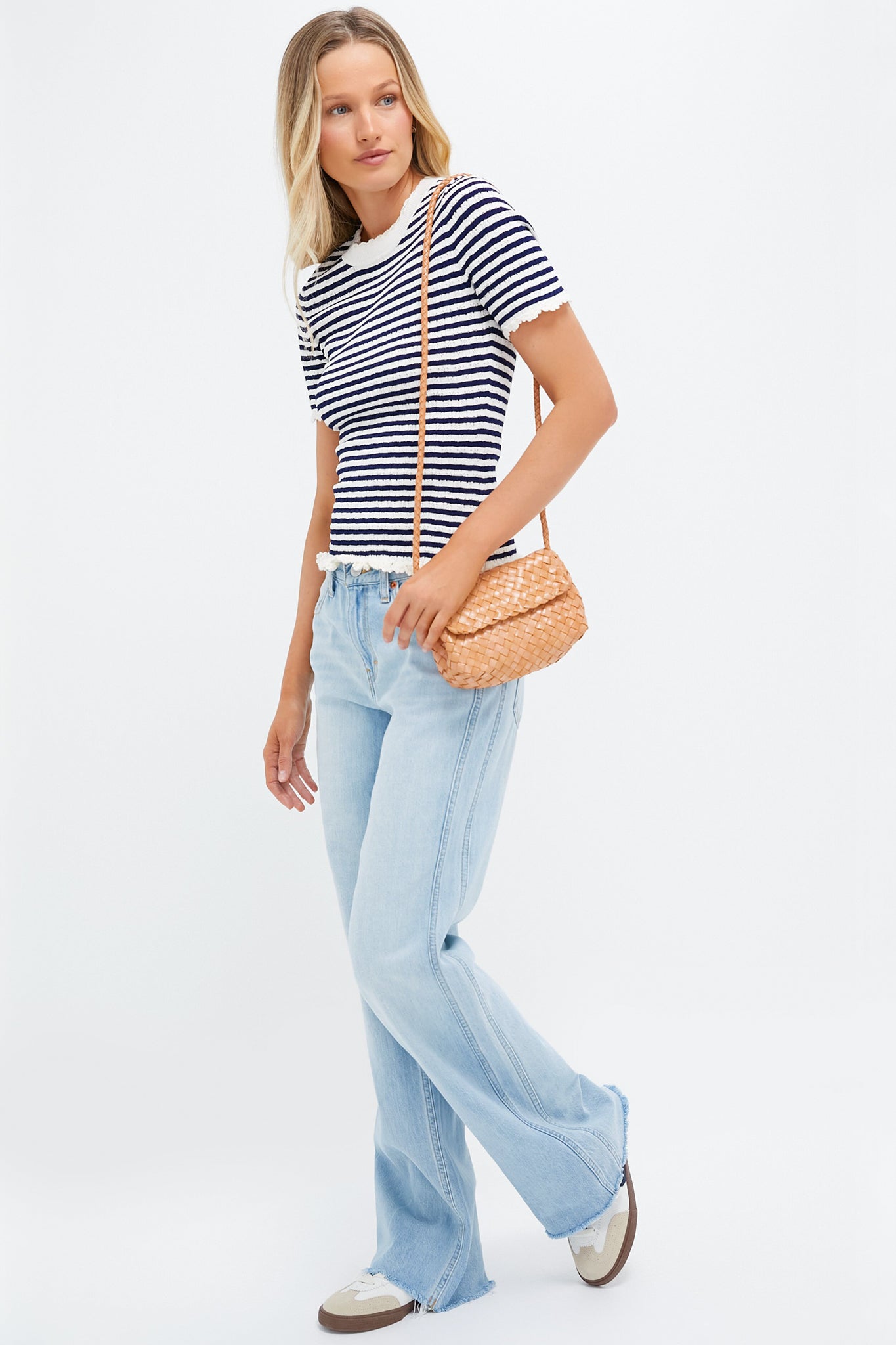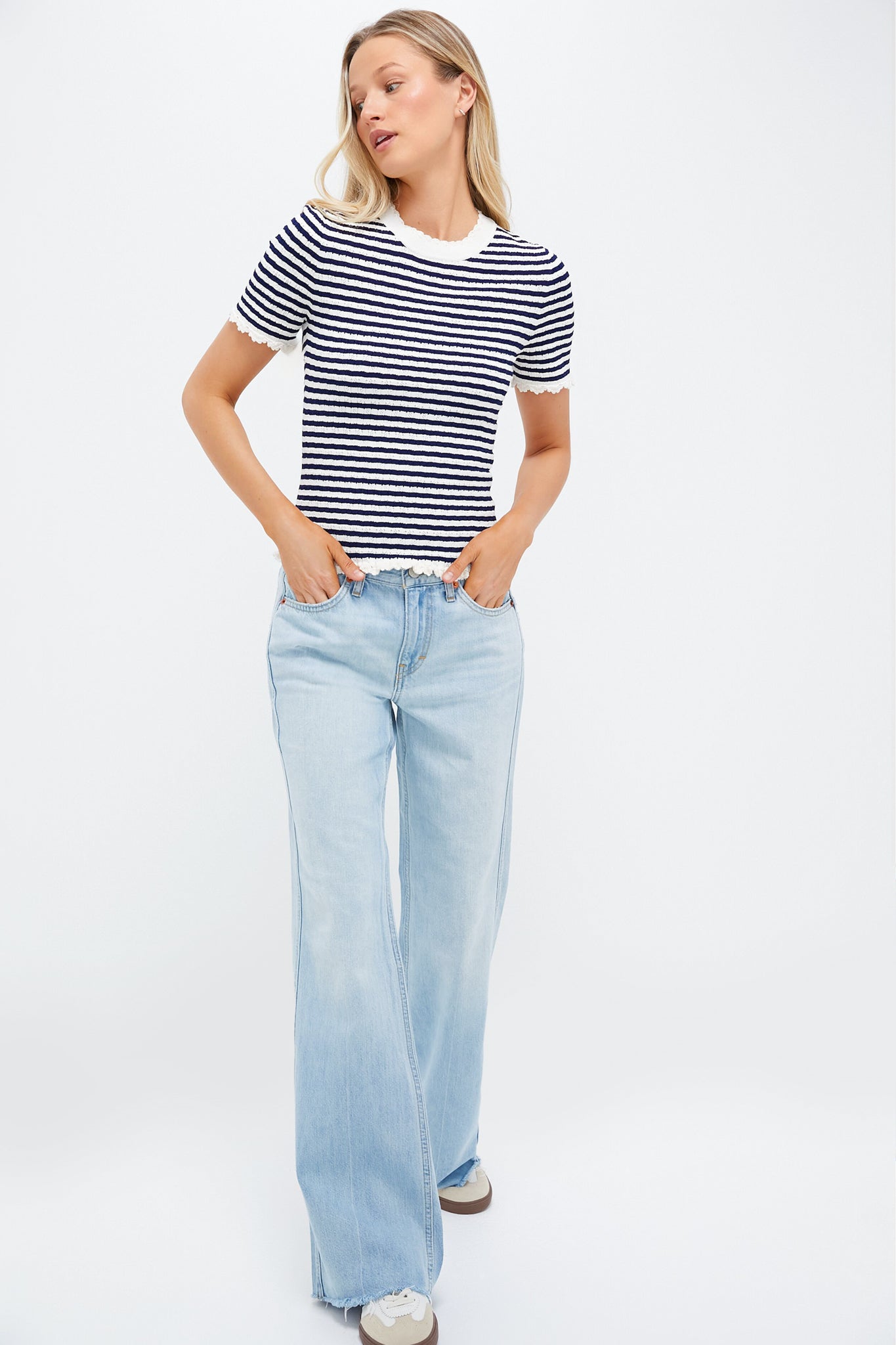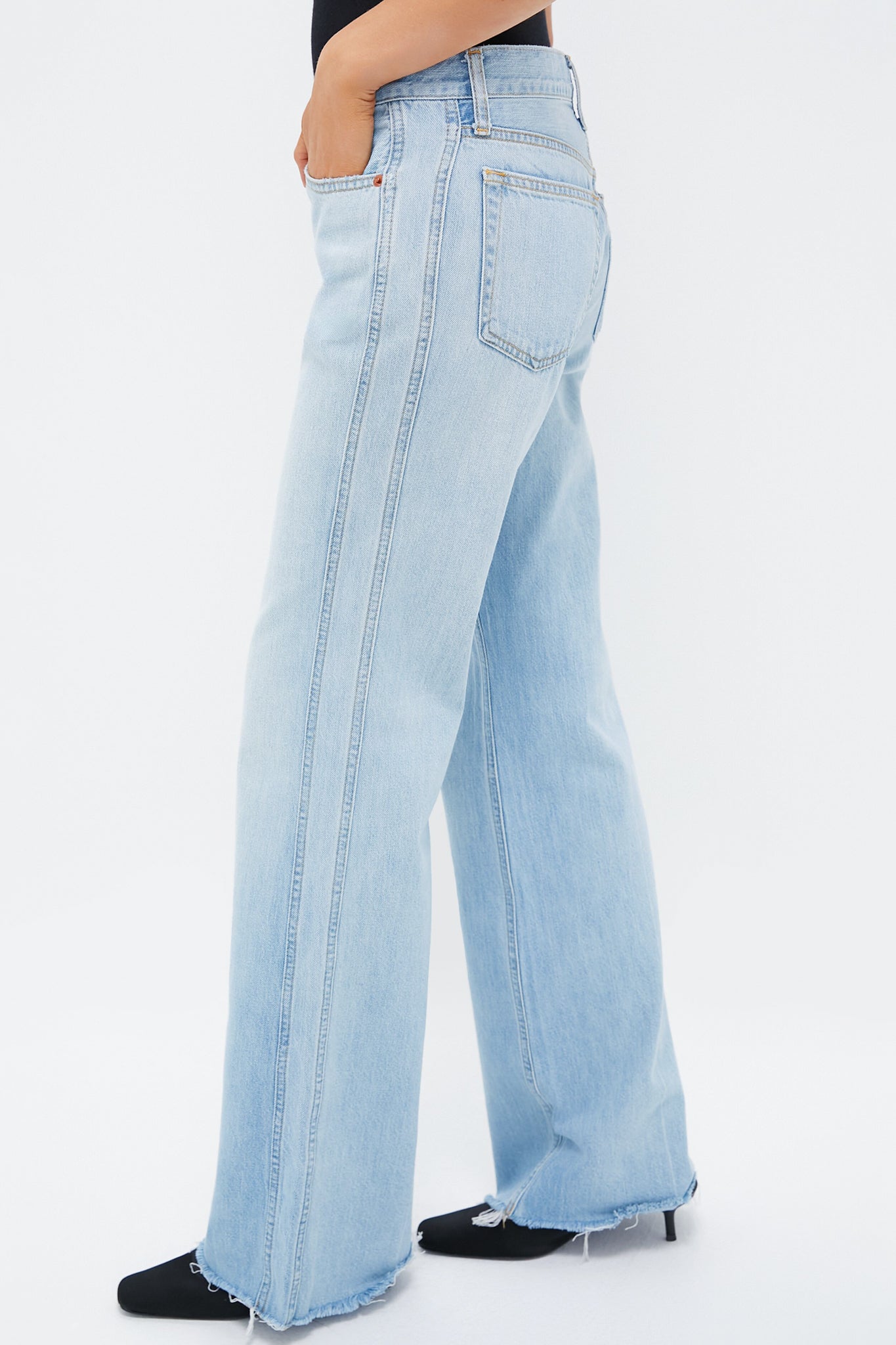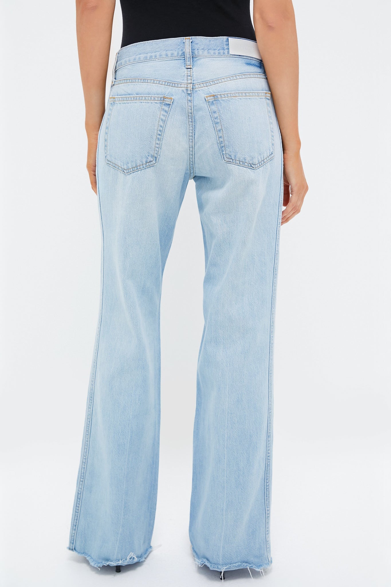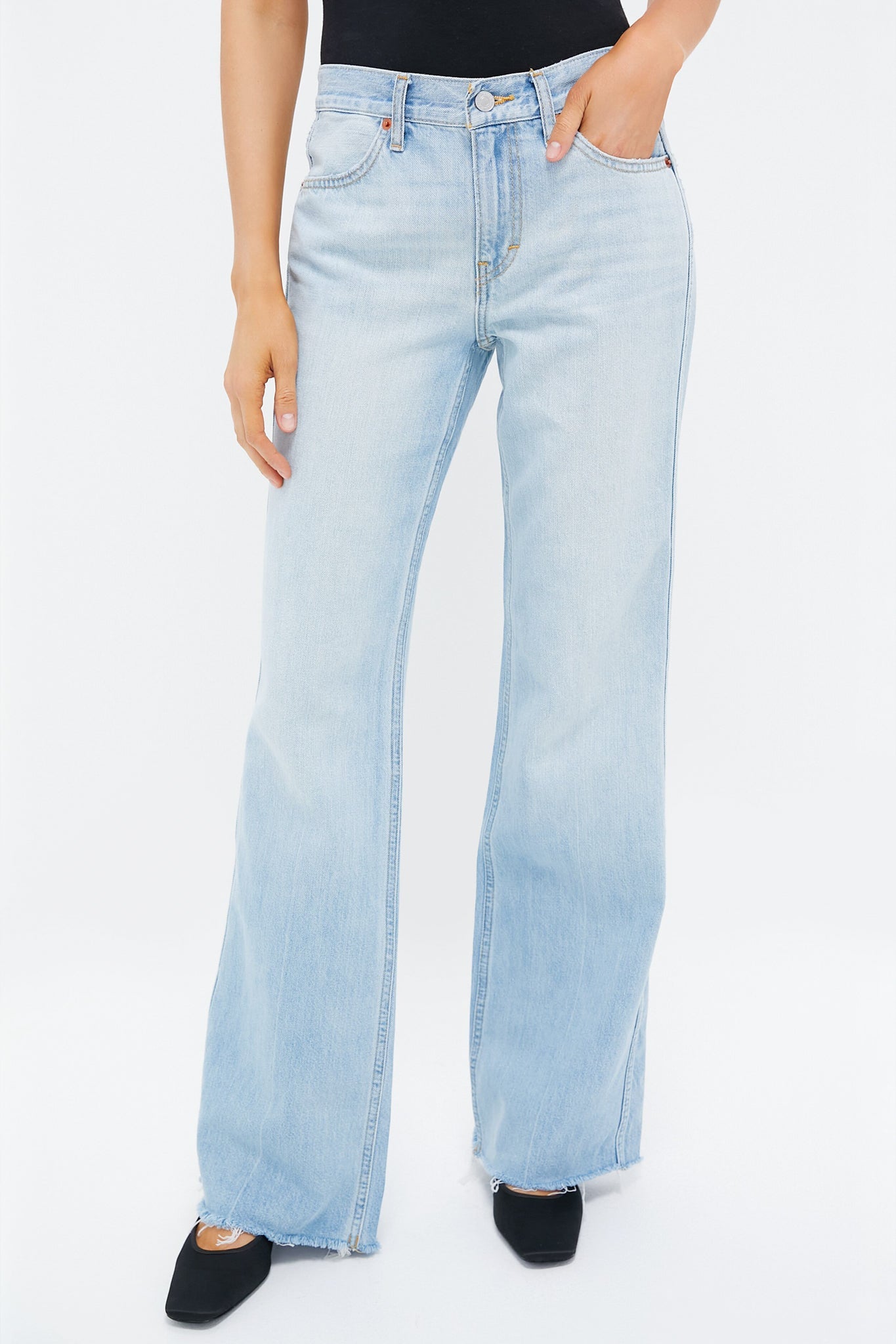 The Big Sur The Californian is the perfect light wash denim to add to your closet! With a mid rise, slightly flared silhouette, and frayed hem, this easy breezy denim can be styled with blouses, tees, tank tops, and sweaters alike!