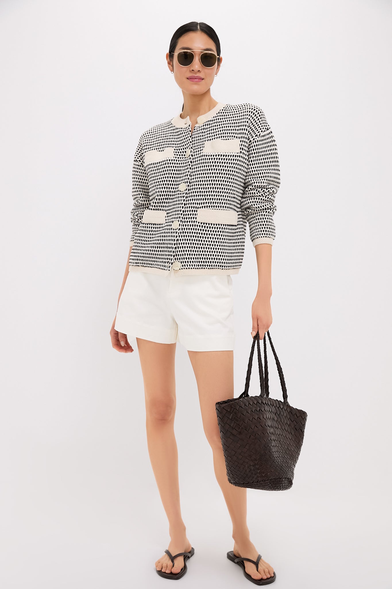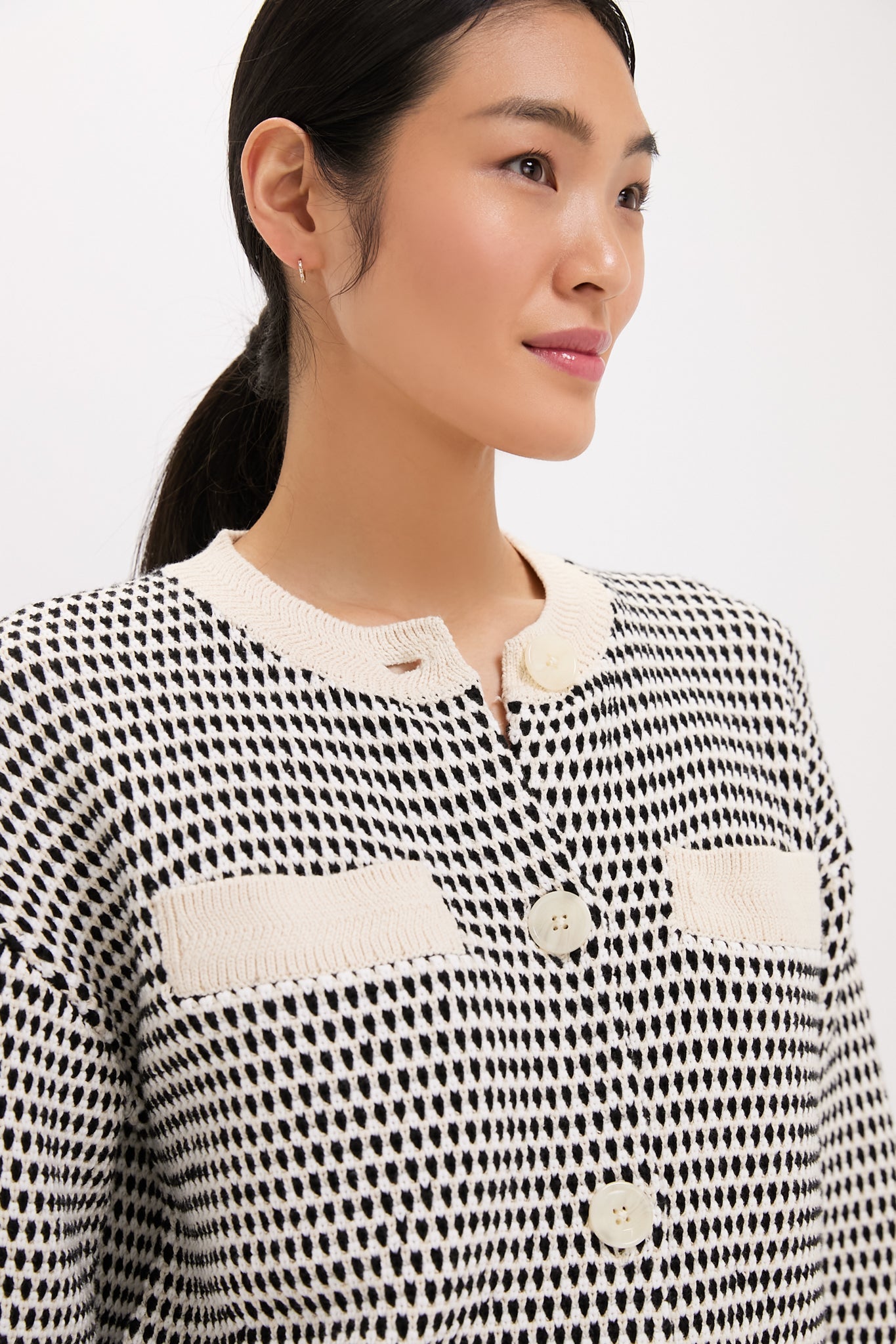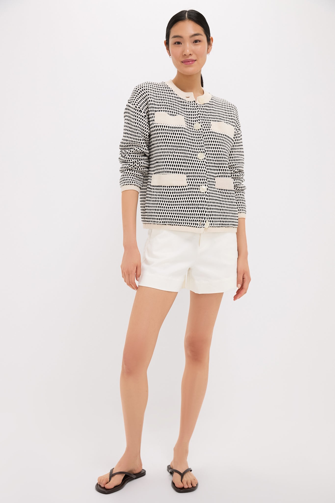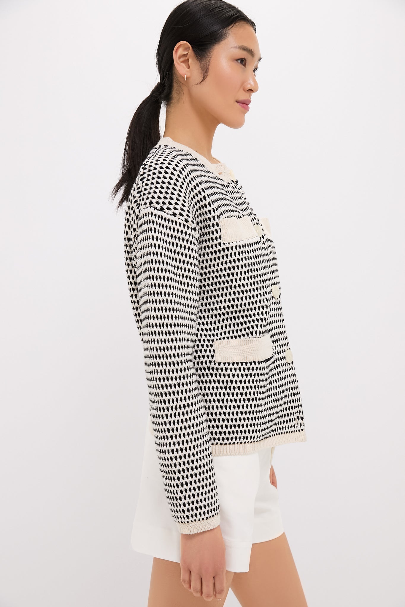 Perfect for any season, this textured knit jacket combines a timeless silhouette with modern charm. Featuring a button-front closure and multi-stitch detailing, it offers a versatile standard fit that's effortlessly stylish. Pair with denim and flats for a causal-cool look, or dress up with a mini skirt and boots!