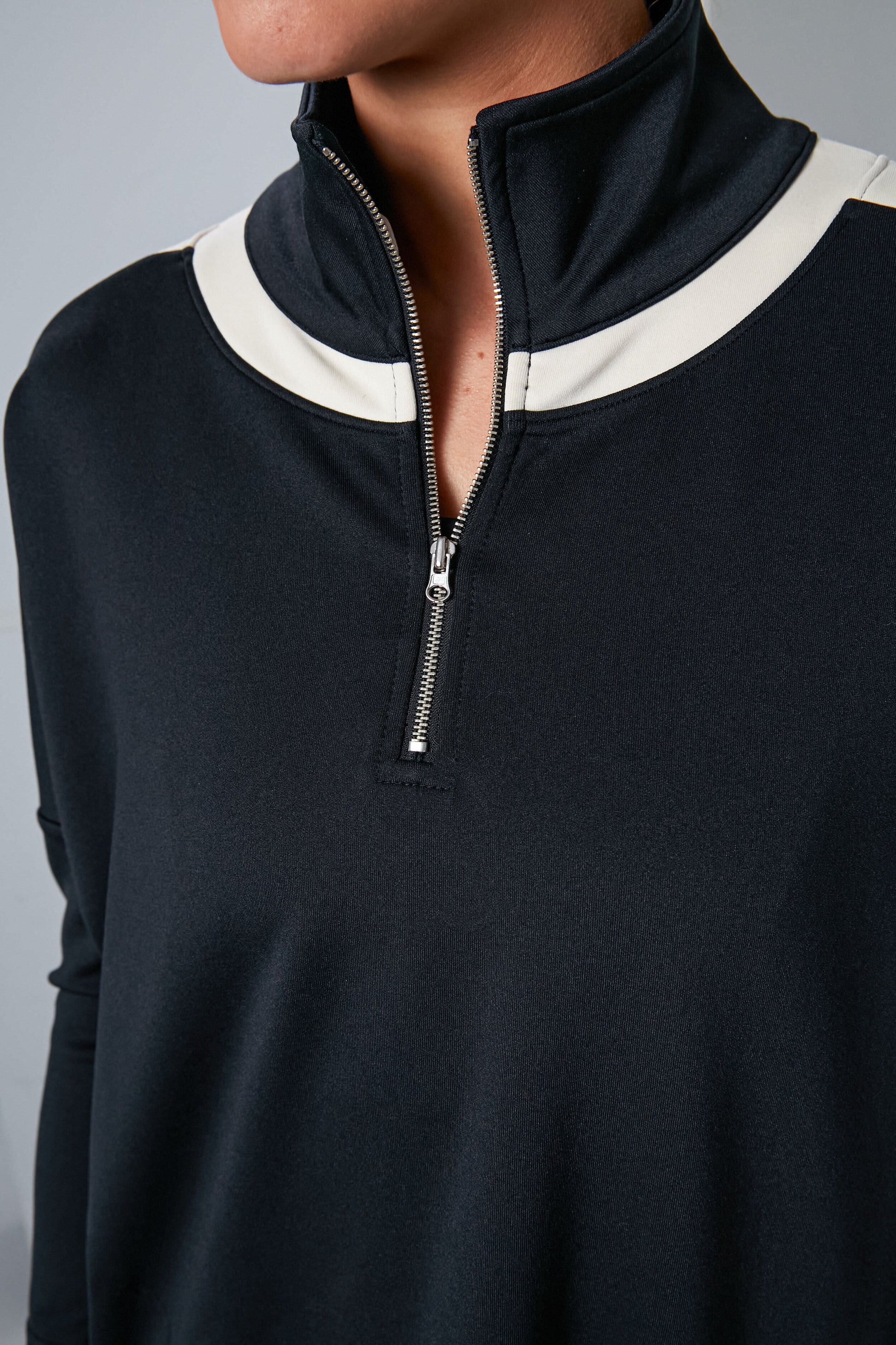 Have an elegant and classic look in the Amelie Quarter Zip! Wear over a tennis dress for a chilly evening or pair with a tennis skirt to head to the club.