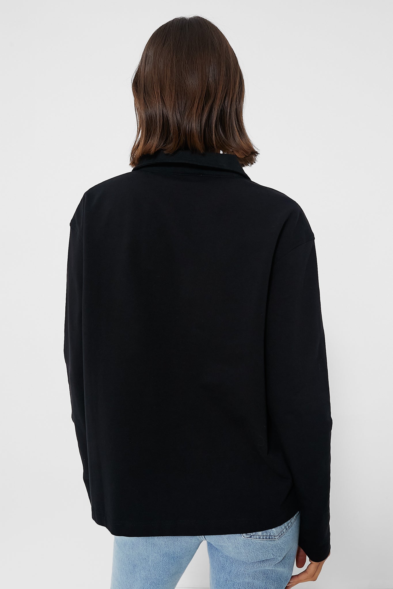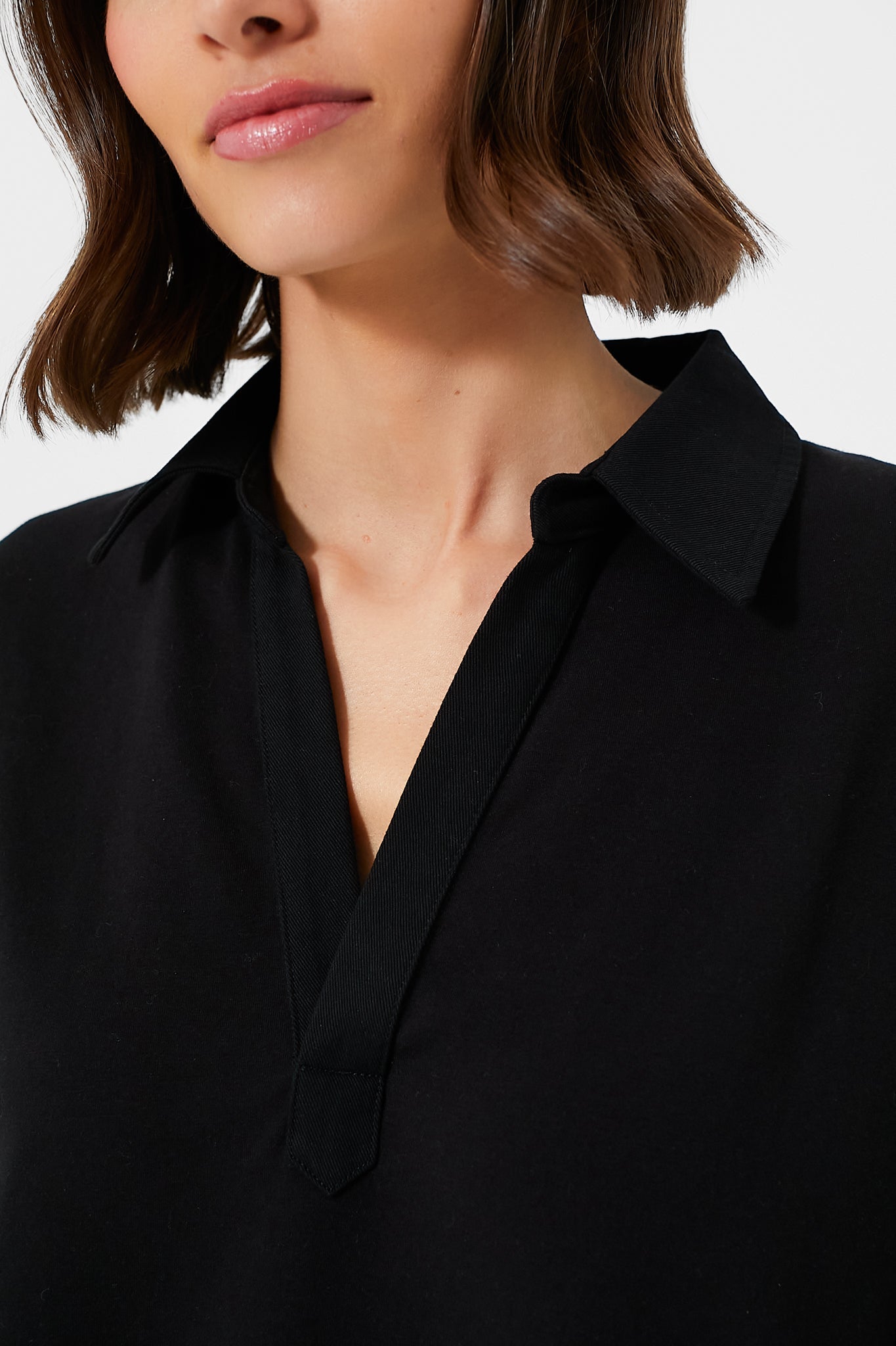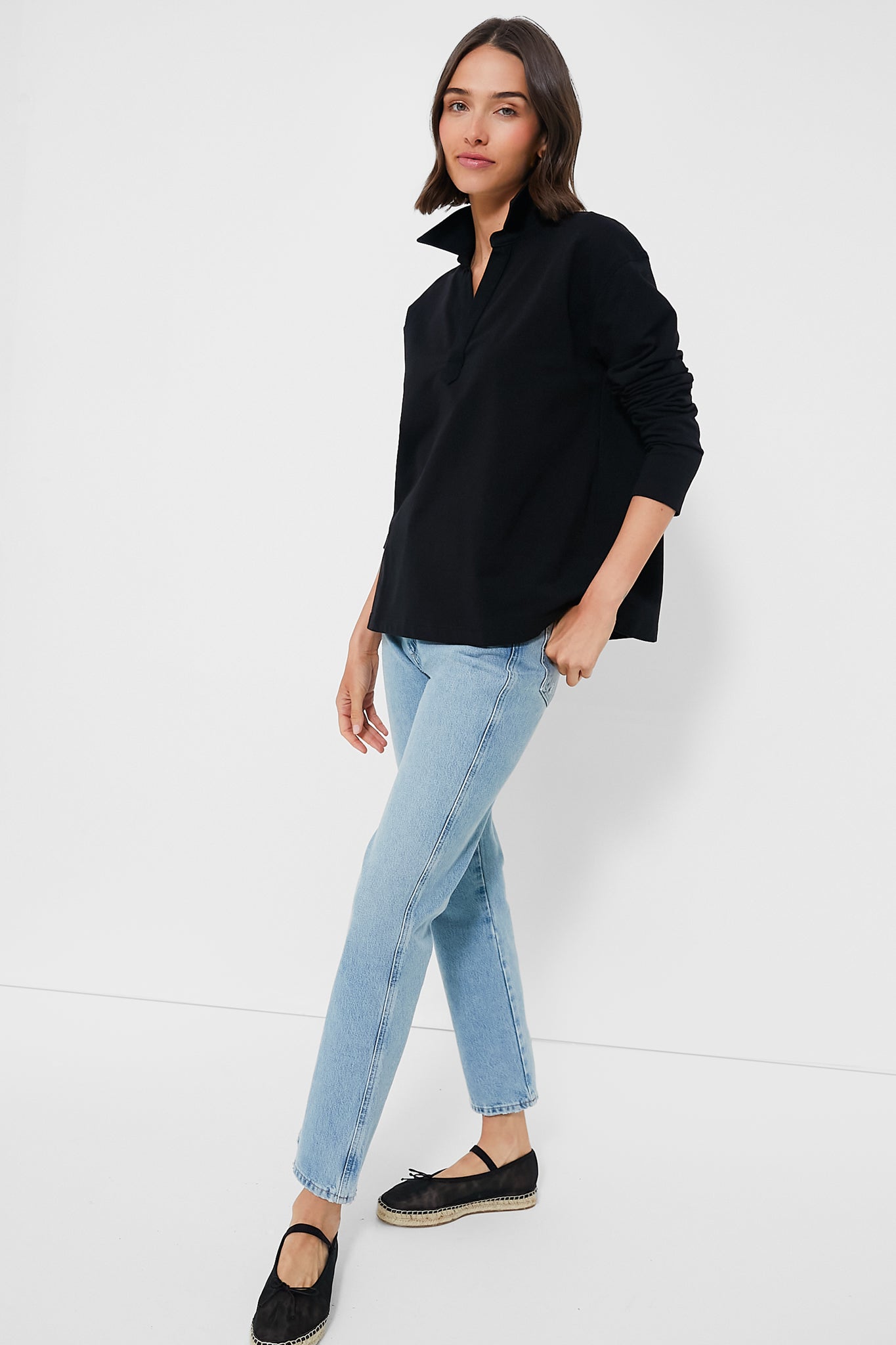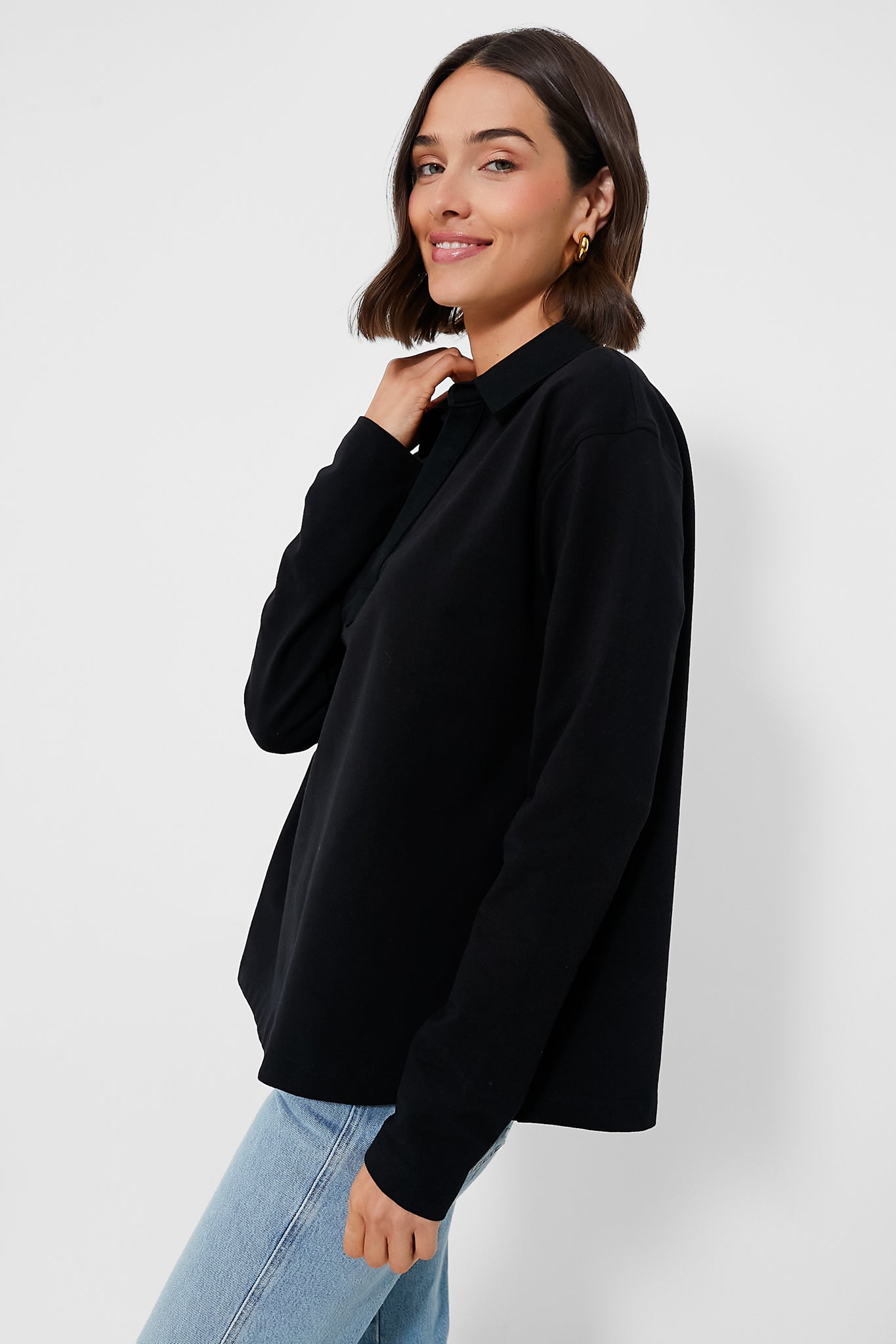 You can't go wrong with the classic Black Bradley Polo Popover. This easy, comfortable style includes elevated details such as a spread collar, V-neckline, and luxe knit body. An ideal year-round style, we are pairing this over shorts for chilly summer evenings, or with denim and boots in the cooler months.