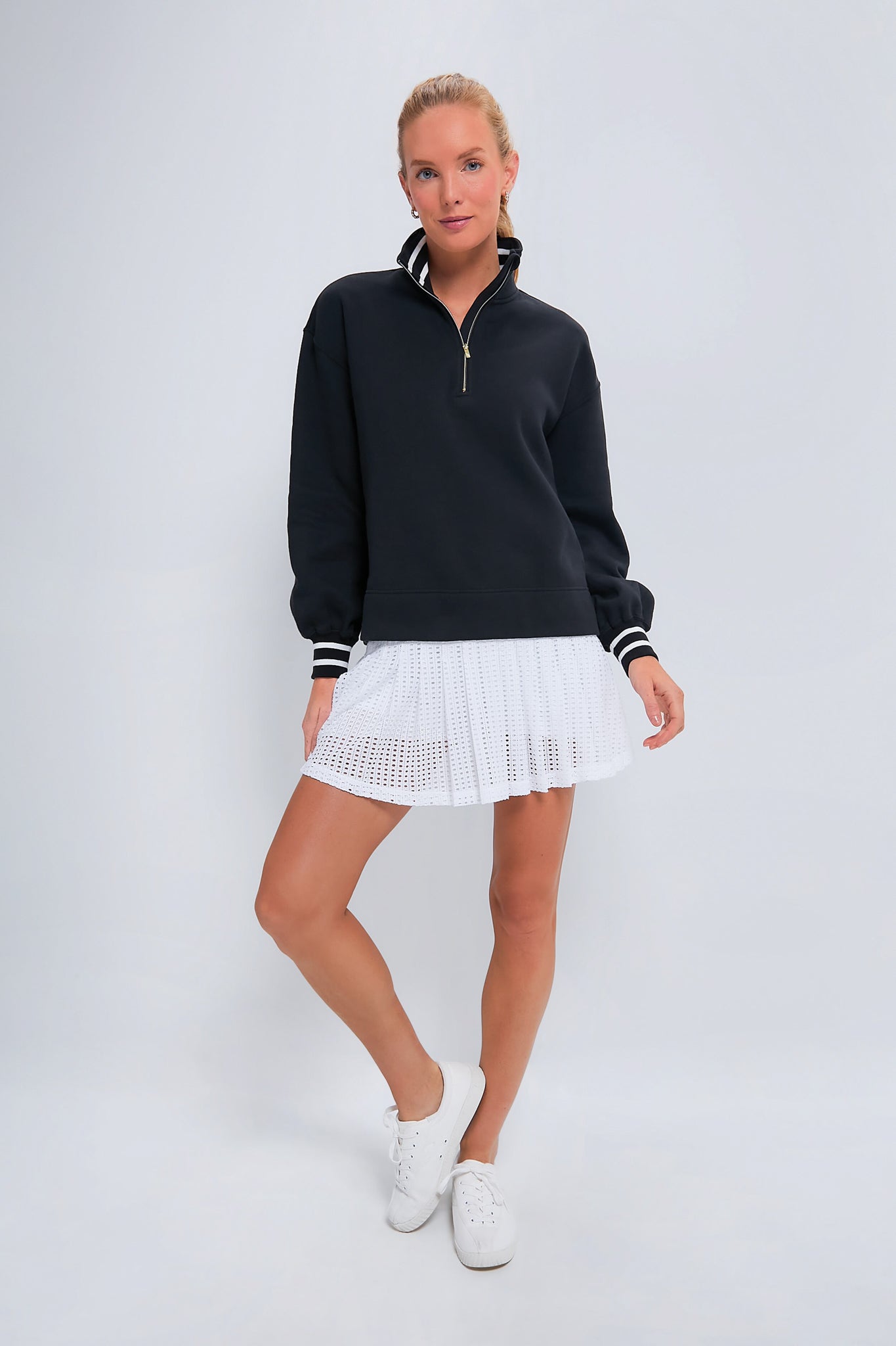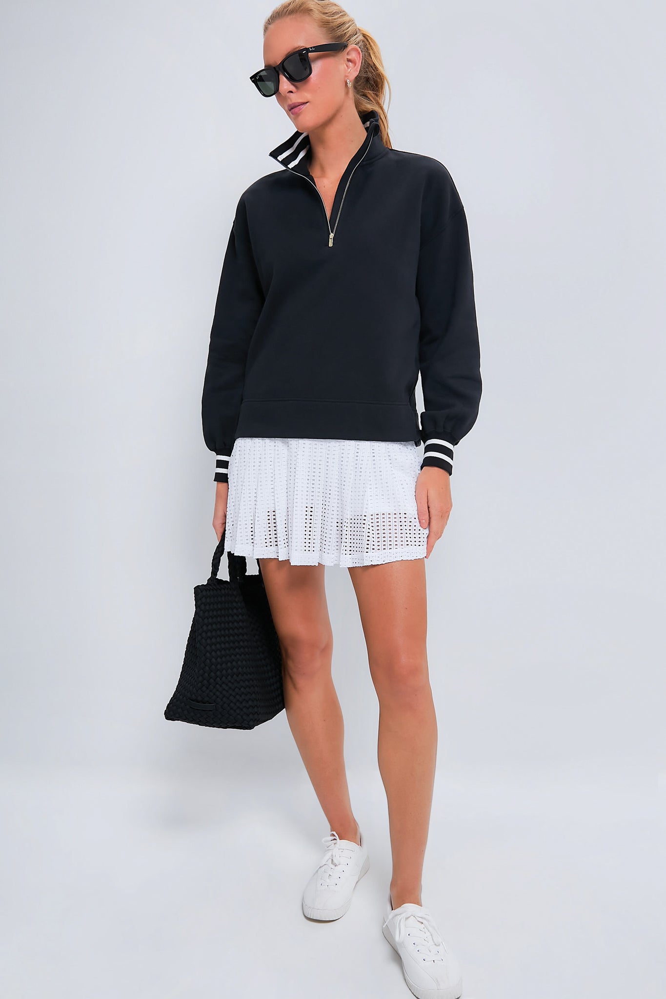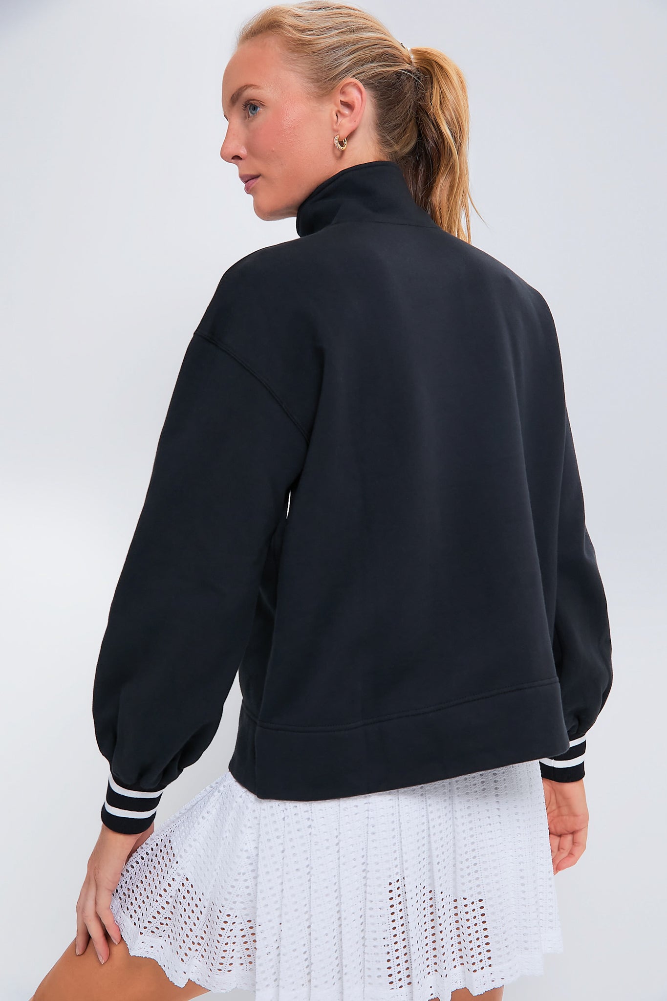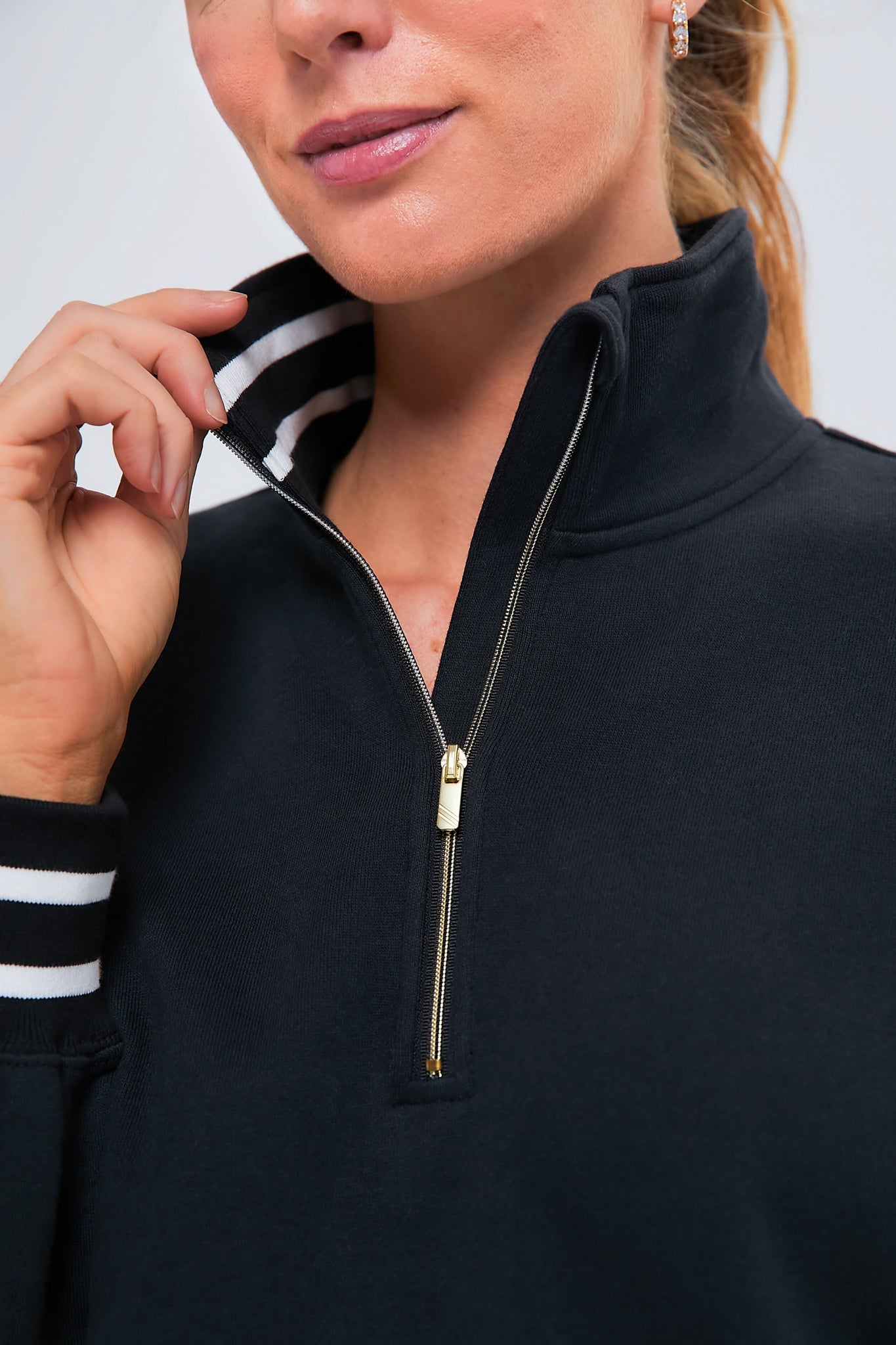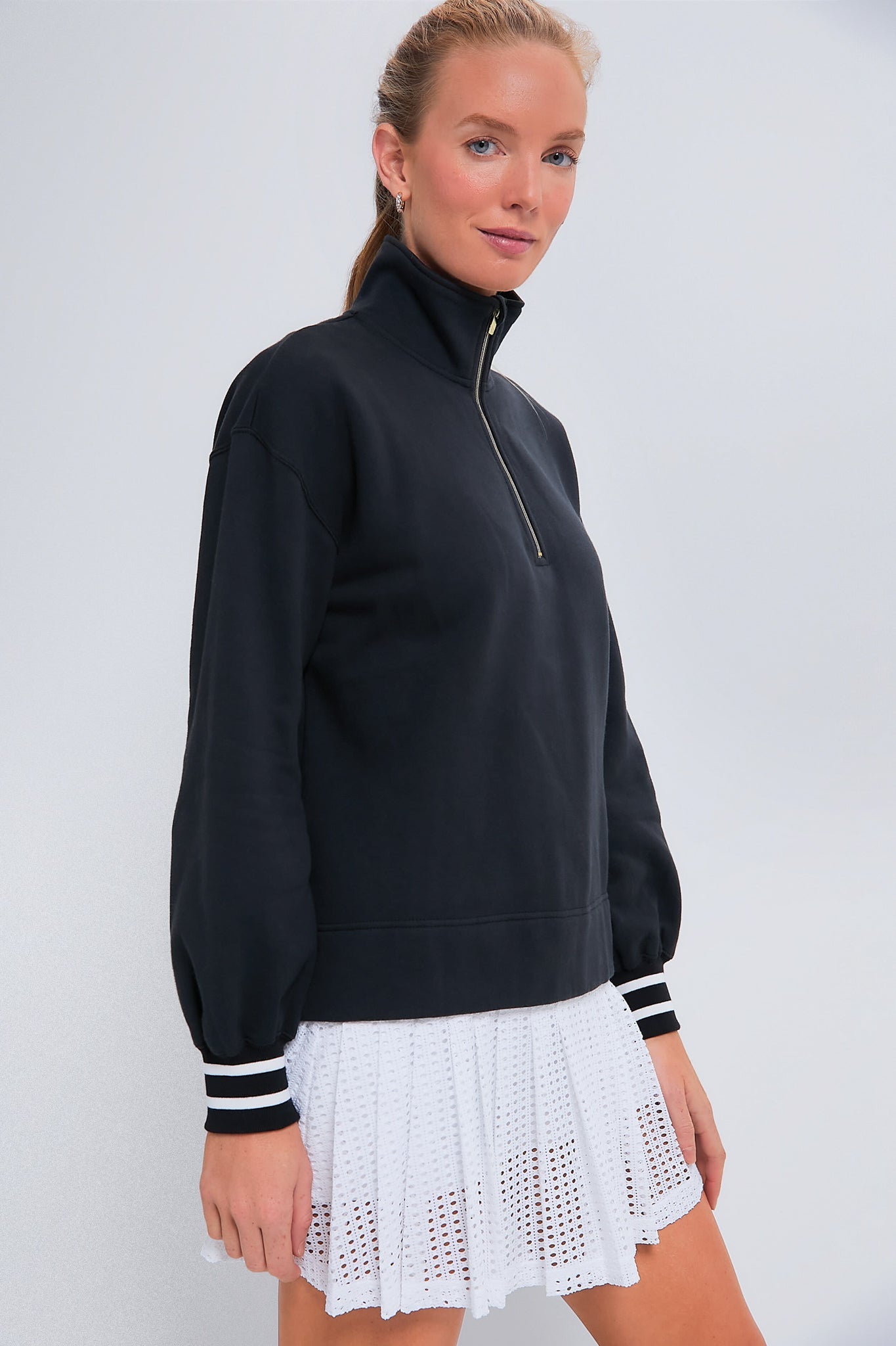 Add the Black Carlson Quarter Zip to your cart! The lantern sleeves, stripe detail, and rib trim add a fun and feminine flare to this comfy-casual look. Pair with some leggings to head to yoga or with some jean shorts for a late night snack run.