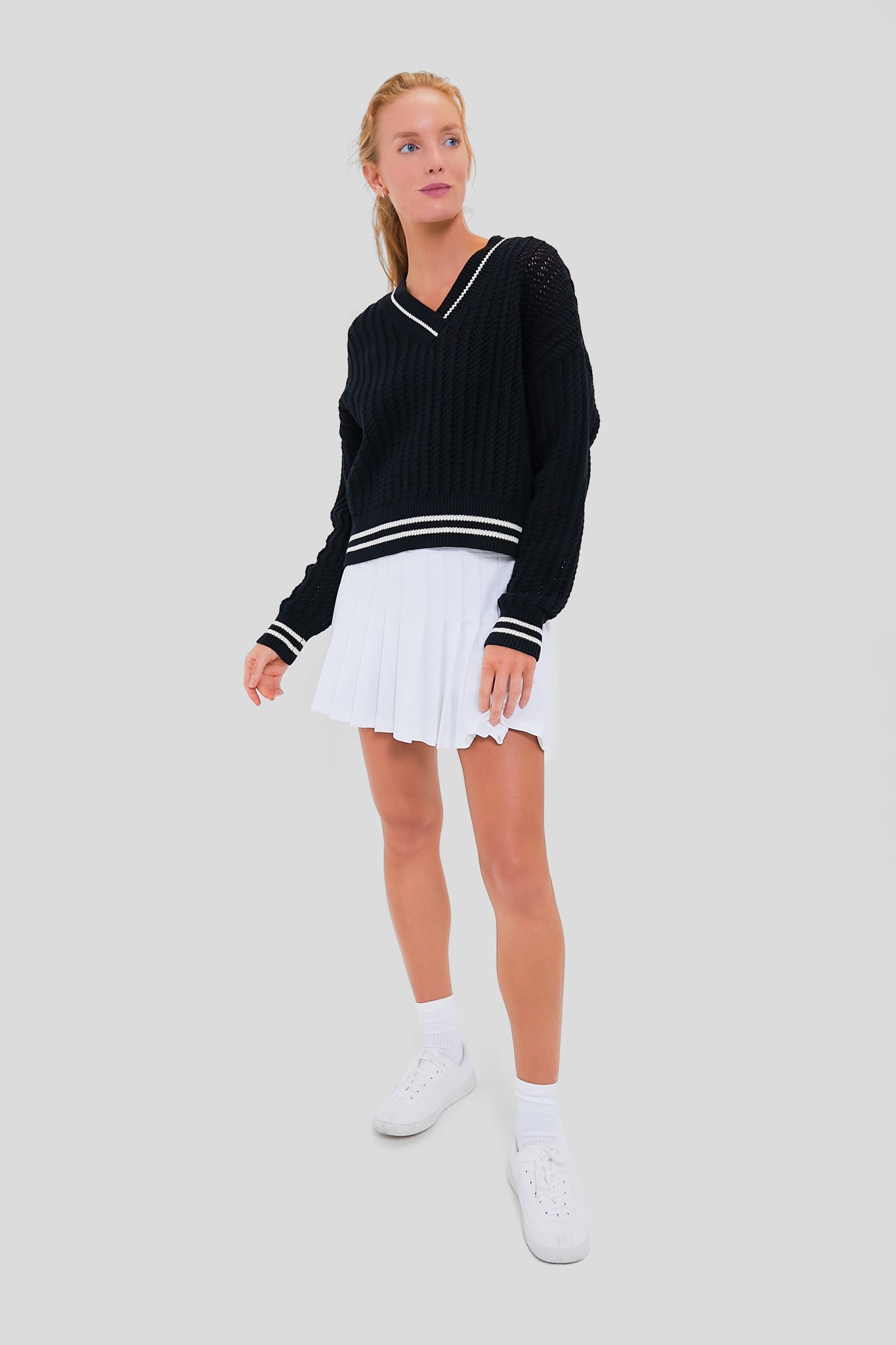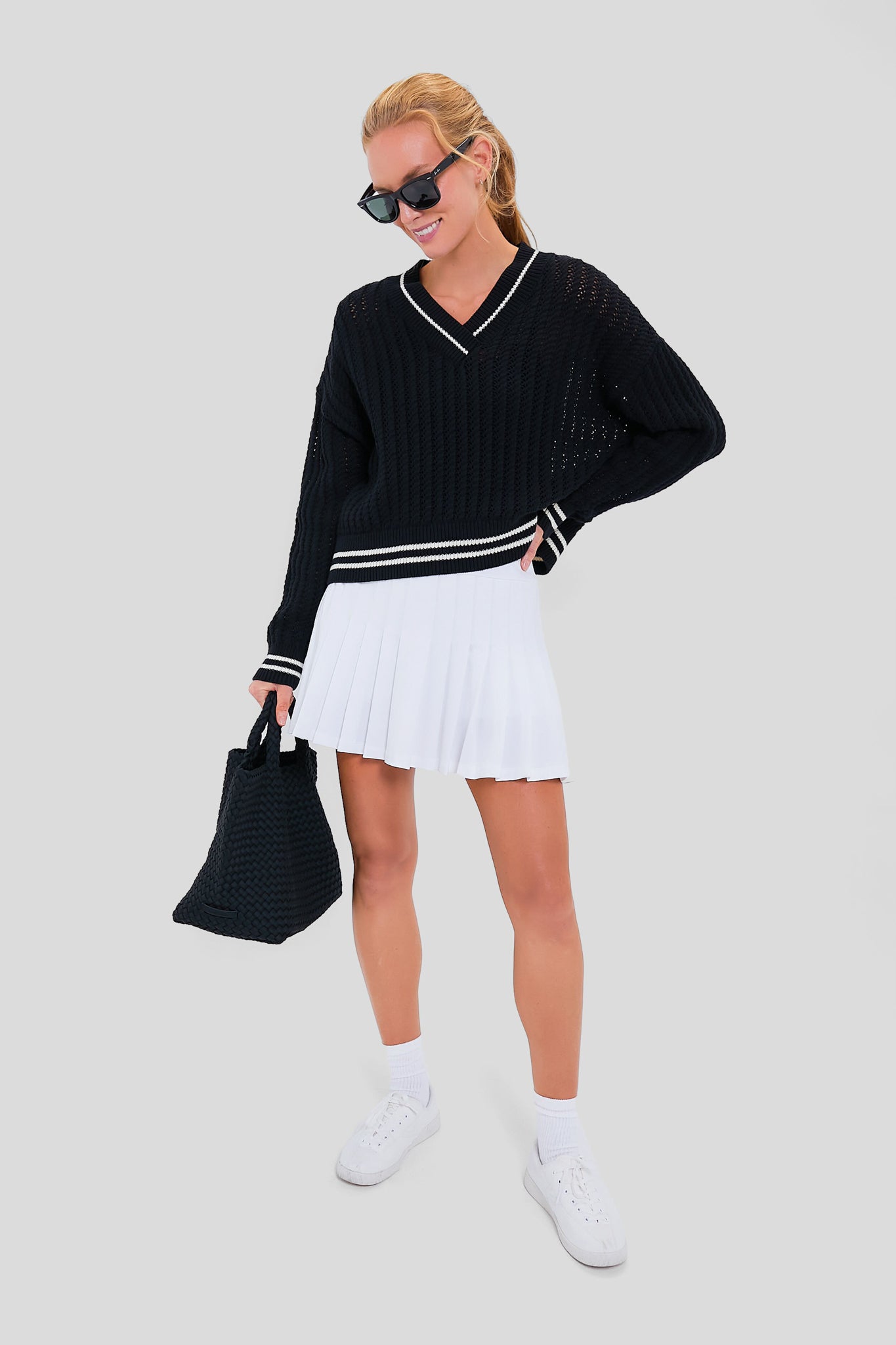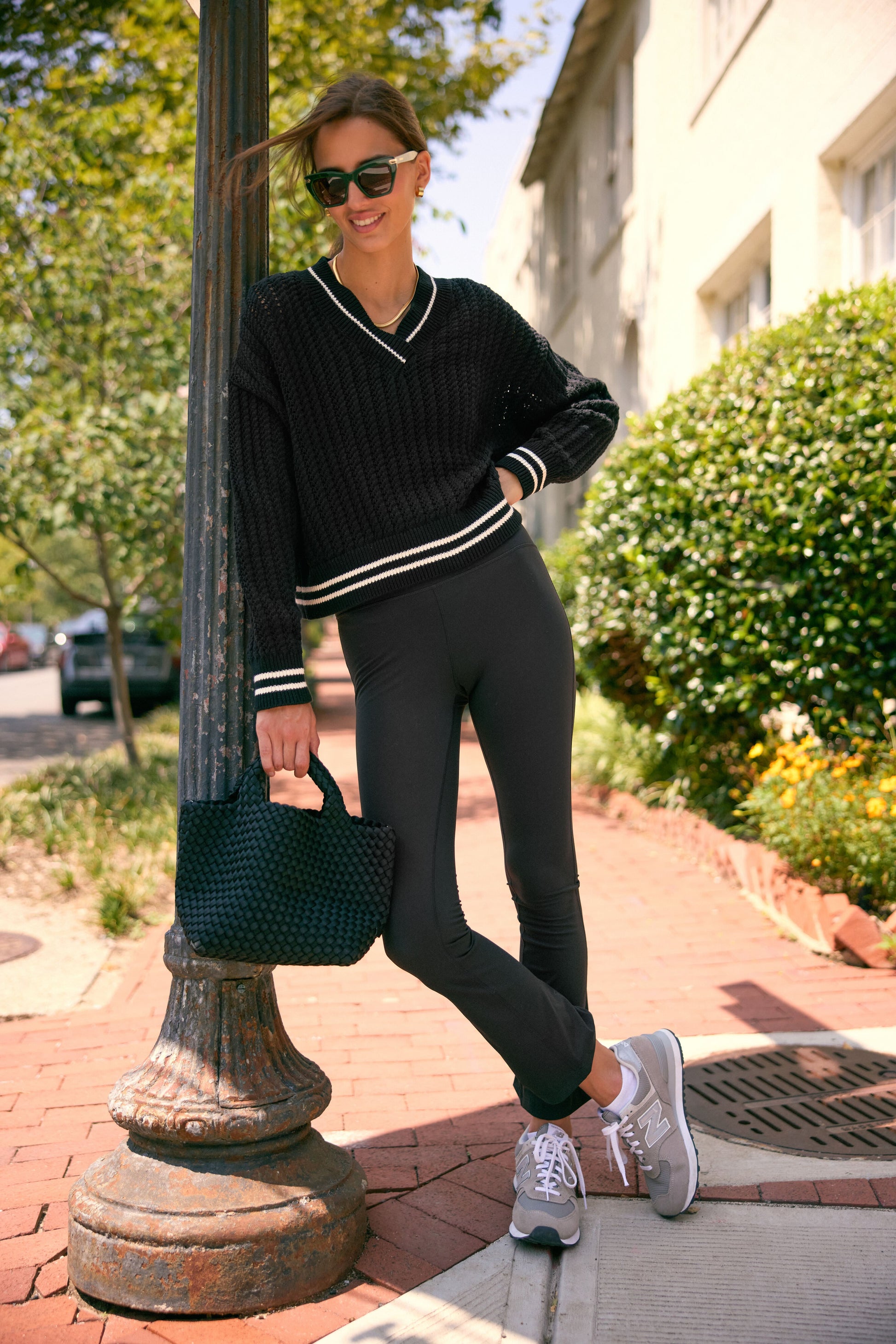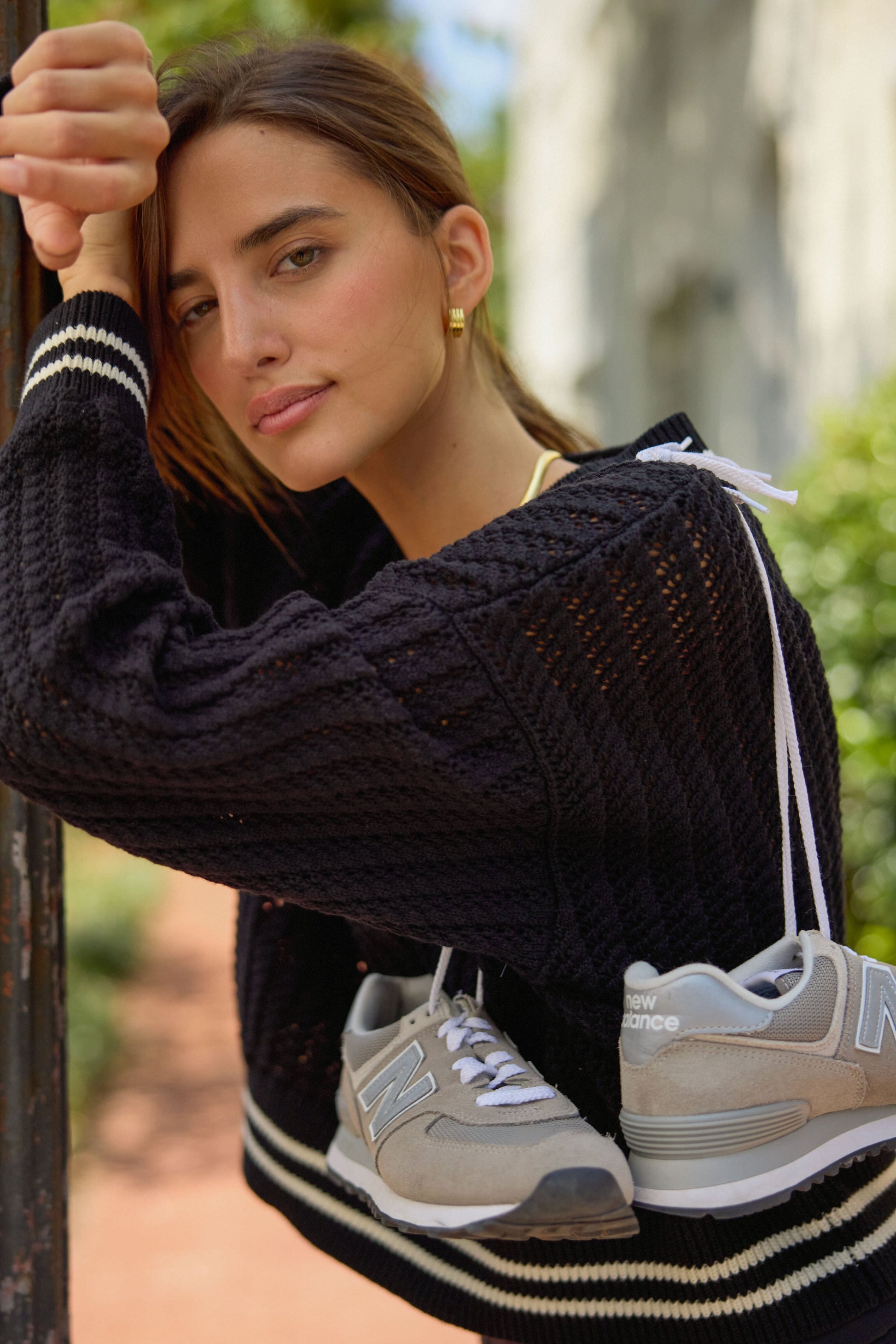We are loving the Irene Sweater for its boxy, cropped silhouette and elevated knit construction. The ultimate style for transition from day to day activities, we are styling this with denim and sneakers for a morning coffee run, with leggings for heading to the yoga studio, and with a tennis skirt for warming up on the courts!