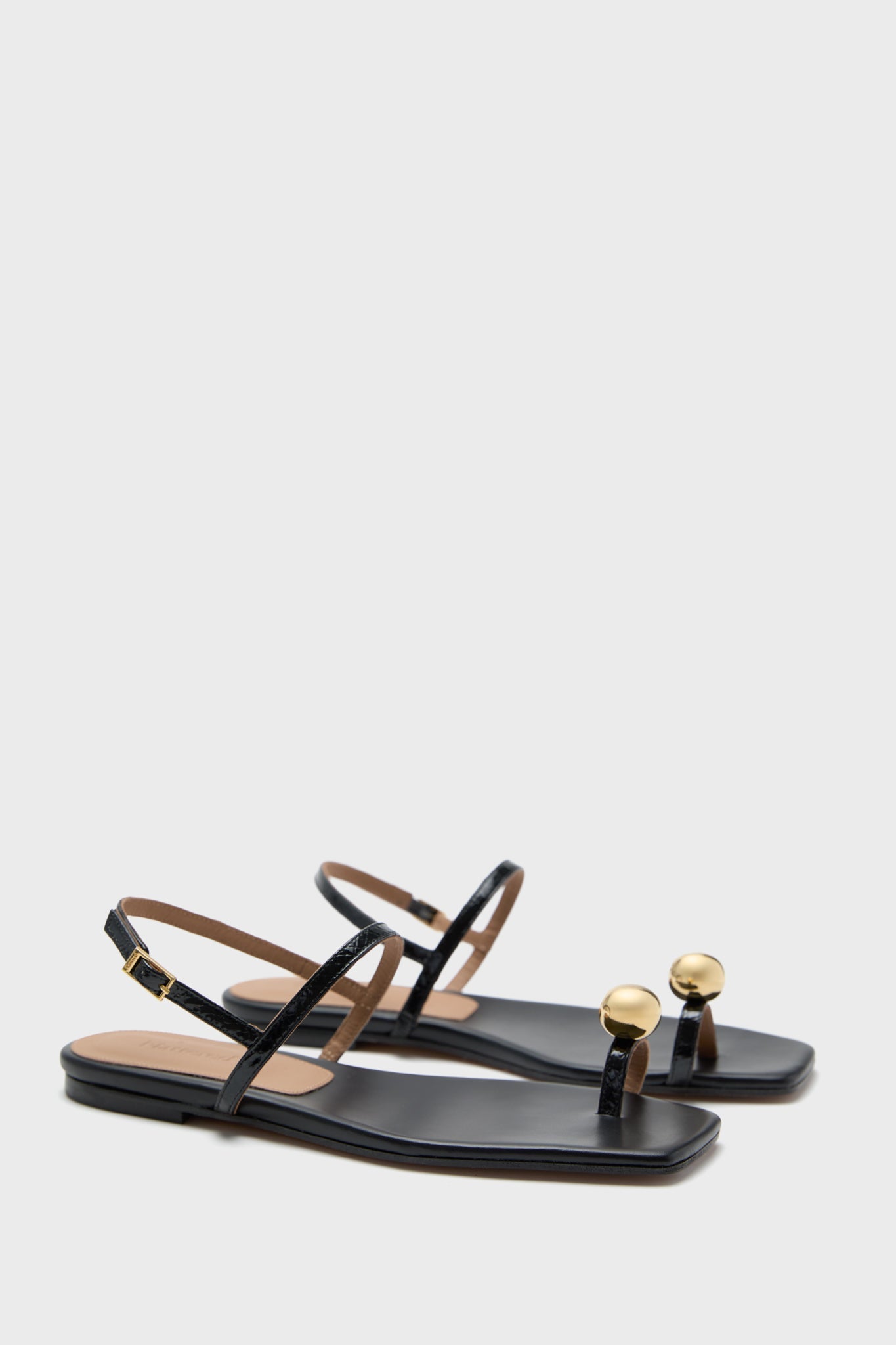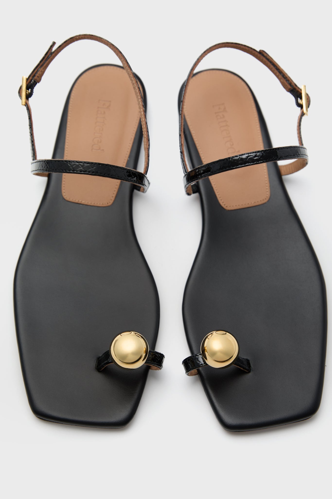 The Black Idris Sandals are a sleek silhouette boasting an adjustable ankle strap and simple toe strap with a gold ball detail. Minimalistic and comfortable, we are wearing these with everything from swimsuits, to caftans, to flirty minis this summer.