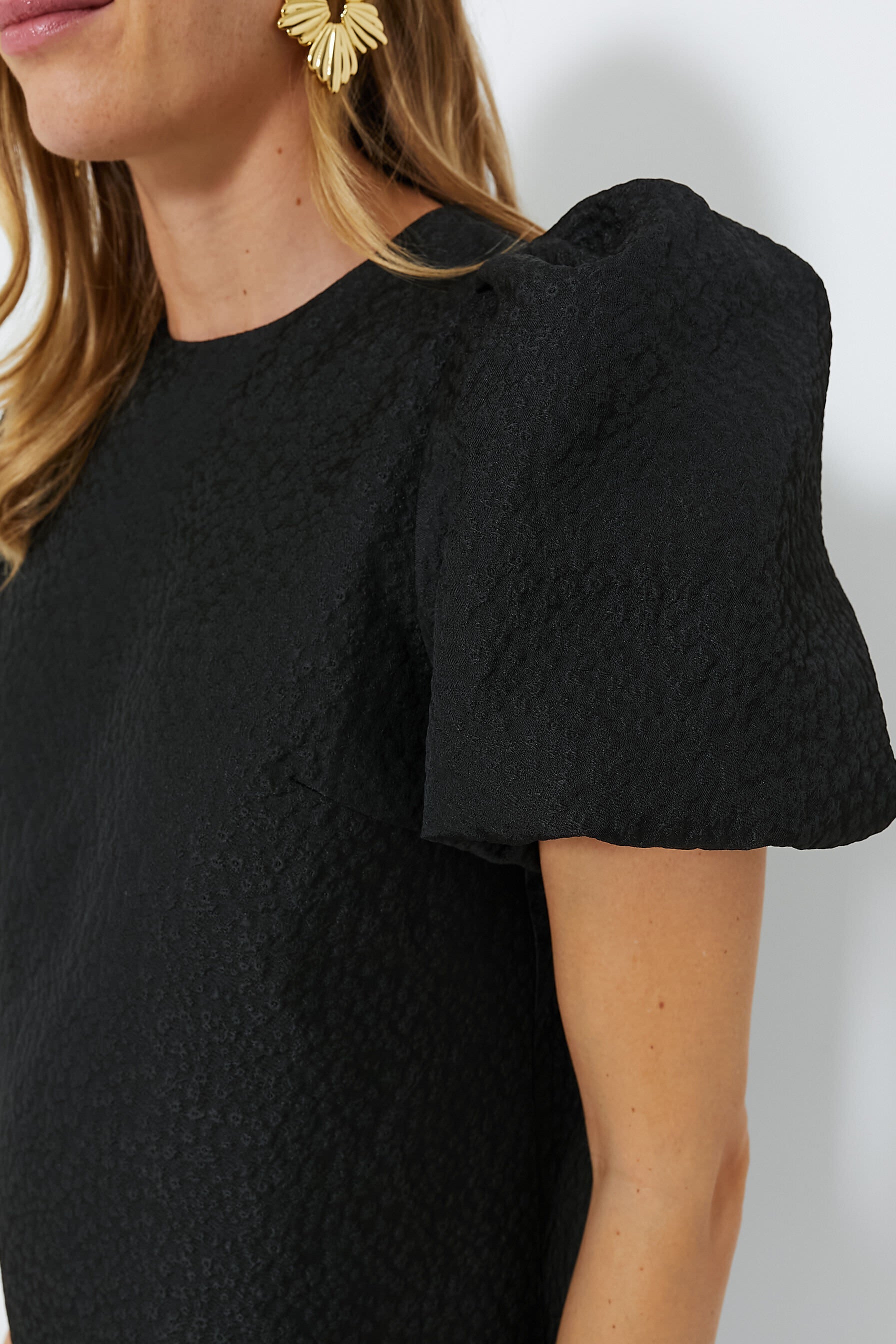 A classic silhouette with scaled-up details, the Black Lyla Blouse is oh so chic. Designed with bubble sleeves for volume and a textured jacquard fabric that adds dimension and makes for a polished finish, this top is a guaranteed wardrobe winner. Classic-with-a-twist, just add denim and heels for an effortlessly glamorous party look!
