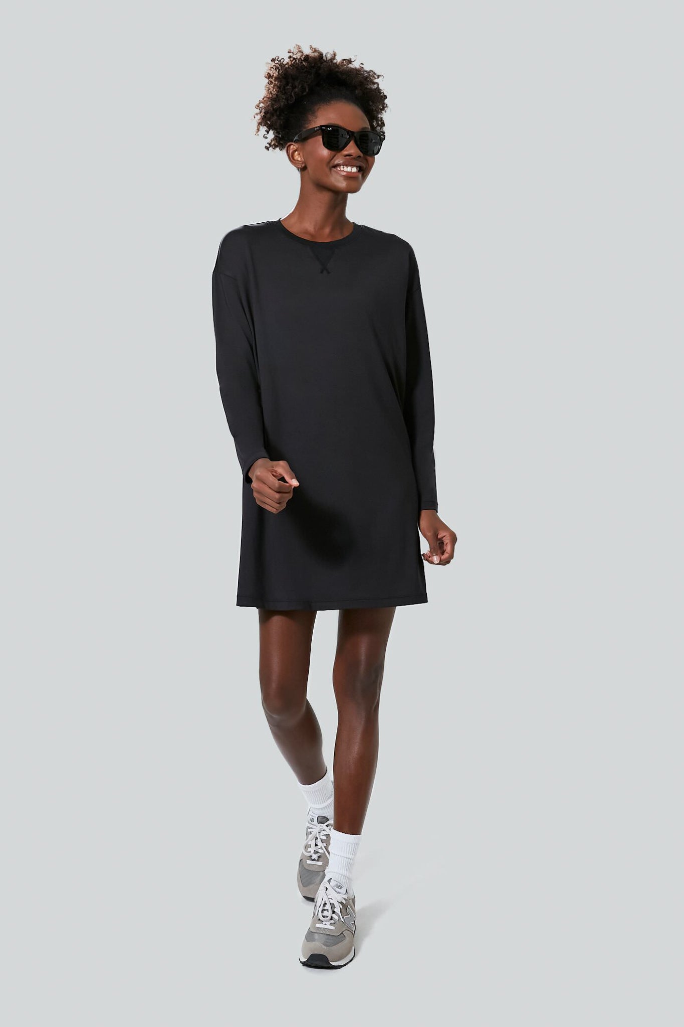 Wear, wash, repeat! The Long sleeve Corinne Sports Dress will be a constant in your wardrobe, with a drop shoulder, relaxed fit, and mini length it’s easy and comfortable to wear for any occasion at any time!