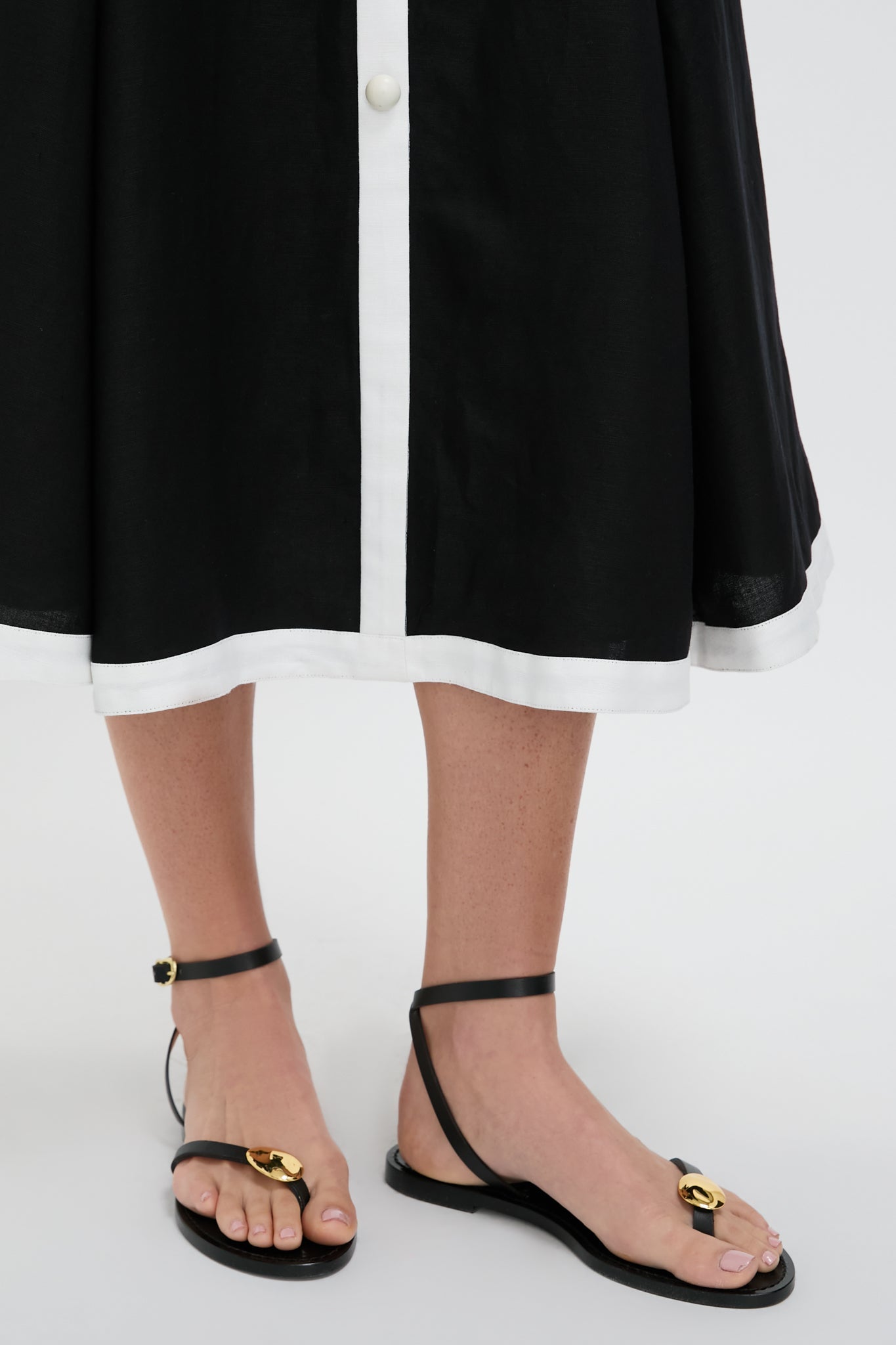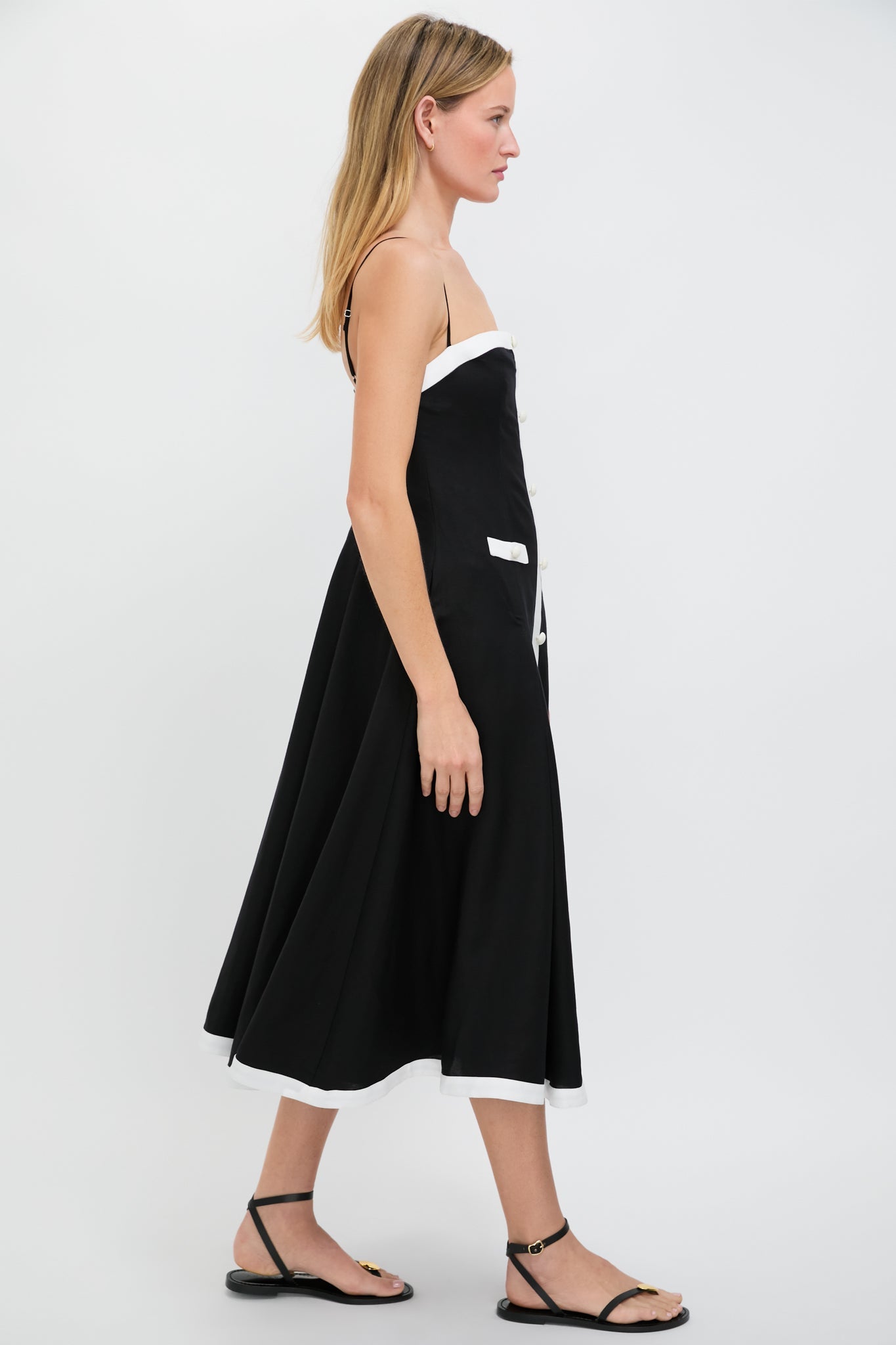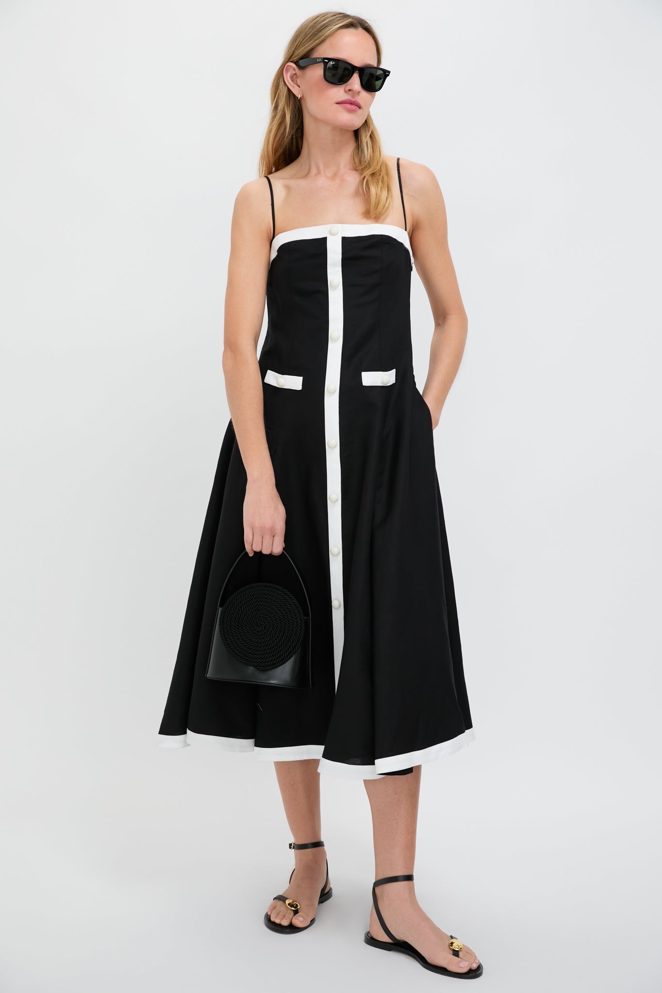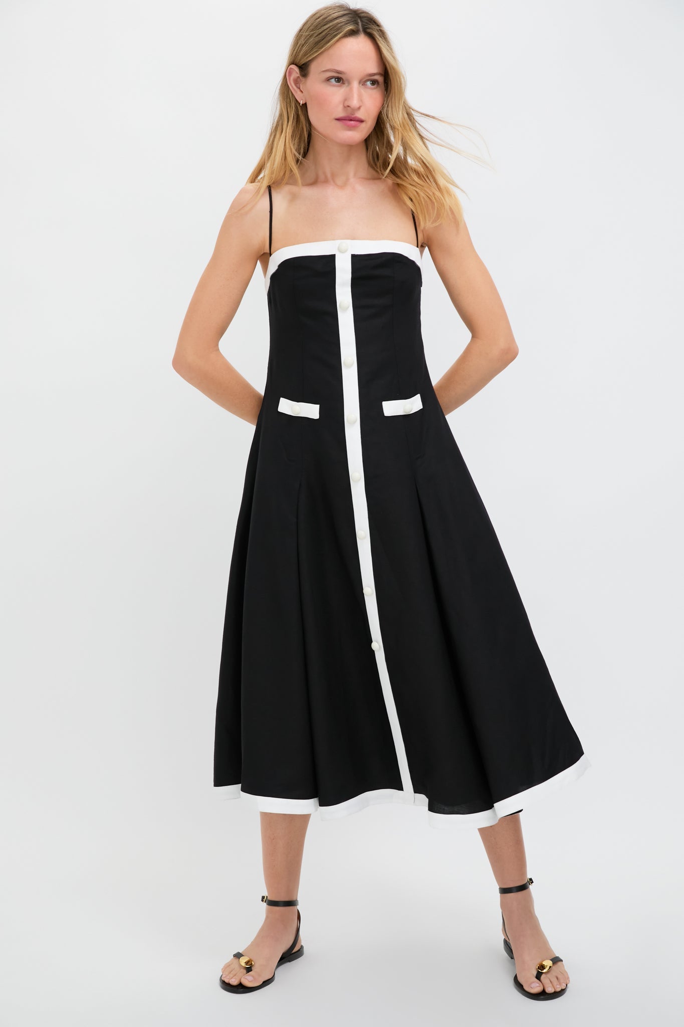Black Multi Cordelia Sleeveless Button Down Midi Dress