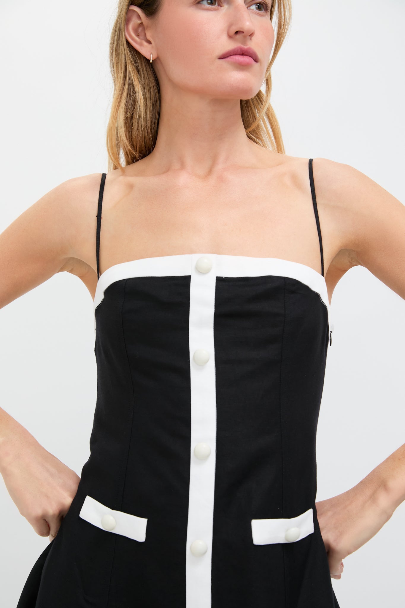 The Black Multi Cordelia Sleeveless Button Down Midi Dress is an elegant ensemble your closet needs. This sleeveless button-down midi reimagines effortless sophistication with a color-blocked linen design. Lightweight yet structured, it serves a standalone statement piece. We styled it with sandals, a mini bag, and sunnies for a stylish warm weather look.