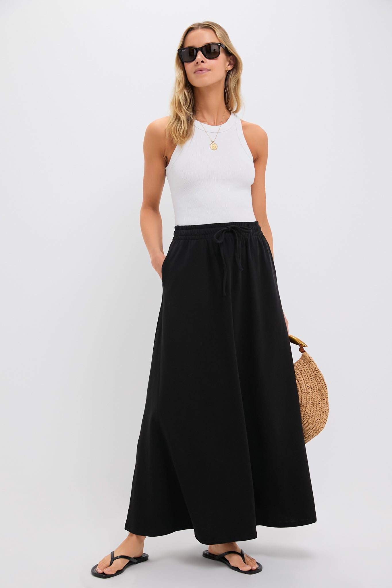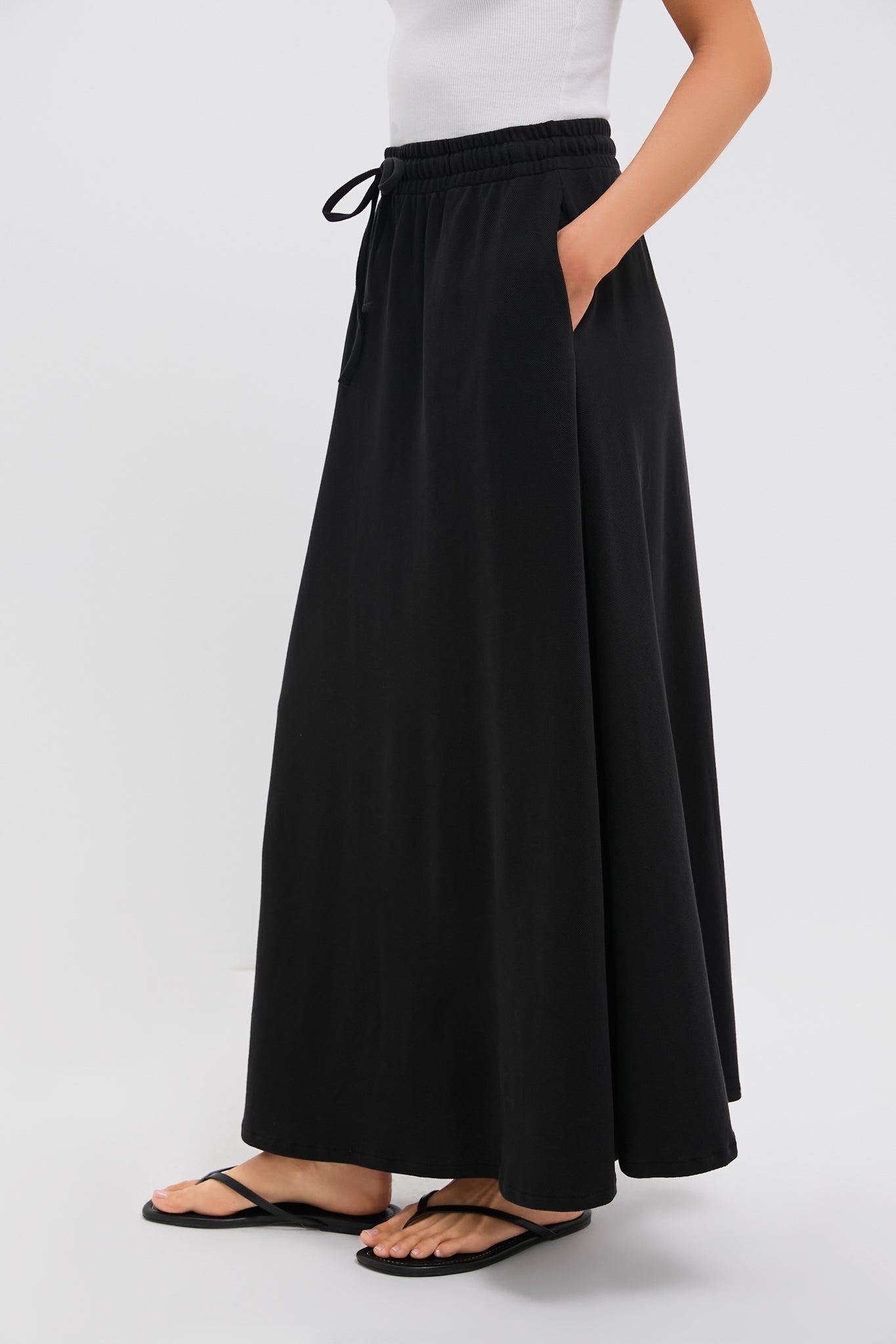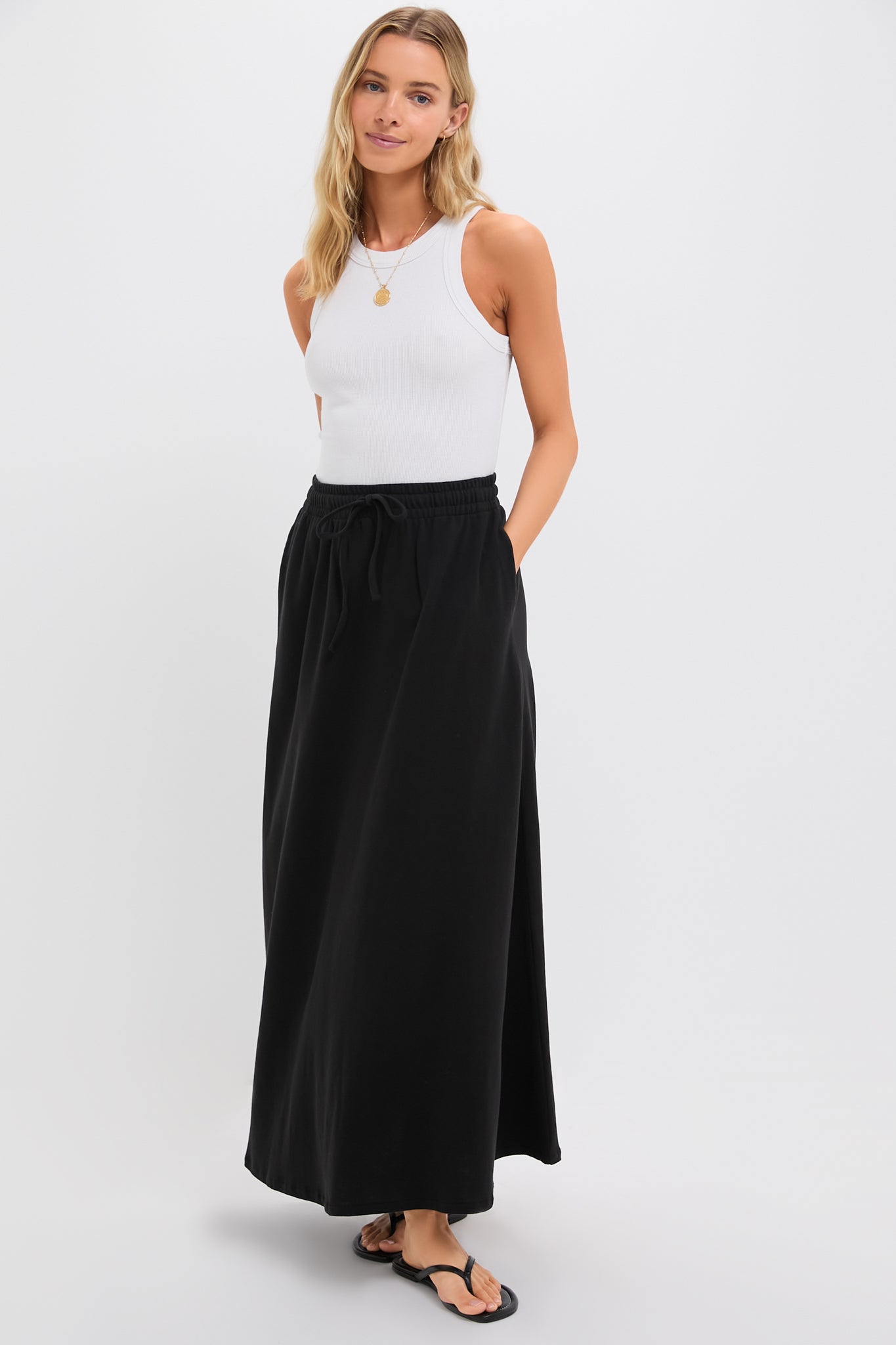 Meet your new favorite: the Black Pique Ballard Maxi Skirt. Soft pique material and a comfy drawcord waist make it a dream to wear, while handy pockets keep things practical. Style it with a cropped tee and slides for laid-back vibes, or dress it up with a silky cami and strappy heels for an easy-breezy night out.