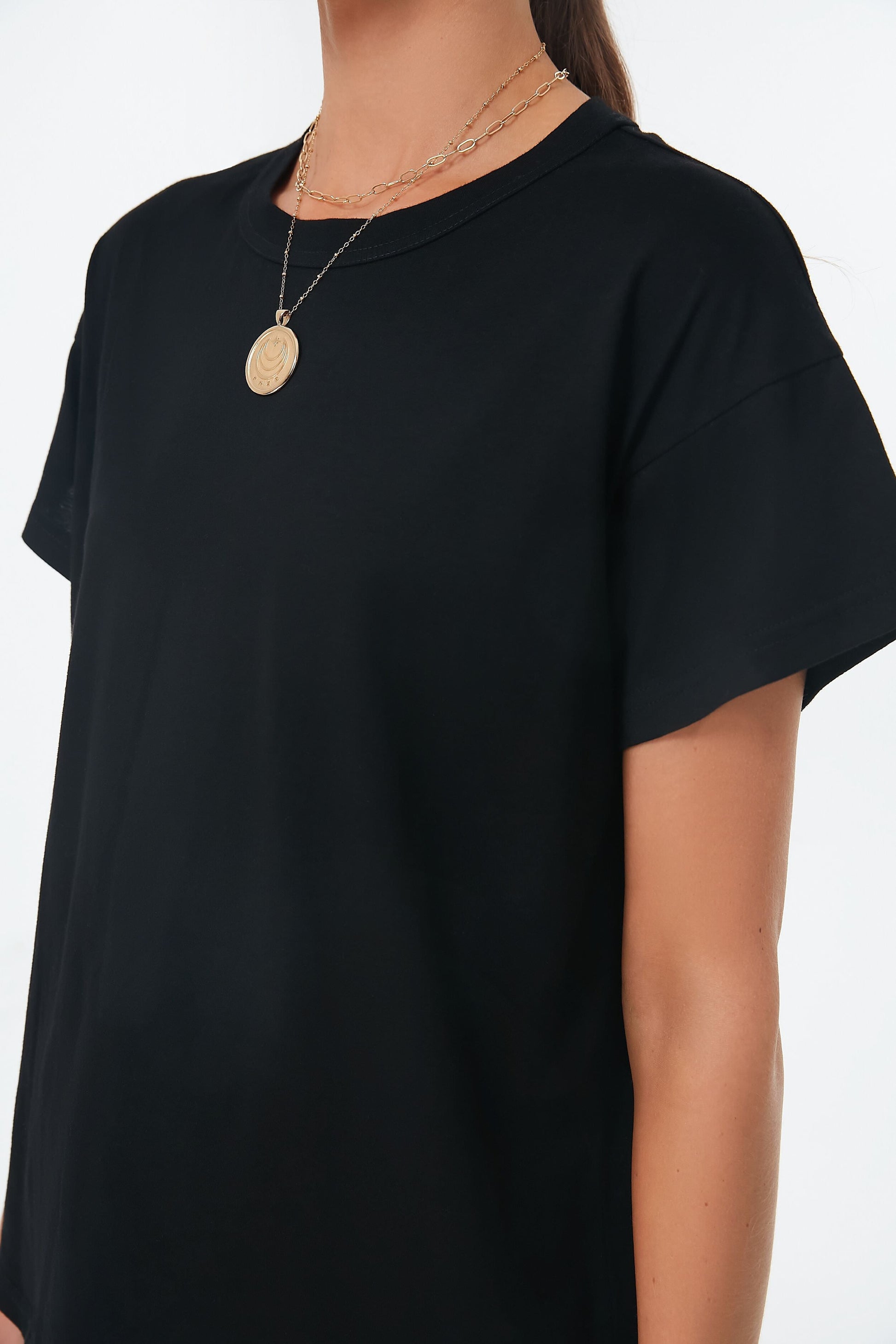 In search of a traditional tee that stands the test of time? Look no further than the Presley. Featuring a crewneck, short wide sleeves, and a relaxed fit that can be tucked in or out to achieve any look, this top is for those days when you just don't know what to wear. Throw on a pair of denim, a mini skirt, leather trousers– you name it– the possibilities are endless for this classic wear everywhere number.