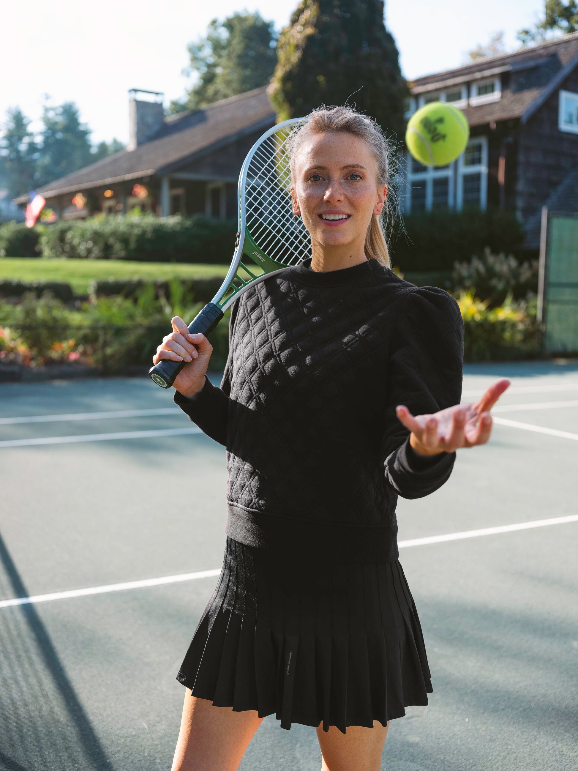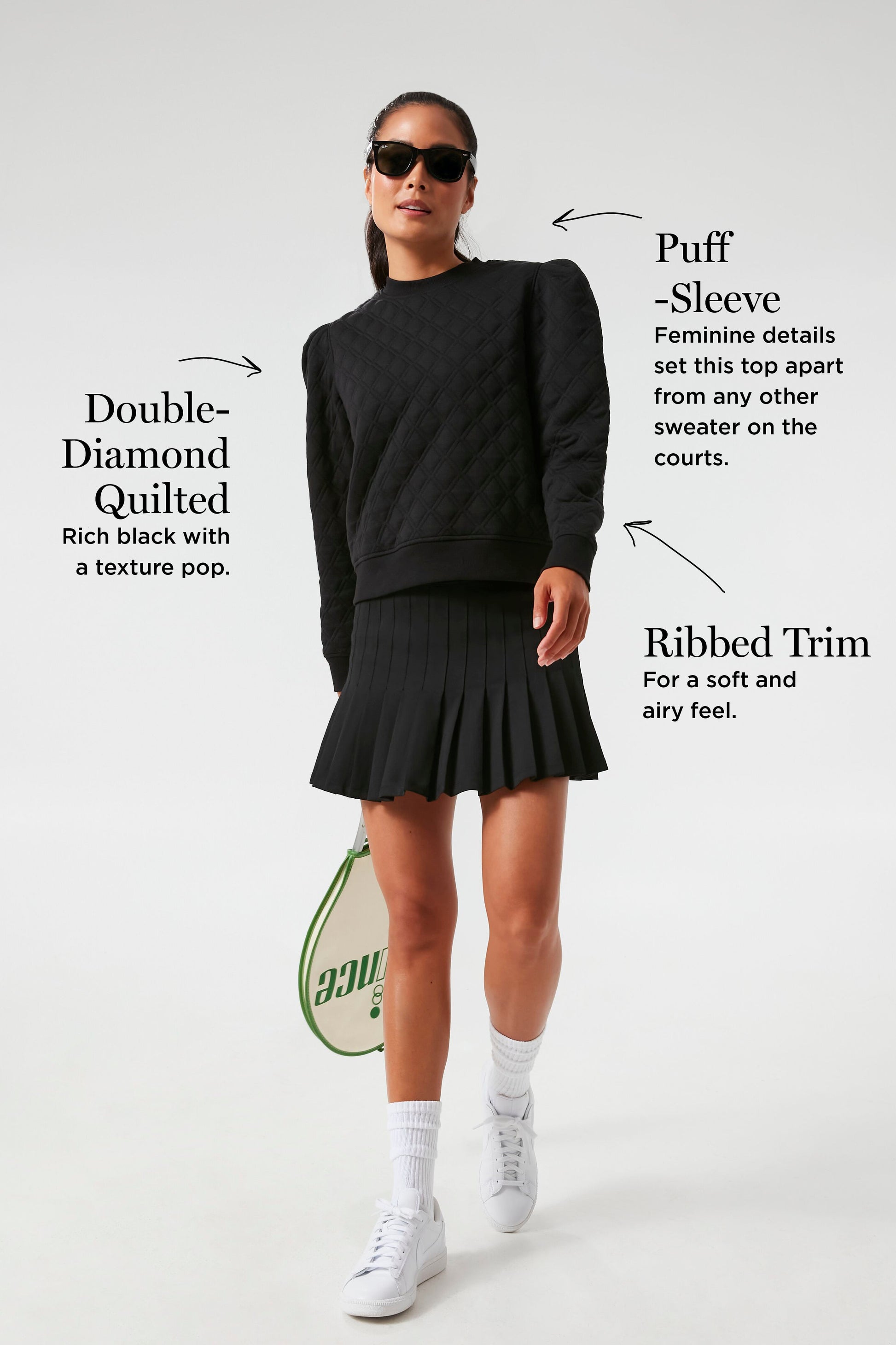 Fashion and function meet in the Puff Sleeve Campbell Pullover. This sweatshirts features feminine sleeves, a diamond quilted construction, and rib trim. Made in a soft-to-the-touch fabric that has quick-dry properties and SPF protection, you will want to wear this from your morning coffee to a chilly warm-up on the courts.