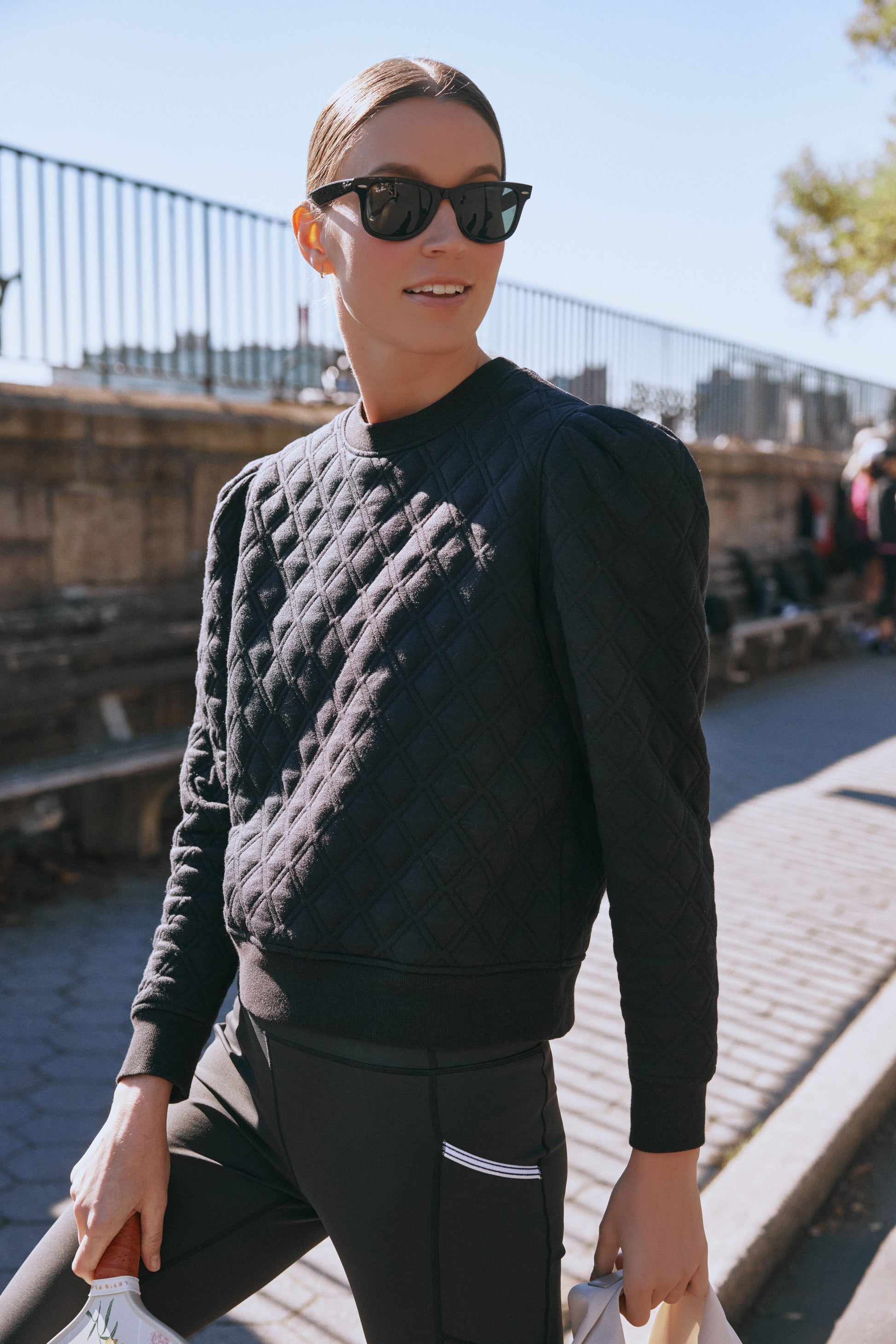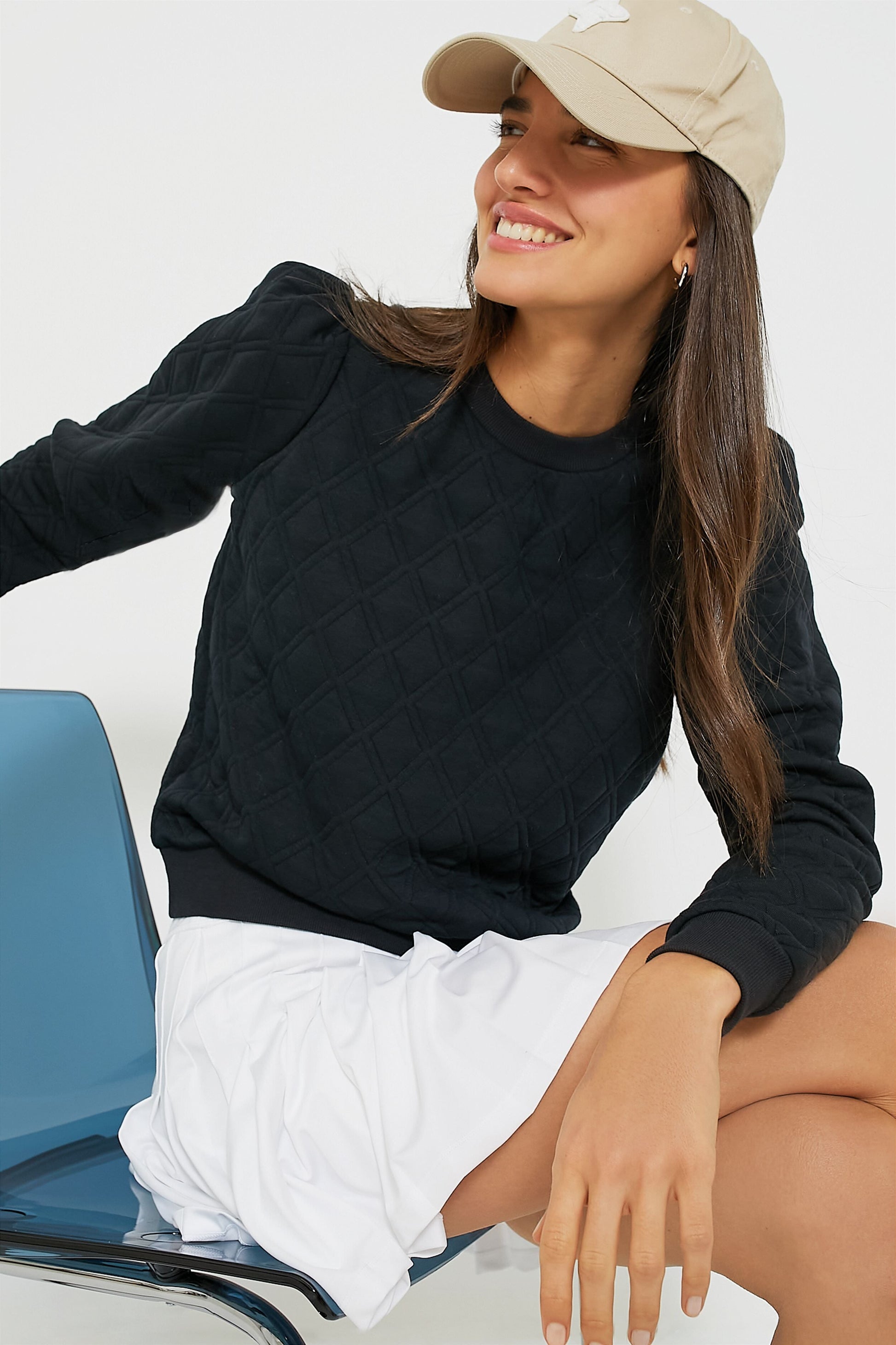 Fashion and function meet in the Puff Sleeve Campbell Pullover. This sweatshirts features feminine sleeves, a diamond quilted construction, and rib trim. Made in a soft-to-the-touch fabric that has quick-dry properties and SPF protection, you will want to wear this from your morning coffee to a chilly warm-up on the courts.