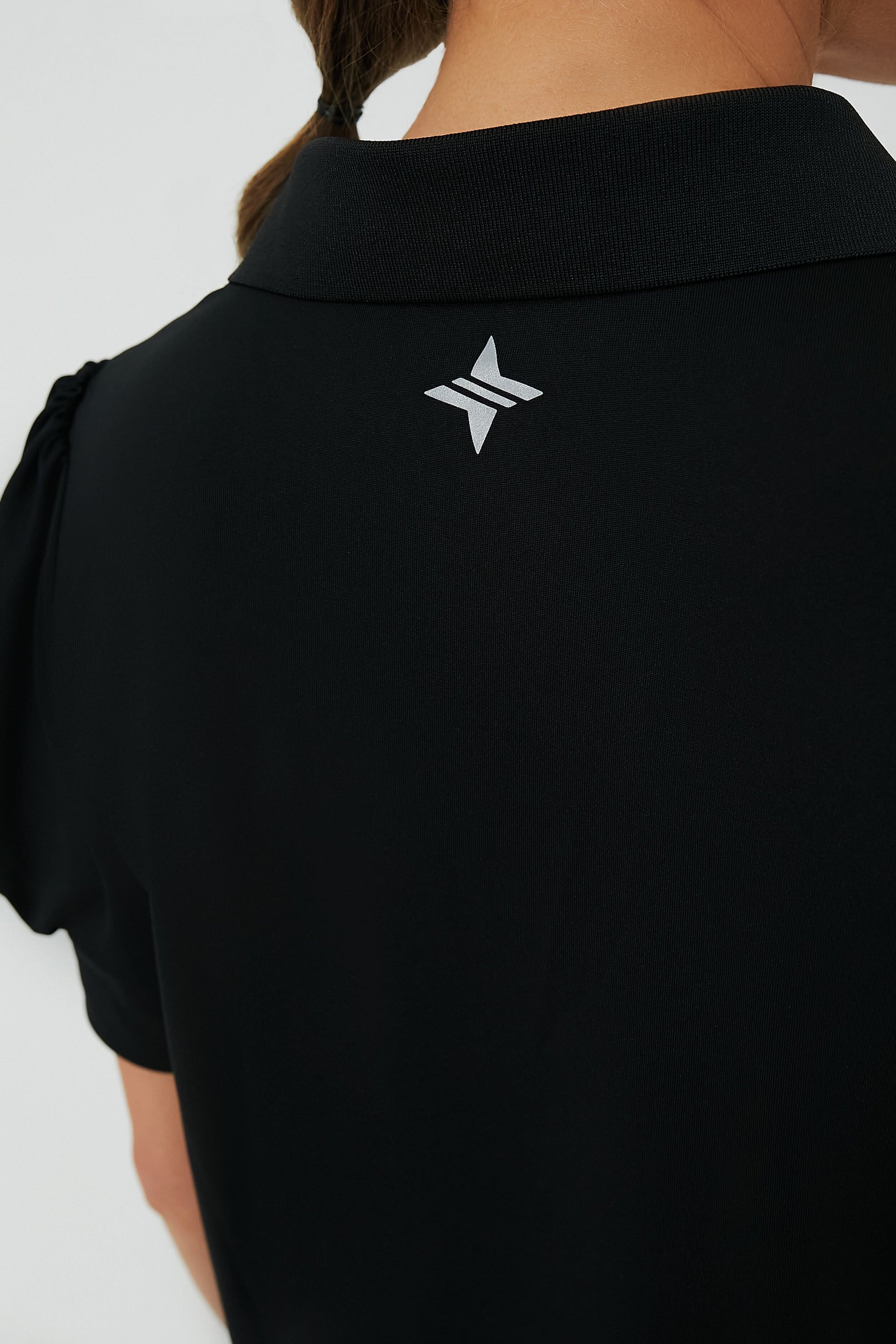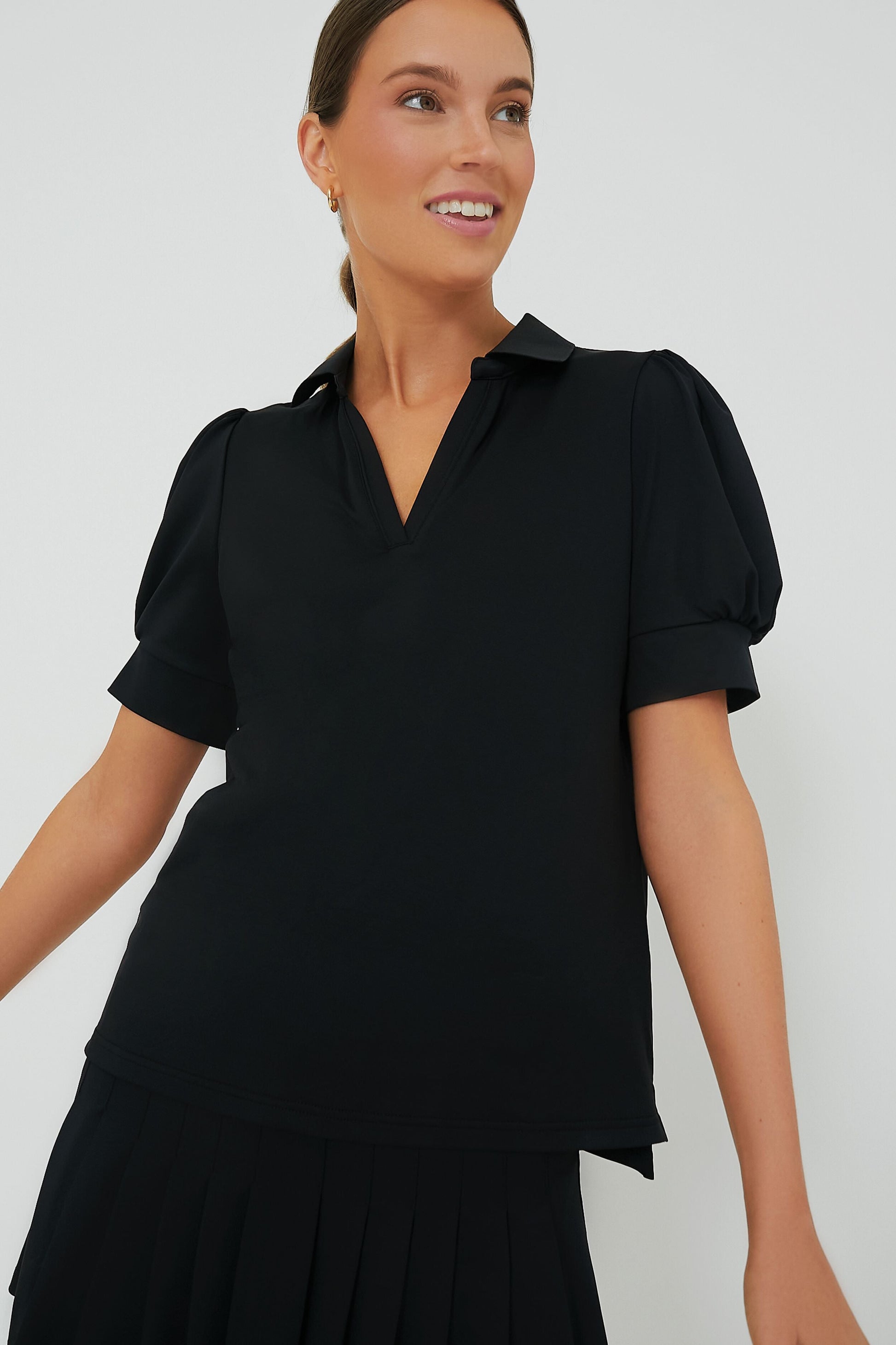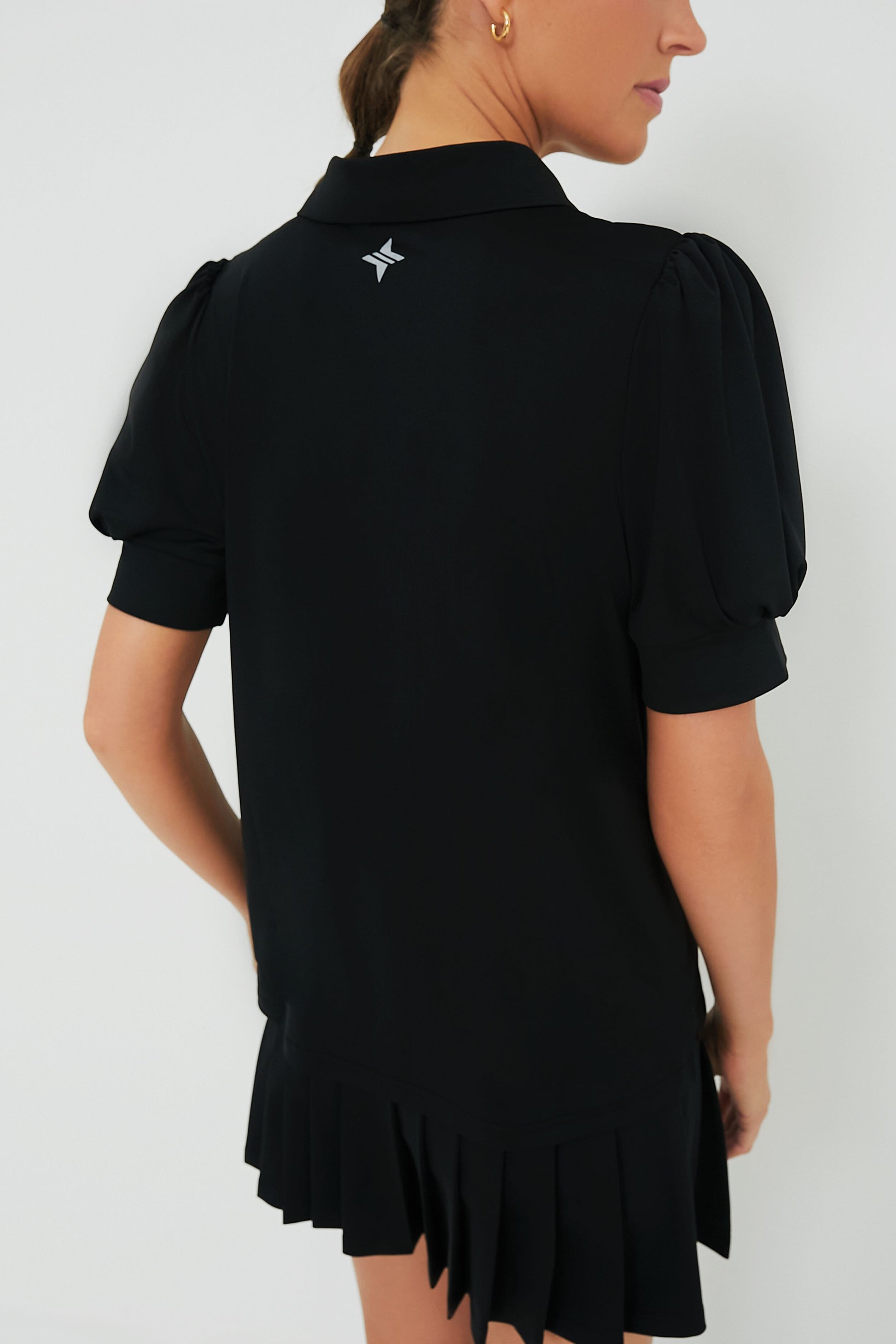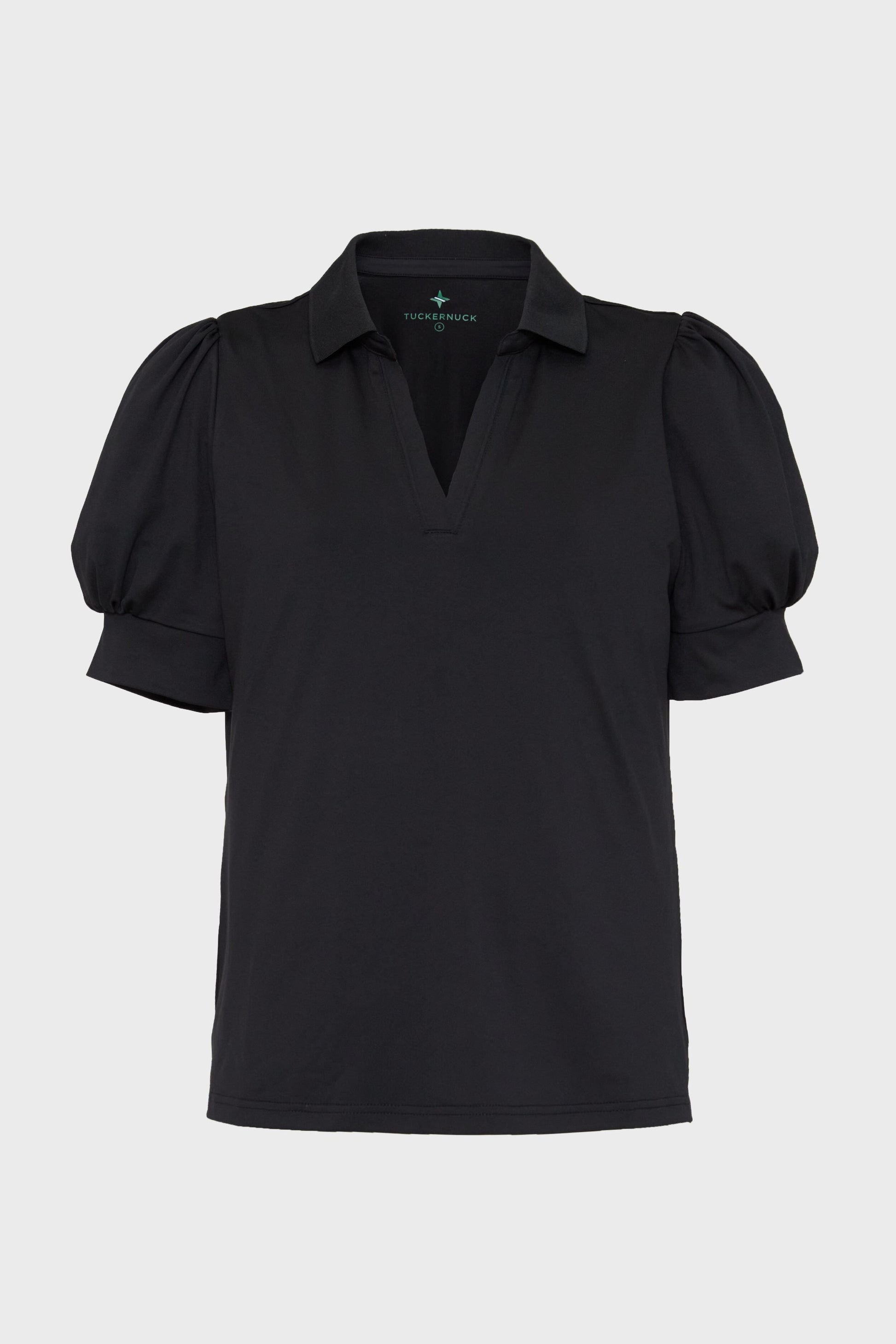 Prep for the U.S. Open (or a coffee run) in the Puff Sleeve Caroline Polo. With an open collar, puff sleeves, and a high low hemline it has feminine details that make this polo unlike any other.