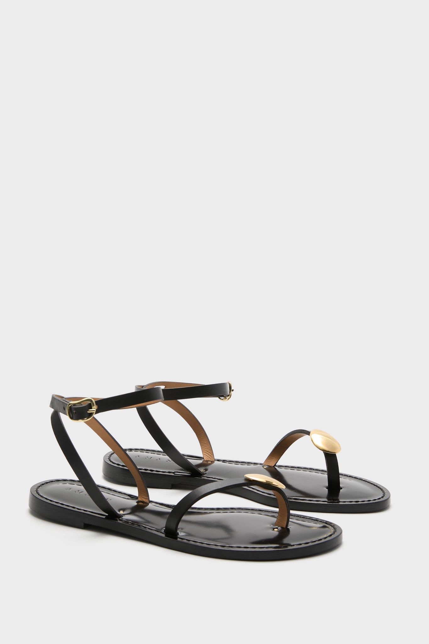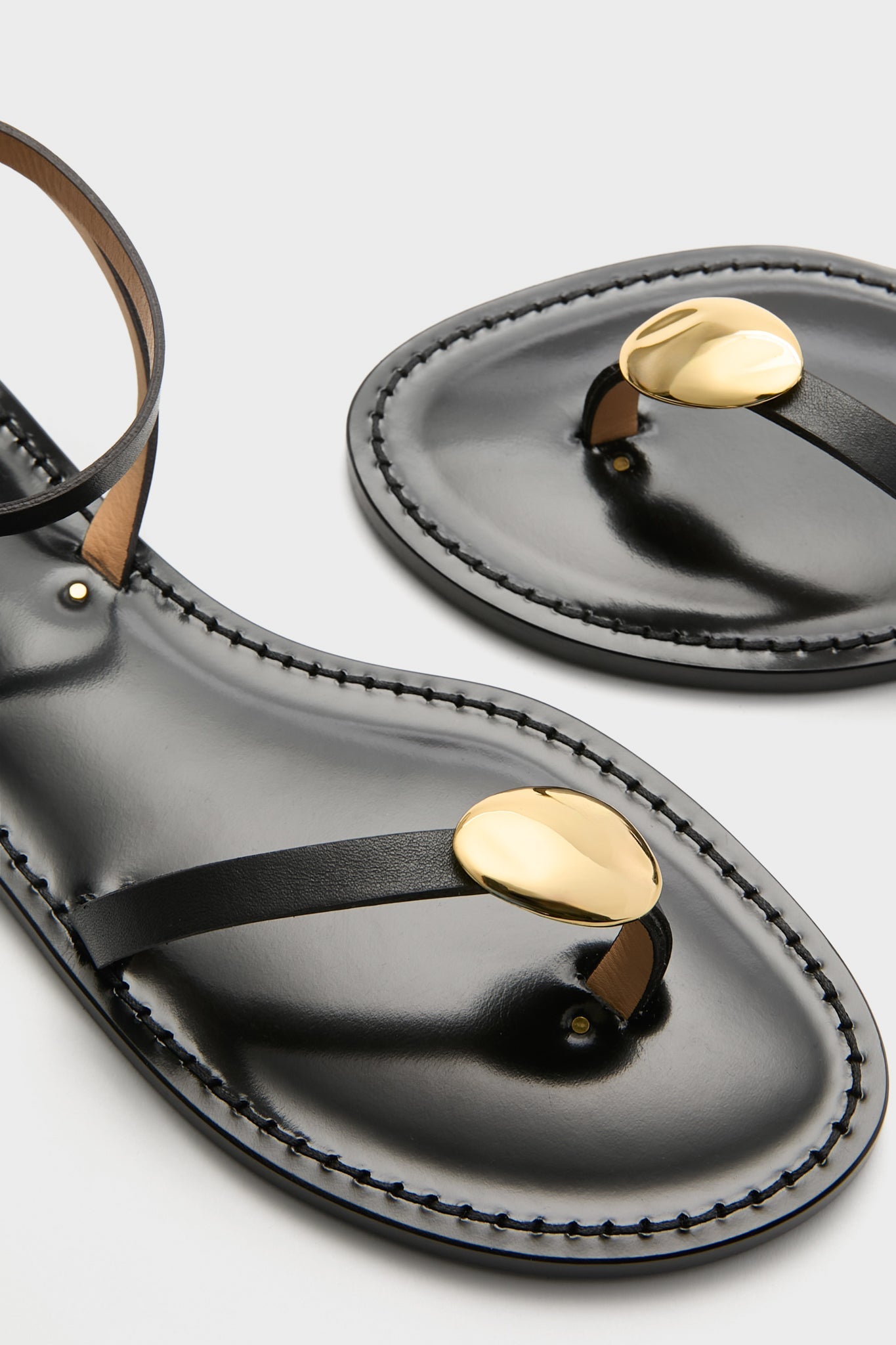 - Upper toe strap with gold pebble detail