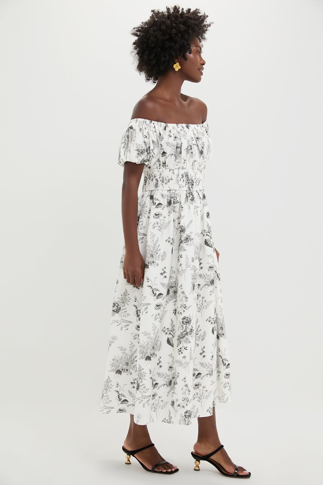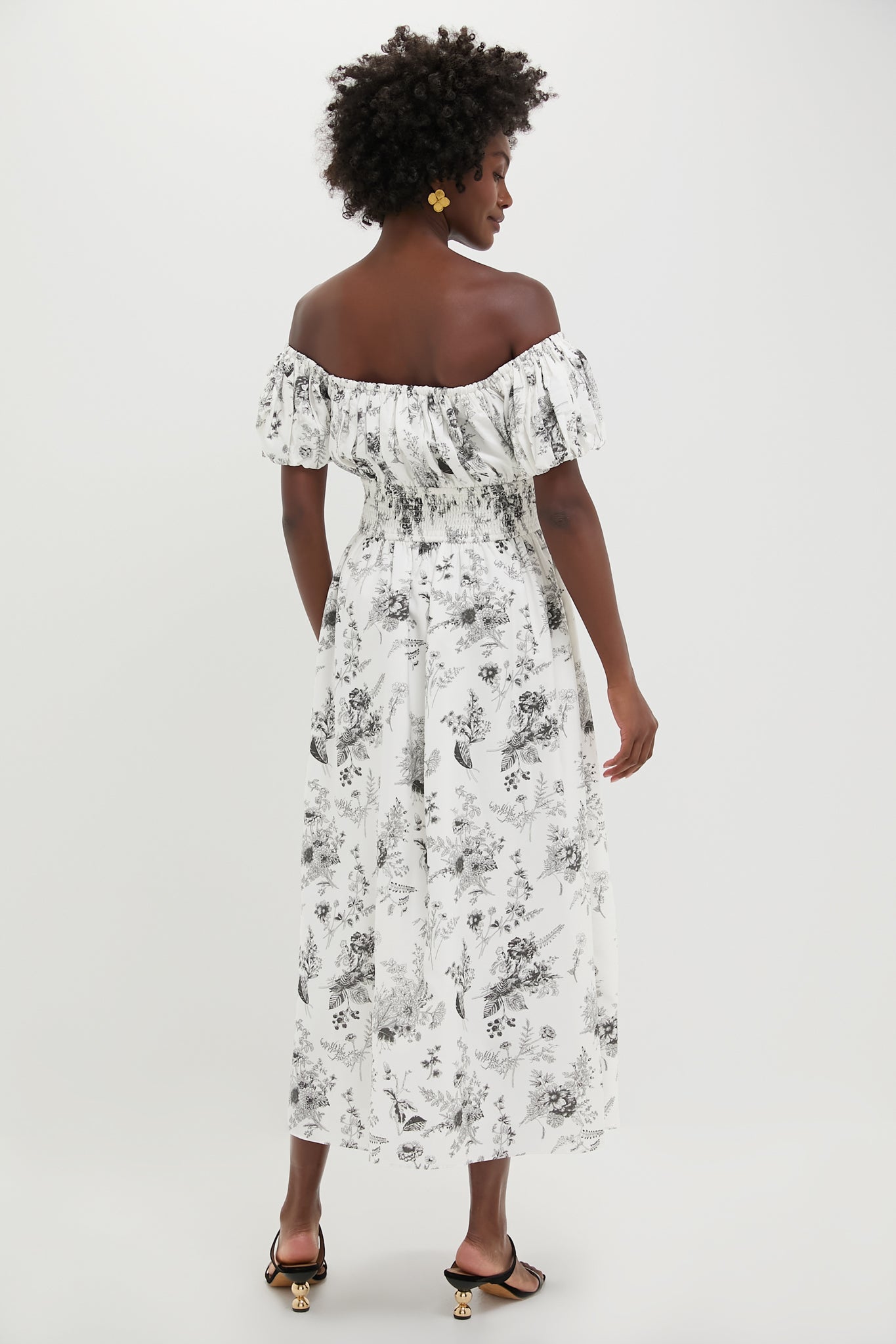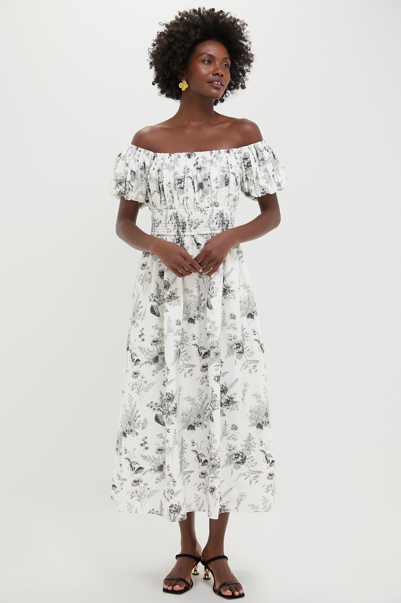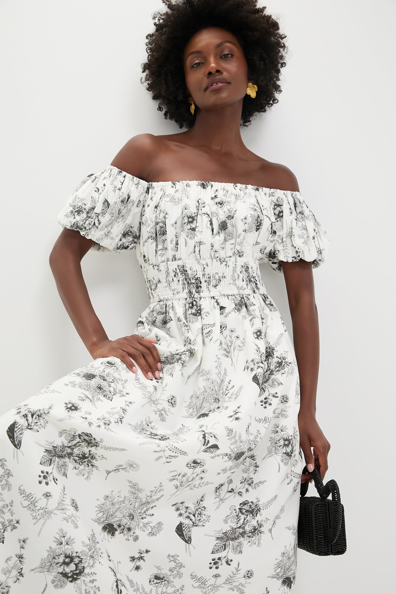 The Black & White Floral Smocked Helena Maxi Dress is a timeless midi. With a short sleeve puff sleeve that can be worn on or off the shoulder and smocked waistband, this dress is both flattering and comfortable. We styled it with heels, a handbag, and gold jewelry for a chic, elevated look!