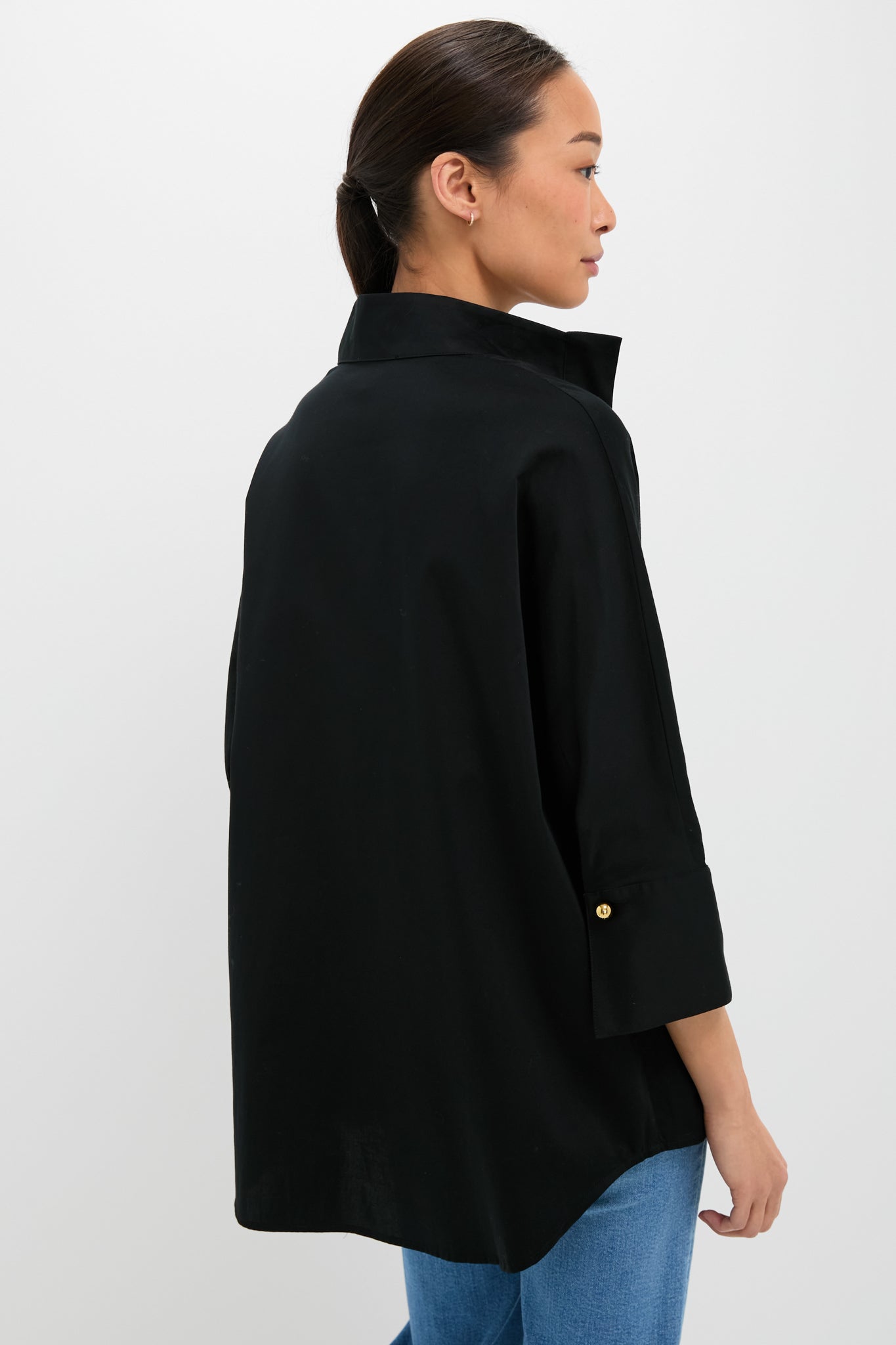 Crafted in a flattering silhouette from a crisp cotton poplin, the Black Willow Blouse is a must-have. Featuring a gold button front half-placket, stand collar, and high-low hem, this pullover pairs easily with everything from denim to leather all year long.