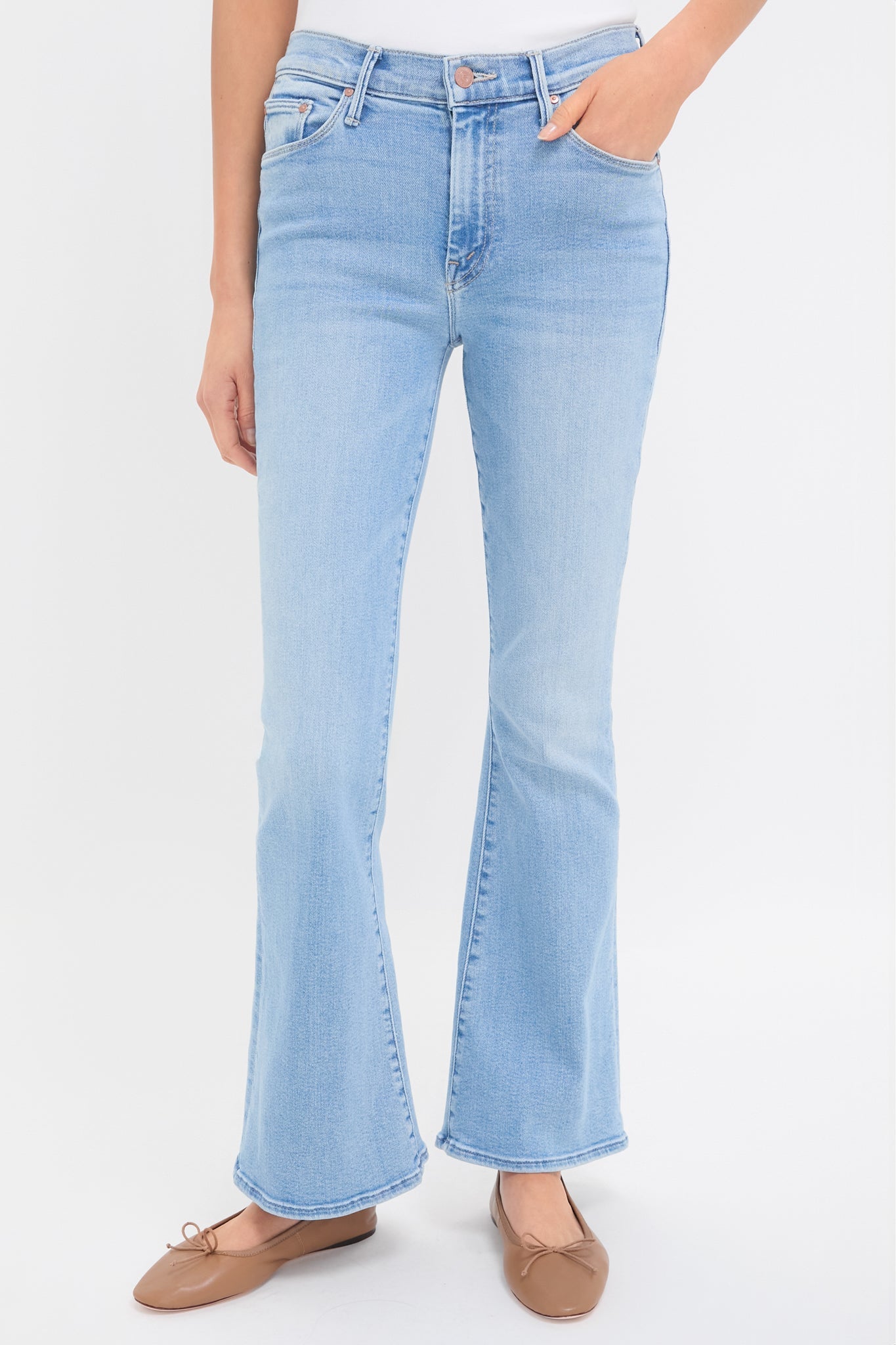 The Blessing In Disguise The Weekender jean features a flare silhouette, mid rise, and a clean hem. Cut from stretch denim, this mid blue jean has subtle whiskering and fading at the knees. Pair with a tee, sweater, and tote for easy everyday wear, or a button down and flats or heels for more sophisticated styling!