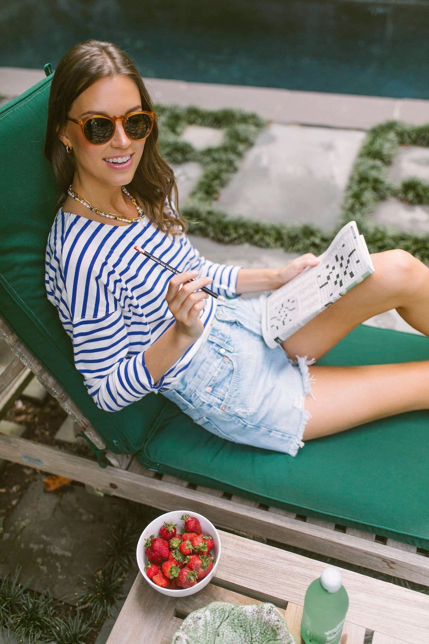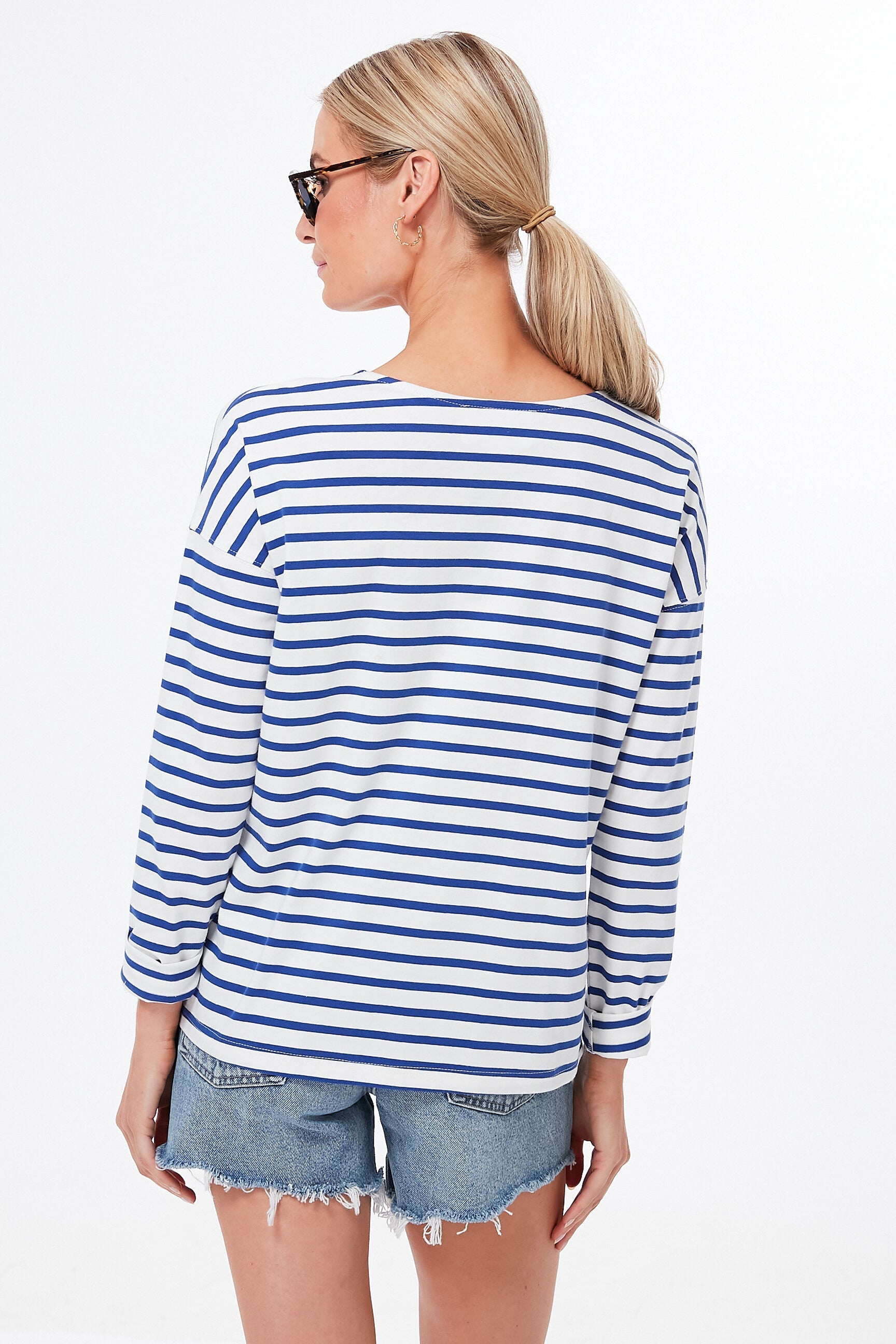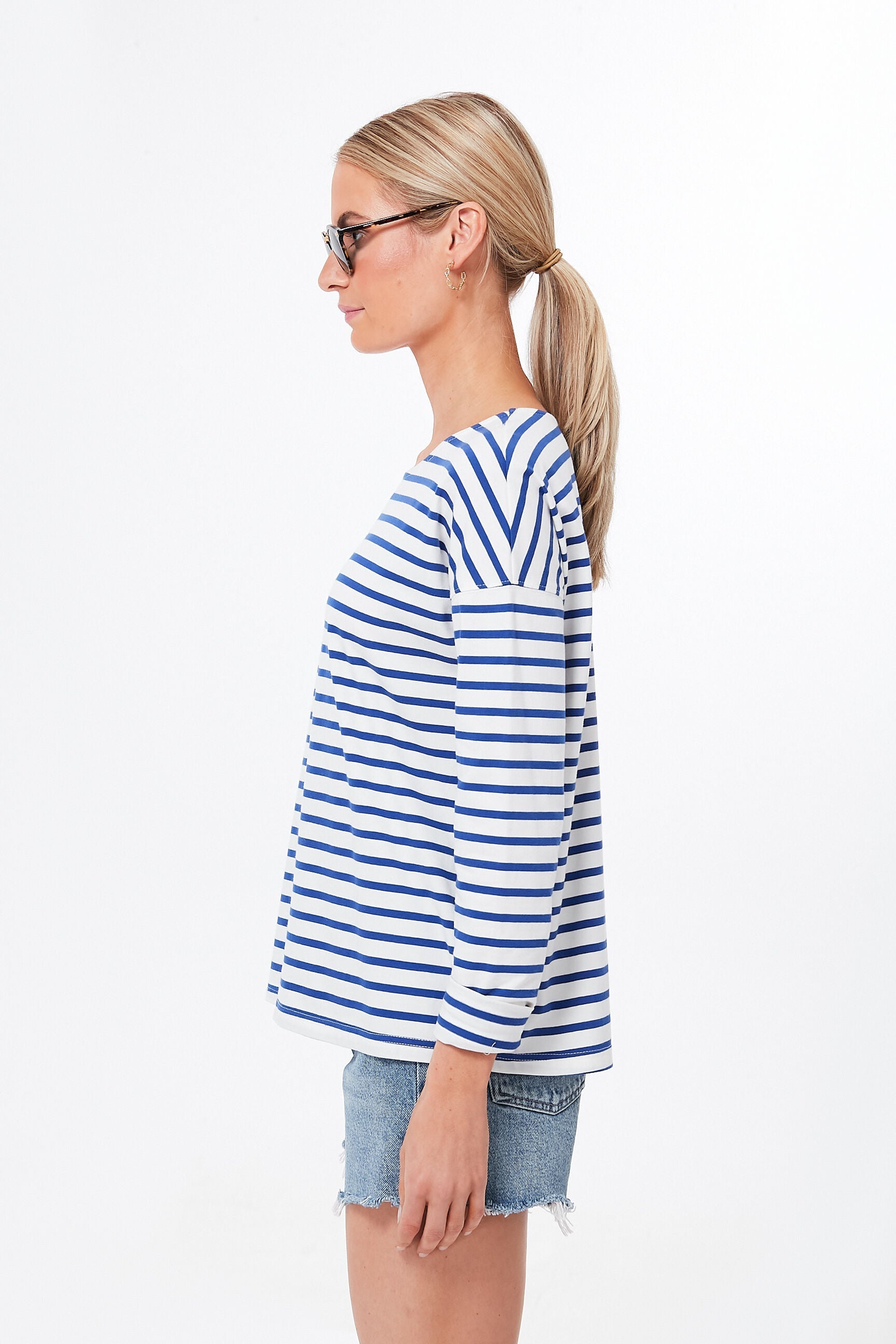 The Hayden Tee is a wardrobe essential known for its boyfriend fit and easy cotton fabric. Featuring a crew neckline and drop shoulder, this striped top is comfortable and classic. Pair with denim and a woven bag for Parisian-chic style!