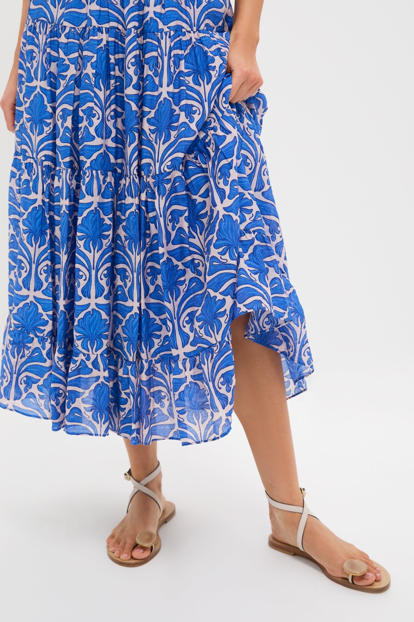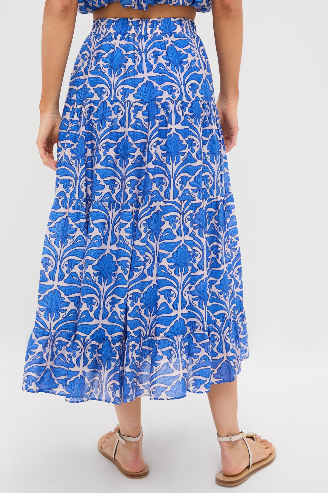 Blue Geometric Floral Porto Midi Skirt
