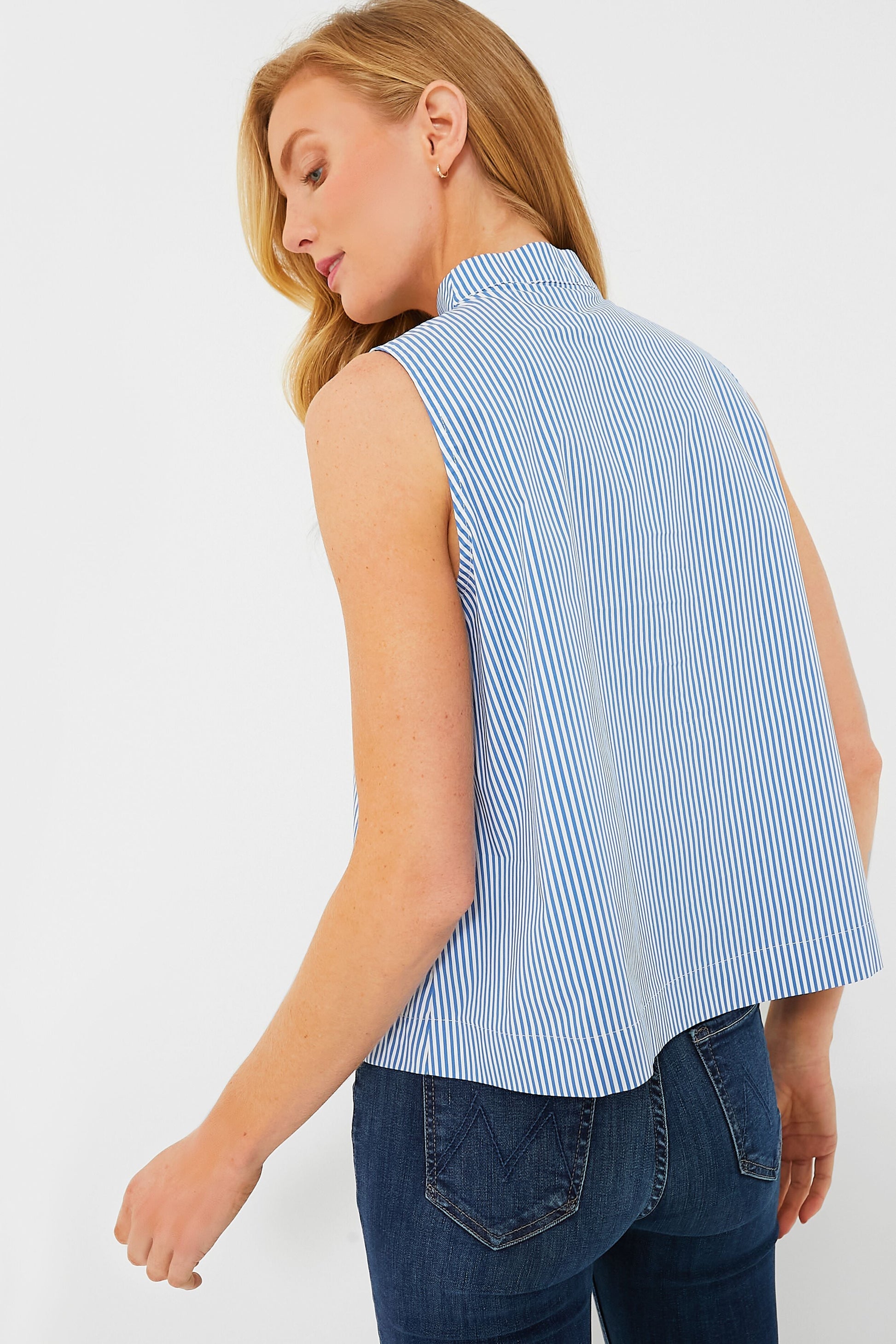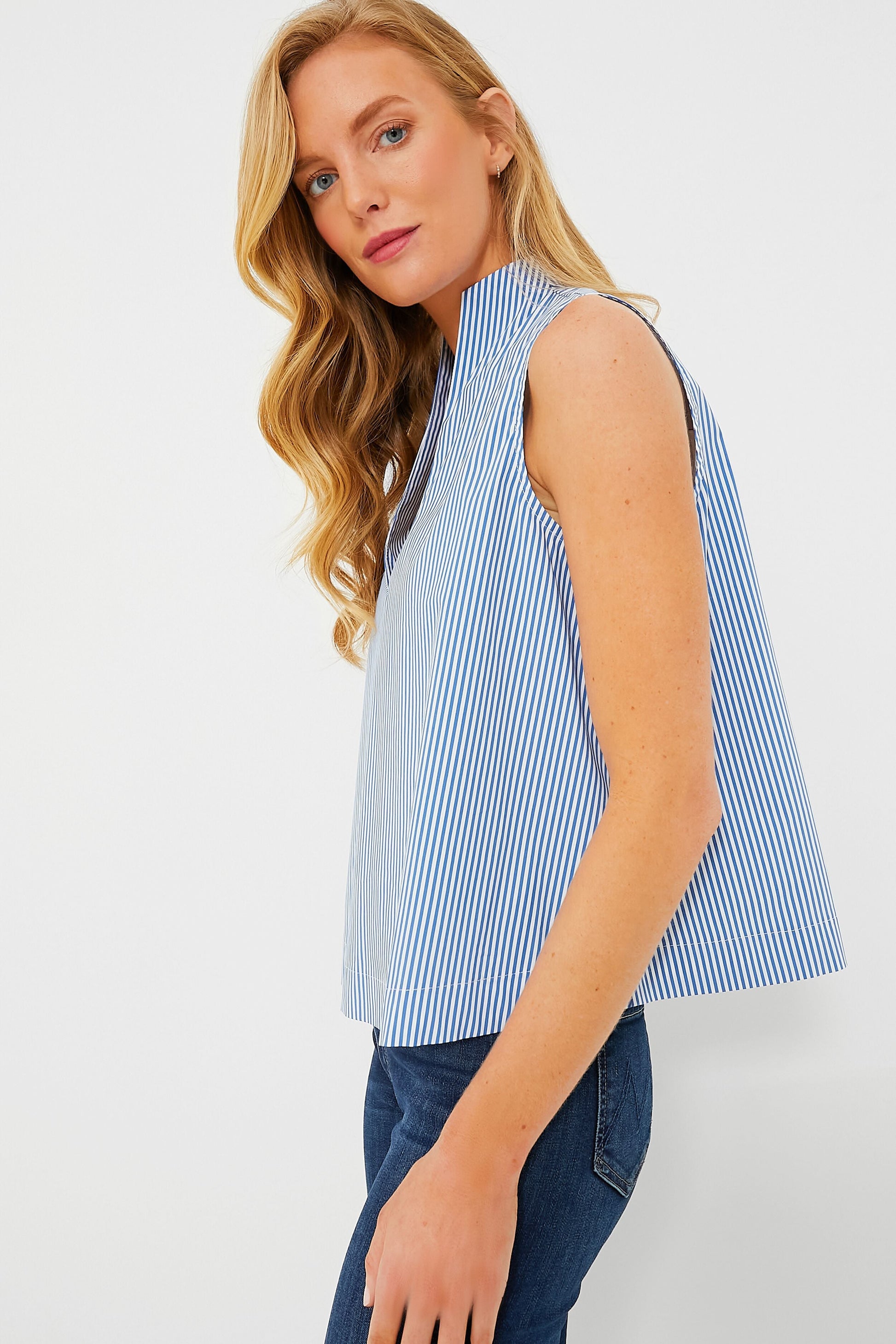 The Blue Stripe Sleeveless Celeste Top is a season-less piece to add to your wardrobe. Featuring a sleeveless silhouette with a flattering v-neck and swingy hem, this chic number is equally appropriate for work and play. We love to pair it with a sweater thrown over the shoulders, jeans, and sneakers for an effortless cool-girl look.