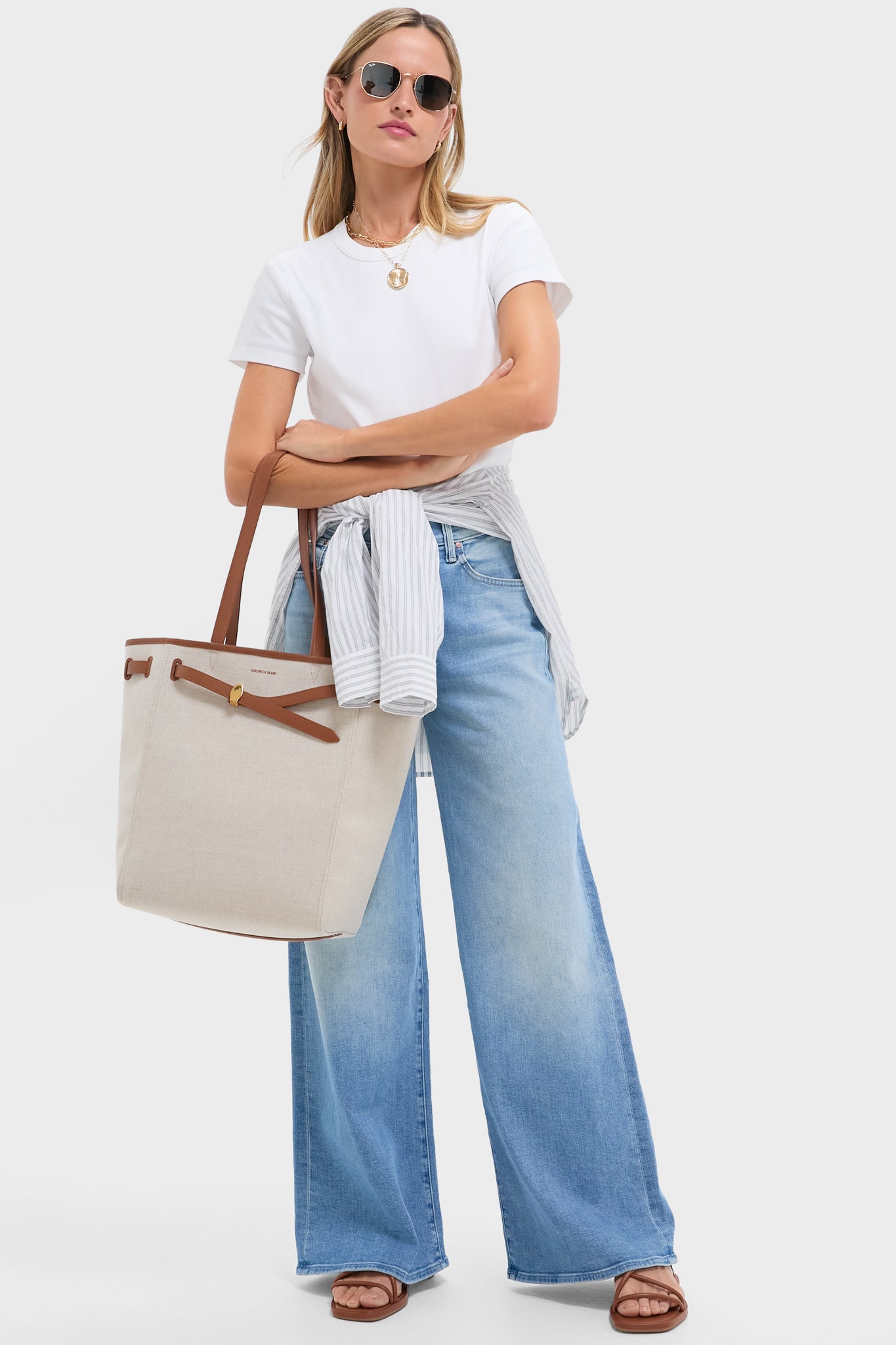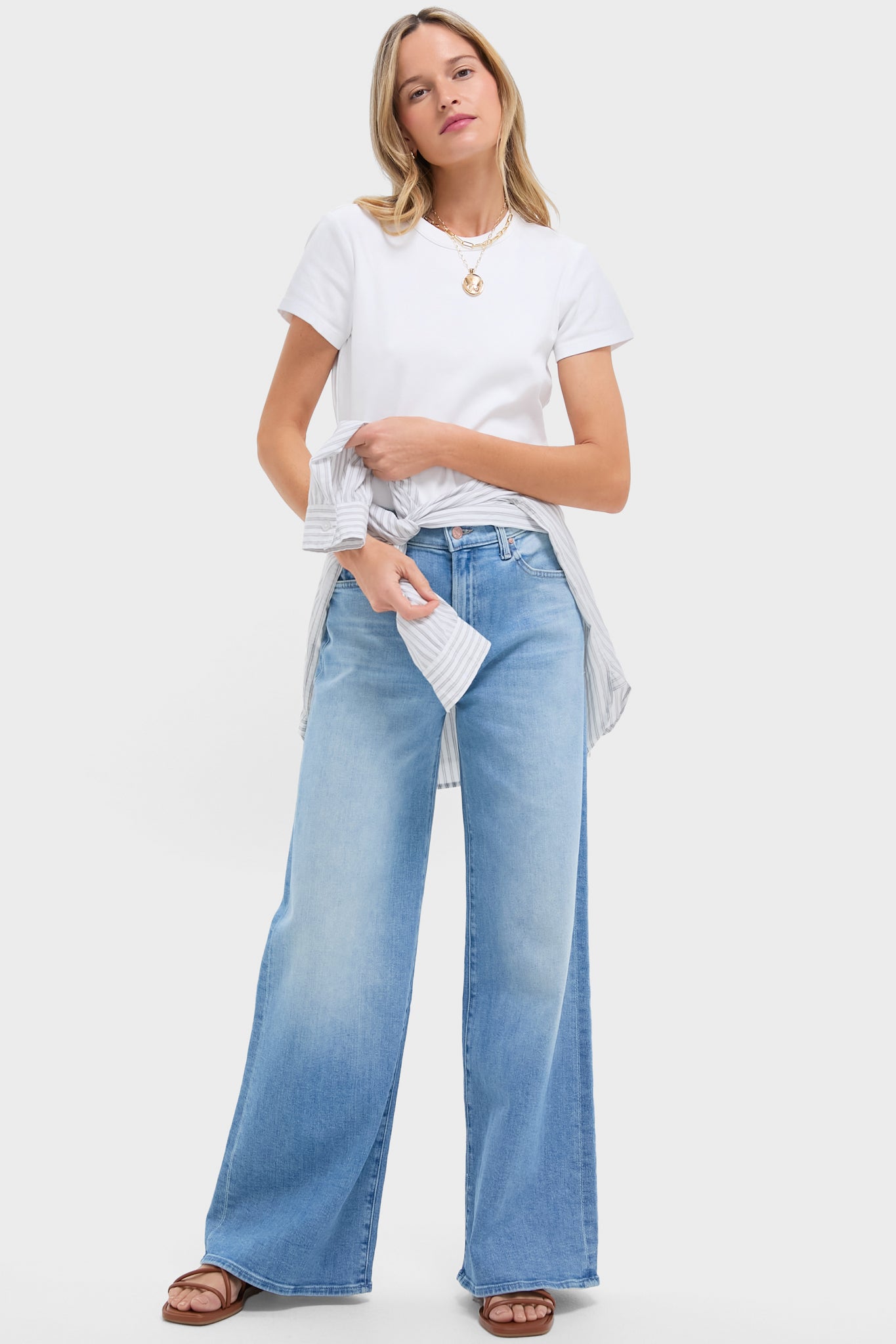 Designed to sit on the hips with a slouchy fit, these 70s-inspired jeans features a wide-leg, slightly slouchy fit, and low-set pockets. Made from stretch denim, the Can You Dig It? The Ditcher Roller Zip Sneak is a light blue wash with subtle whiskering and fading throughout. Pair with a polo, heels, and a bag for elevated styling, or sneakers, a cashmere sweater and sunnies for everyday wear!