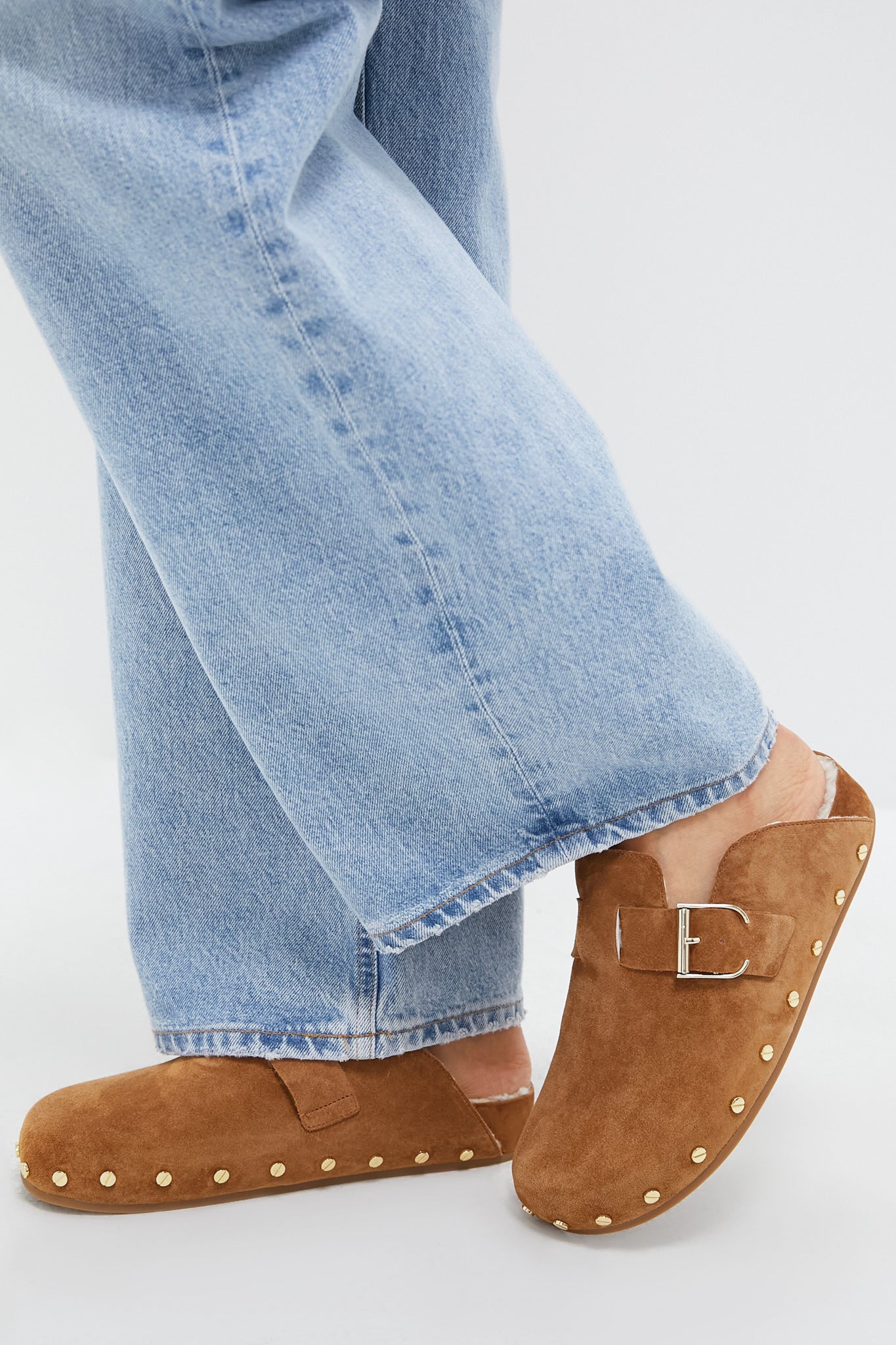 A chic clog, with the slide-on ease of a mule. The Fern features a suede exterior, a plush shearling interior, an adjustable buckle and studs along the base. Pair these studded clogs with everything from cropped denim and tees to skinny-leg trousers and relaxed knits.