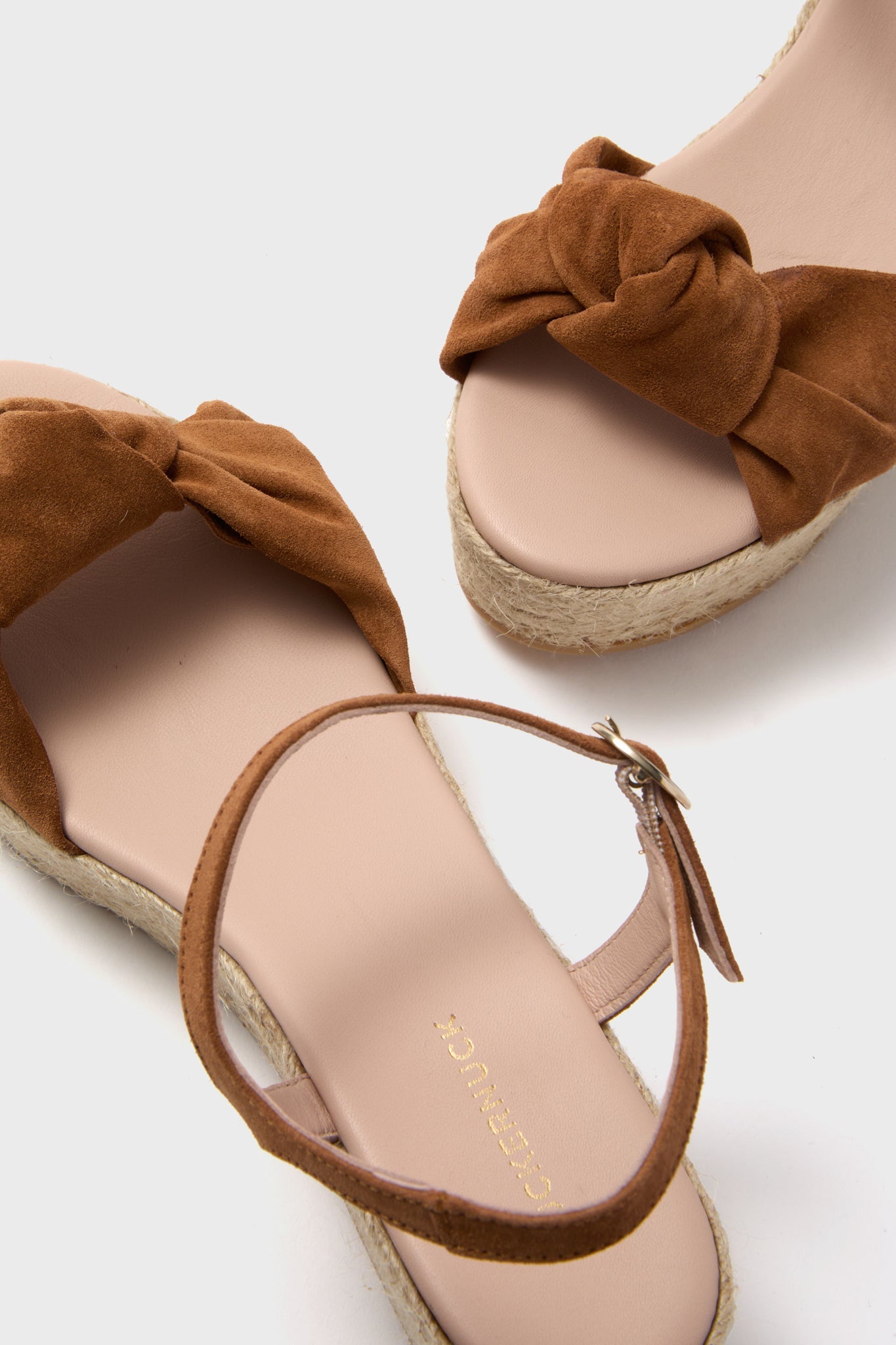 The Caramel Suede Harlow Wedge is an easy style that boasts a jute sole, knotted upper, adjustable ankle strap, and suede construction. Neutral yet eye-catching, these will pair with just about any maxi, mini, or set in your wardrobe!