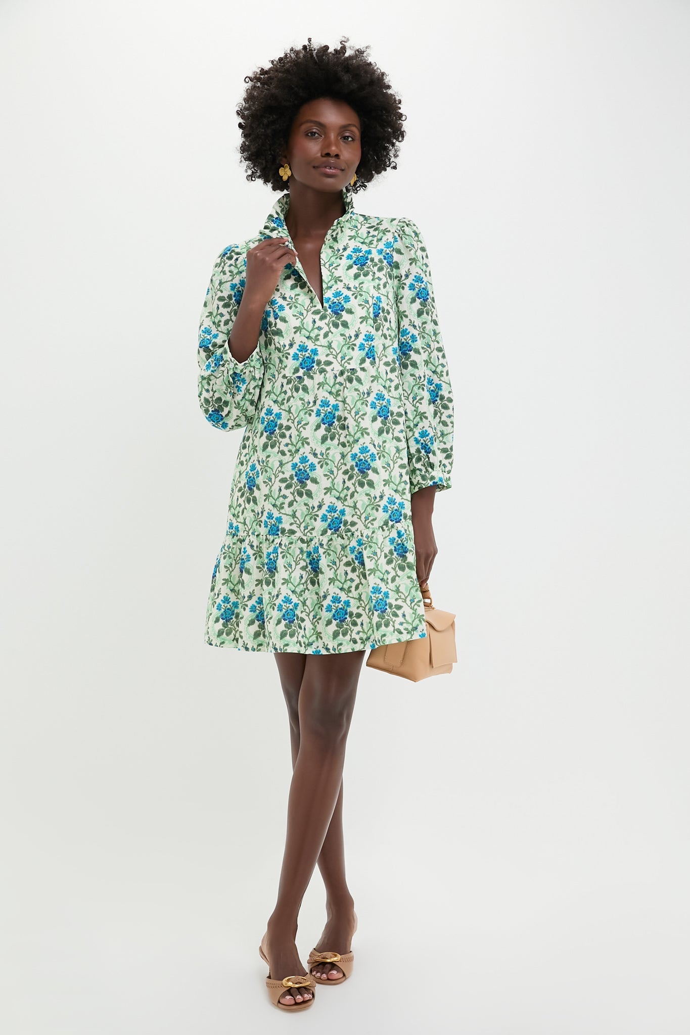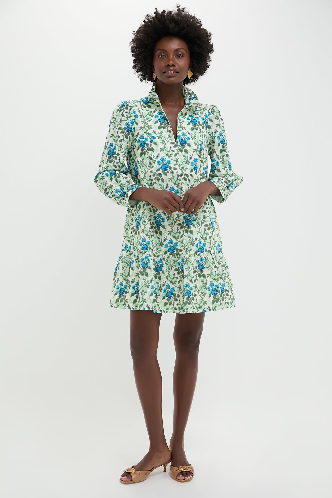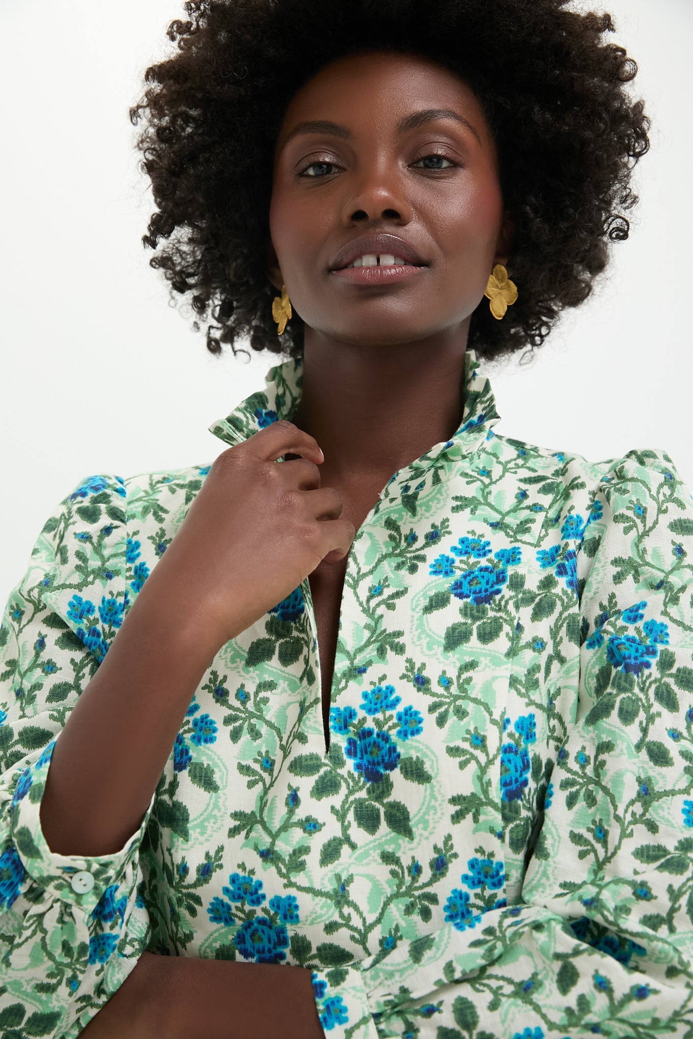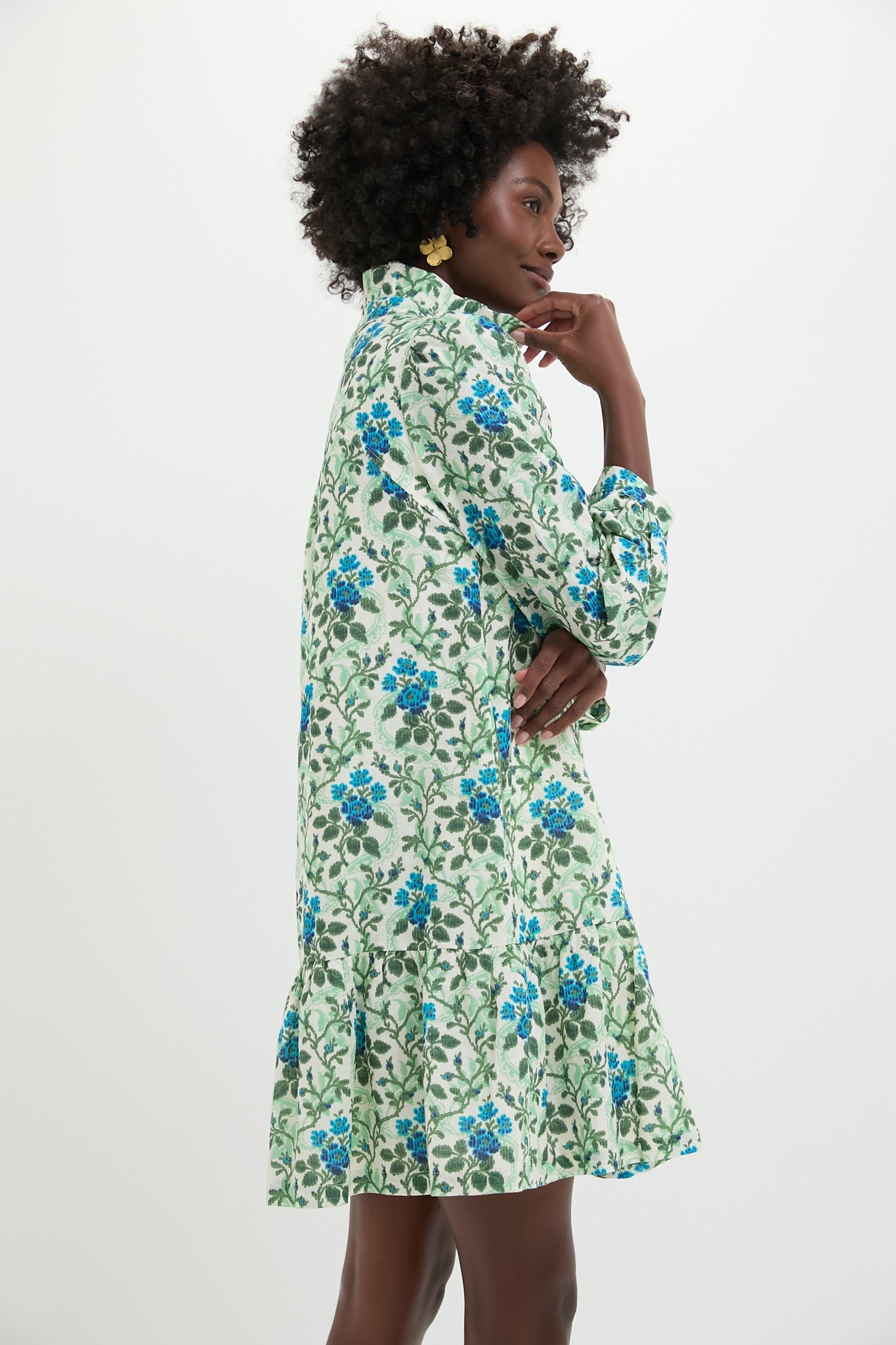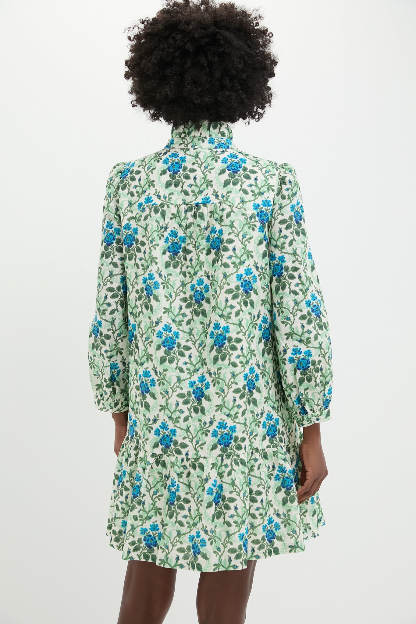 A feminine silhouette filled with movement and grace, the beauty of the Cerulean Vine Palmerston Dress is all in the details. Featuring a gorgeous vintage inspired print in shades of blue green, a ruffle collar and skirt, and slight puff sleeve this lightweight beauty is your go-to dress for garden parties, dinner out, or wherever your plans take you this season.