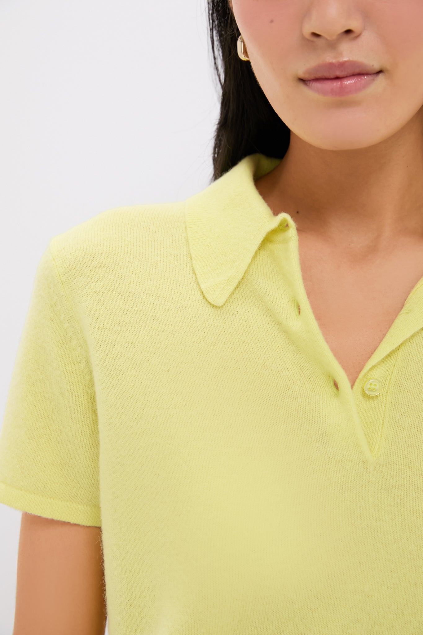 The Cashmere Short Sleeve Polo is the perfect elevated wardrobe staple. With a ribbed hem and sleeve, tonal buttons, and relaxed collar, this top can be dressed up or down. We paired it with a skirt, heels, and a mini bag for easy, elevated look!