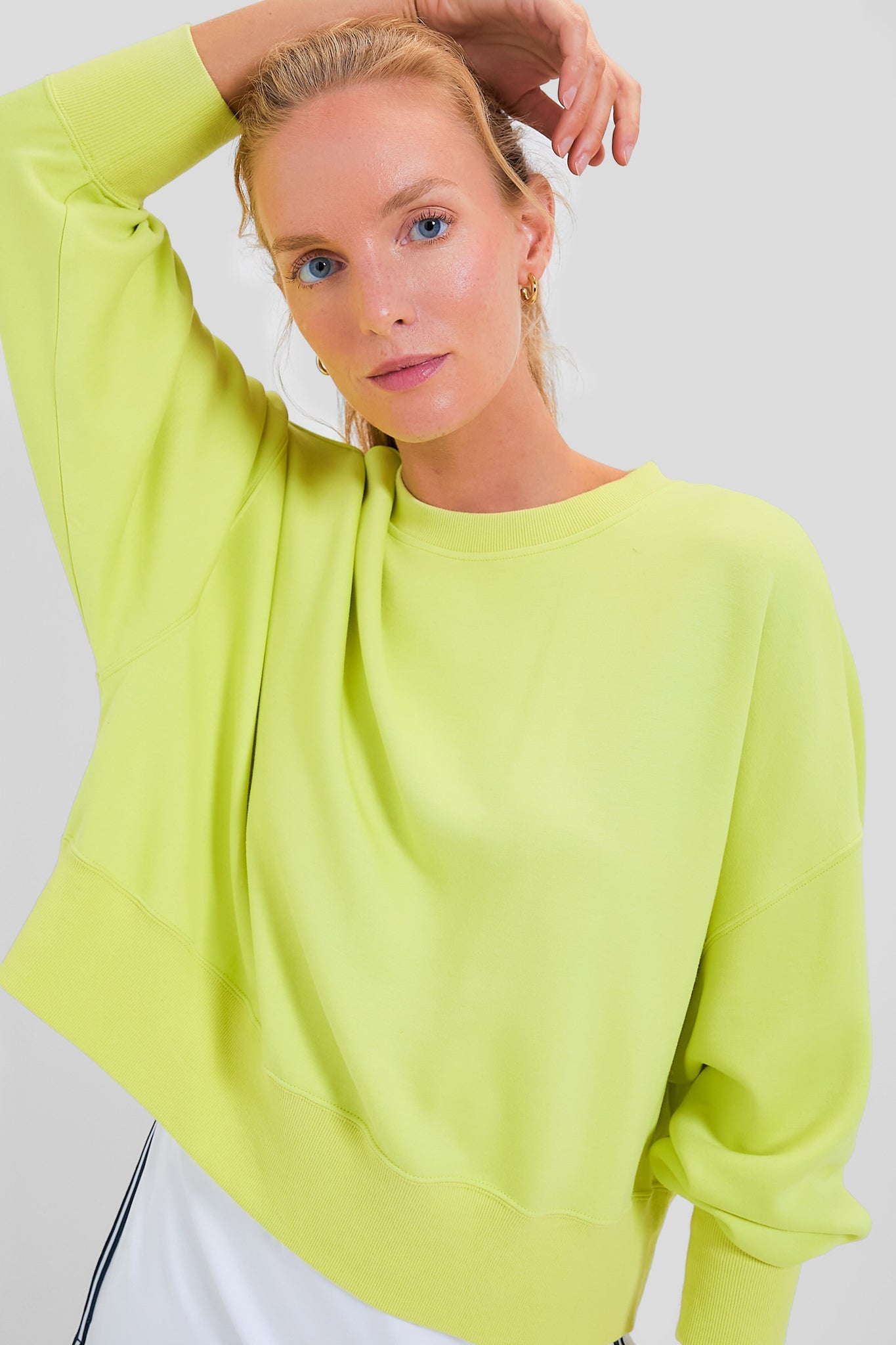 A classic pullover in a bright color, we are sure to be in the Cropped Oliver Pullover all season long. With flattering dropped shoulders, a slouchy relaxed fit, and rib trim along the neckline, cuffs, and hem, this style staple is an easy throw-and-go look. Pair with denim and sneakers for casual weekends, or pull on over your yoga outfit on the way to the studio.