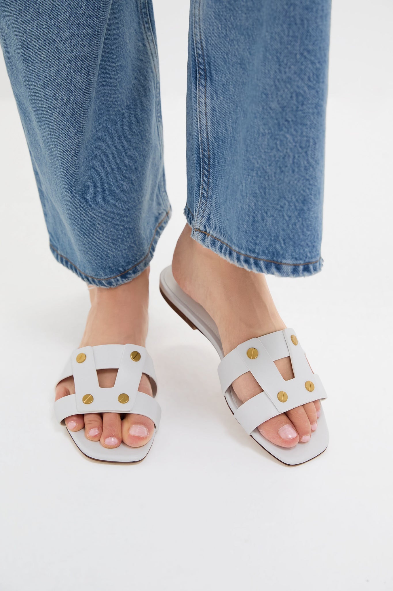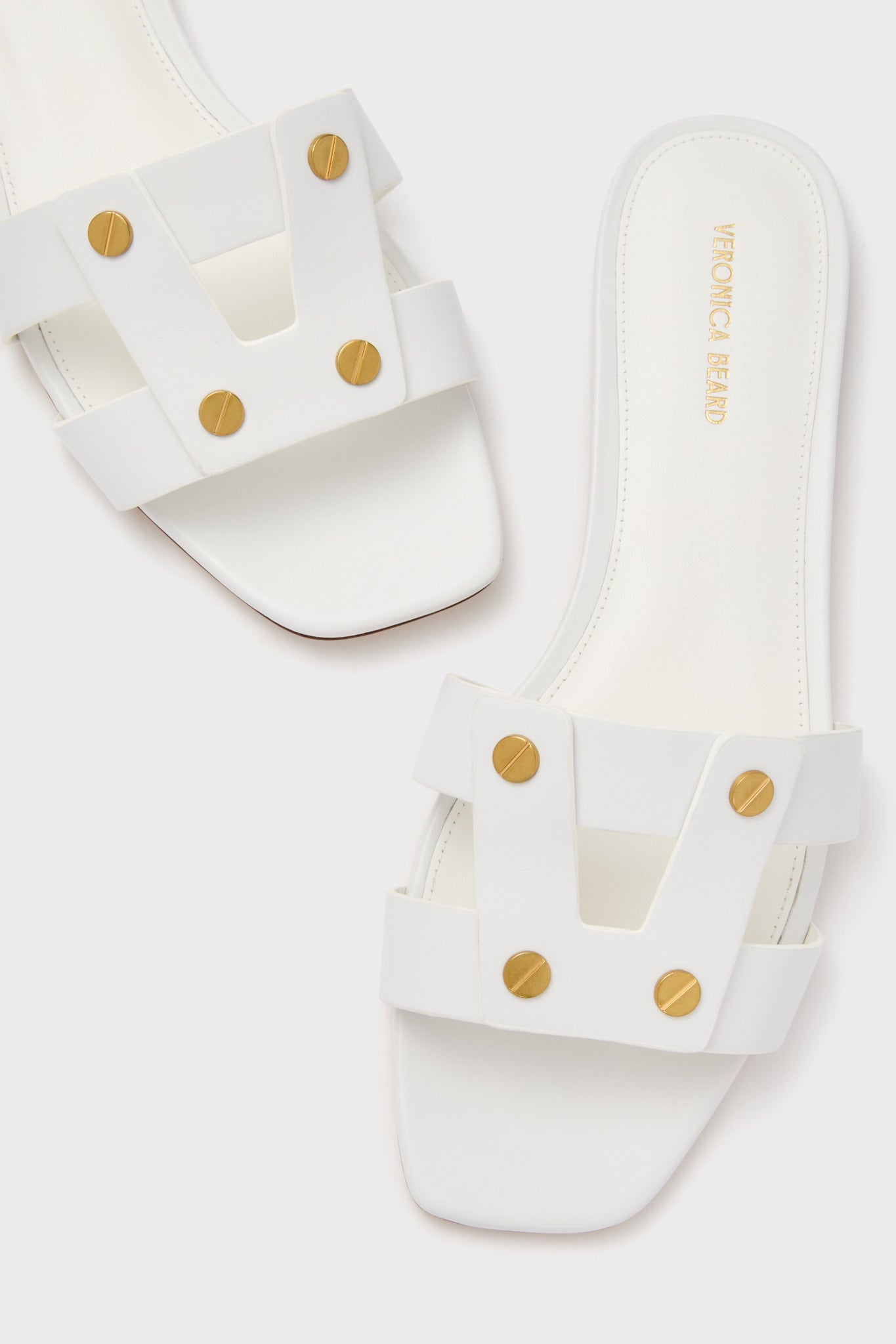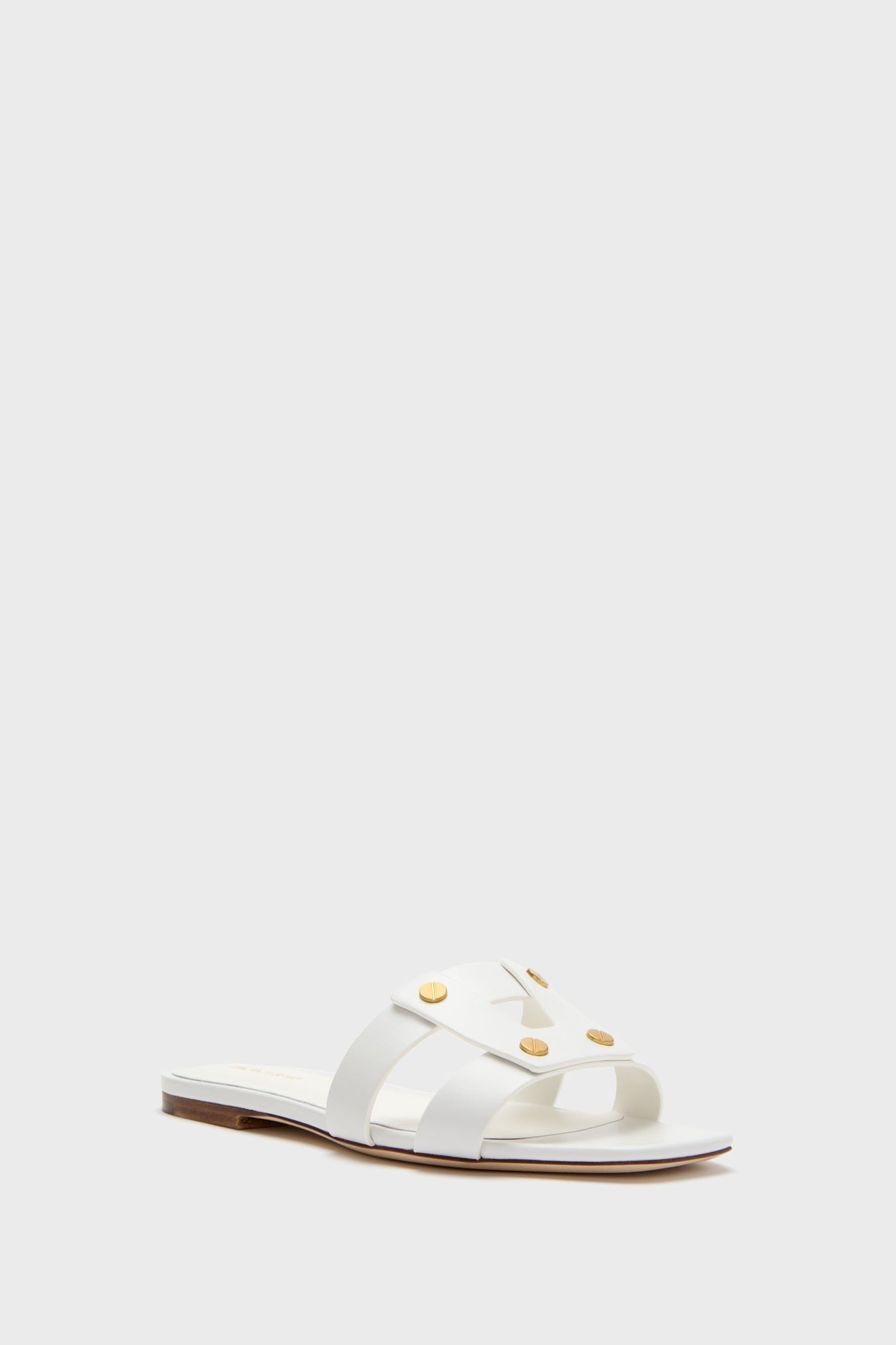 Expertly crafted from leather, the Via open-toe slide features a minimal, multi-strap design punctuated by gold hardware. Equal parts polish and ease, it's is great for weekends and wanderlust.