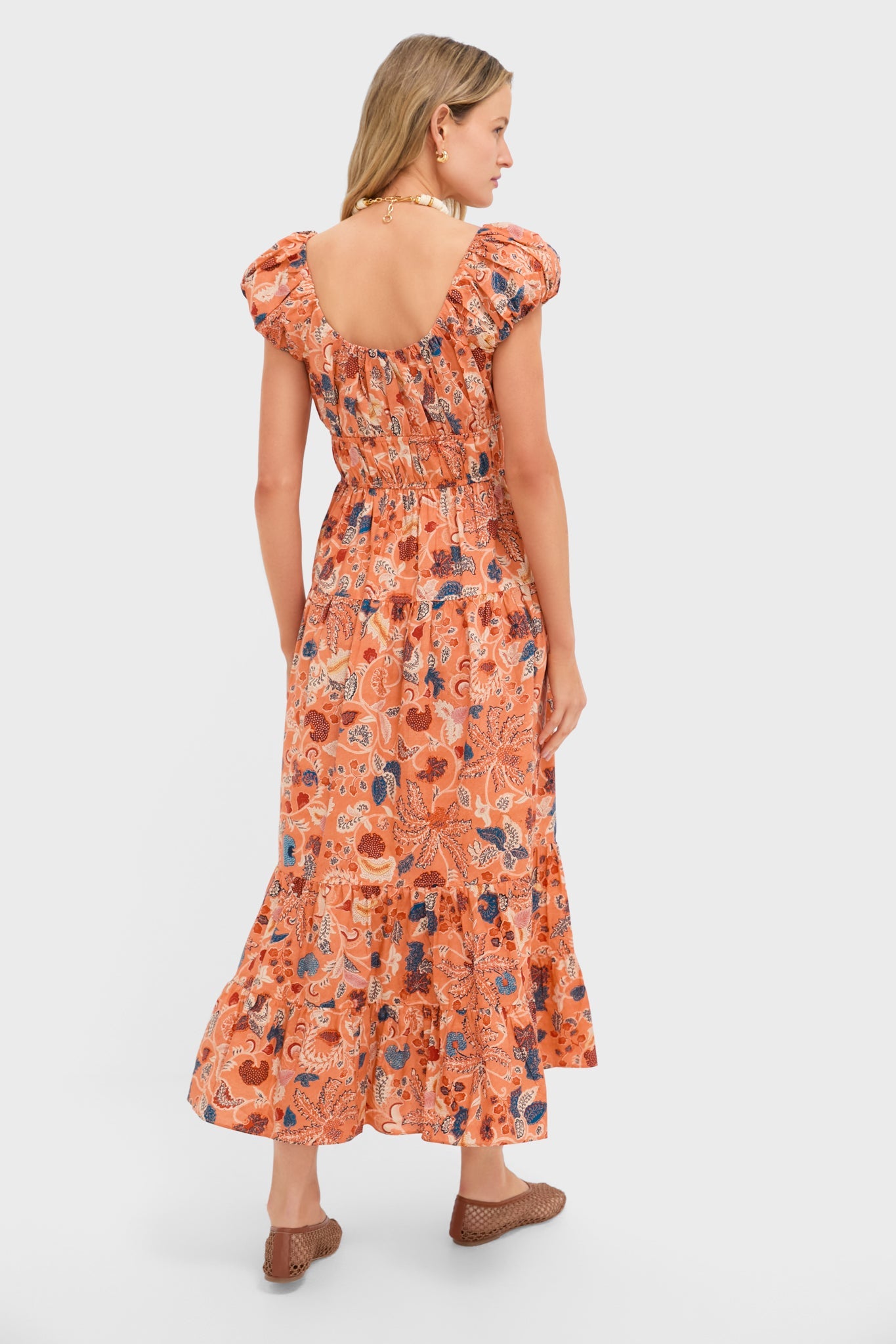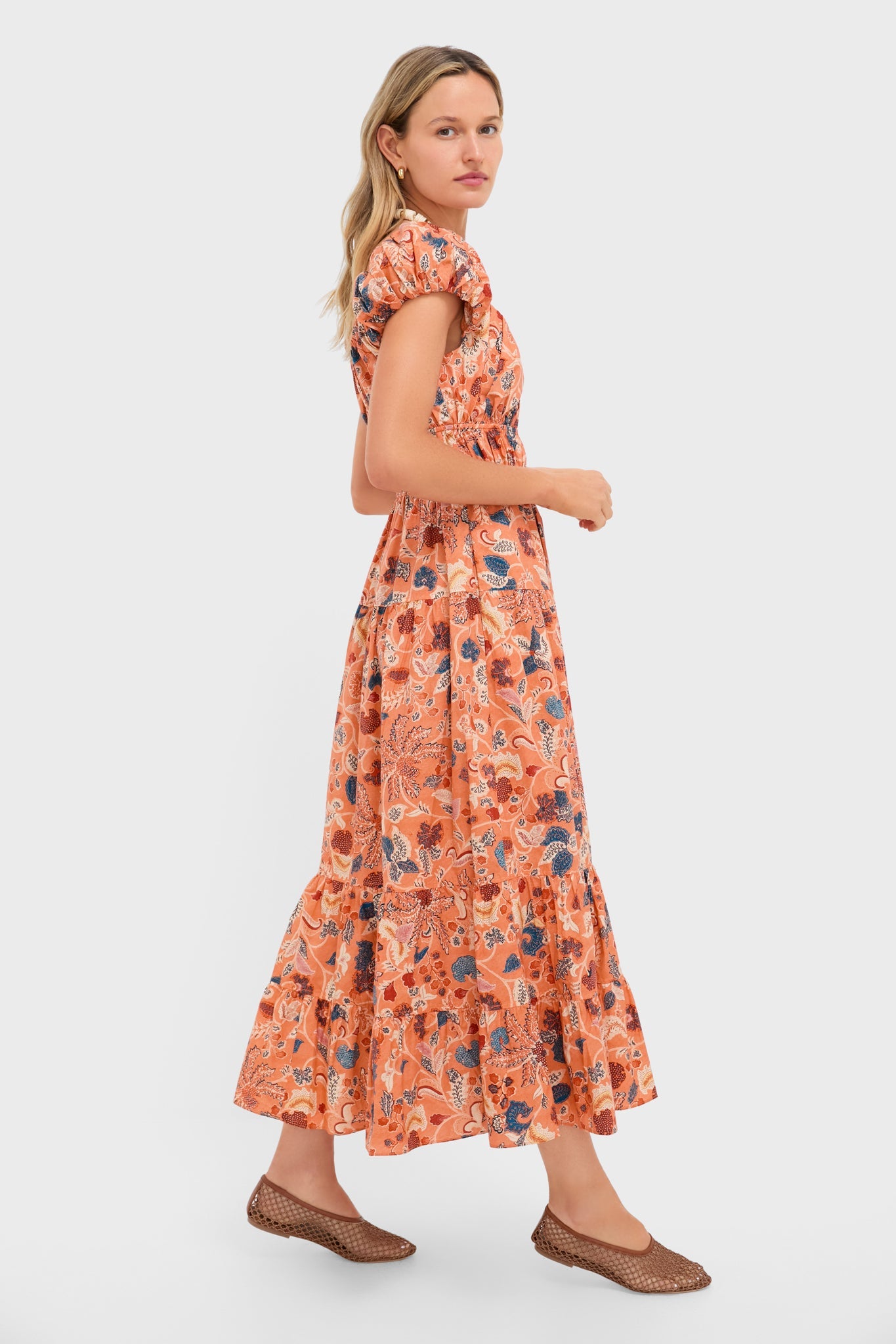 Coral Peony Paloma Cap Sleeve Midi Dress