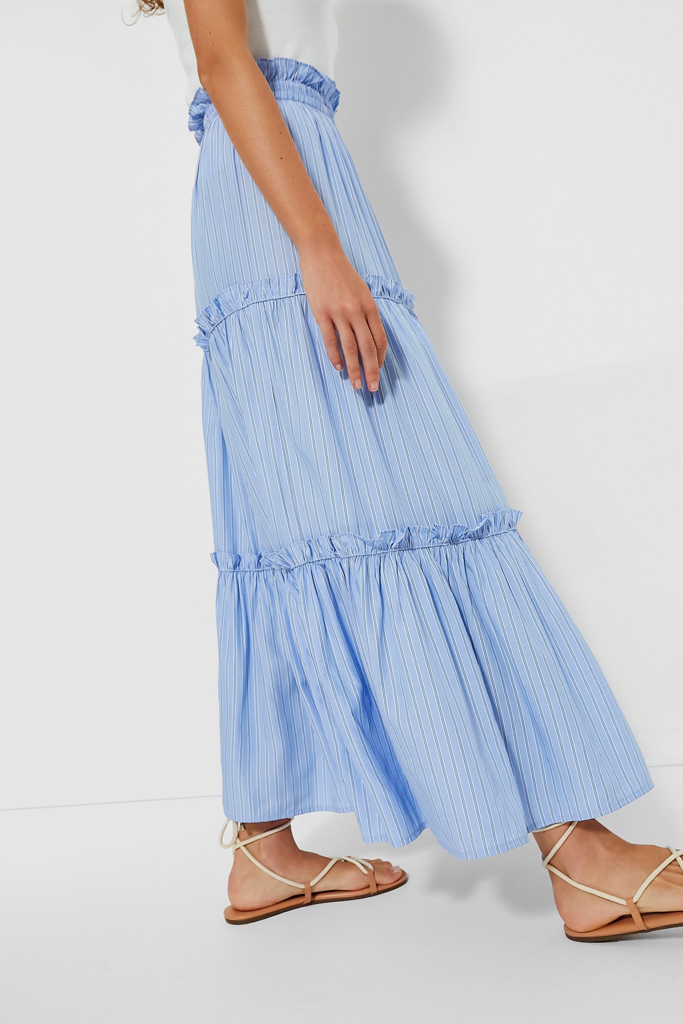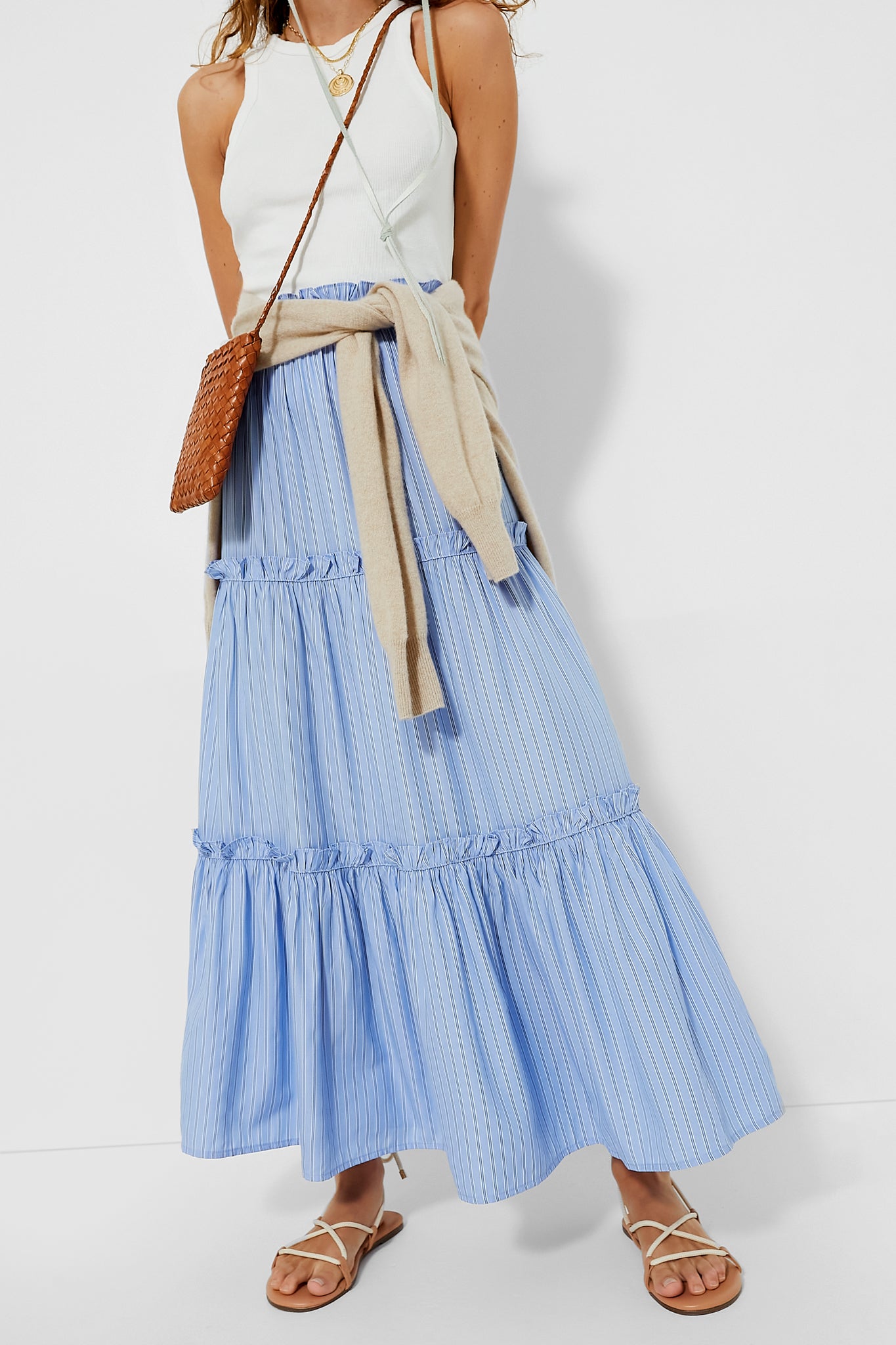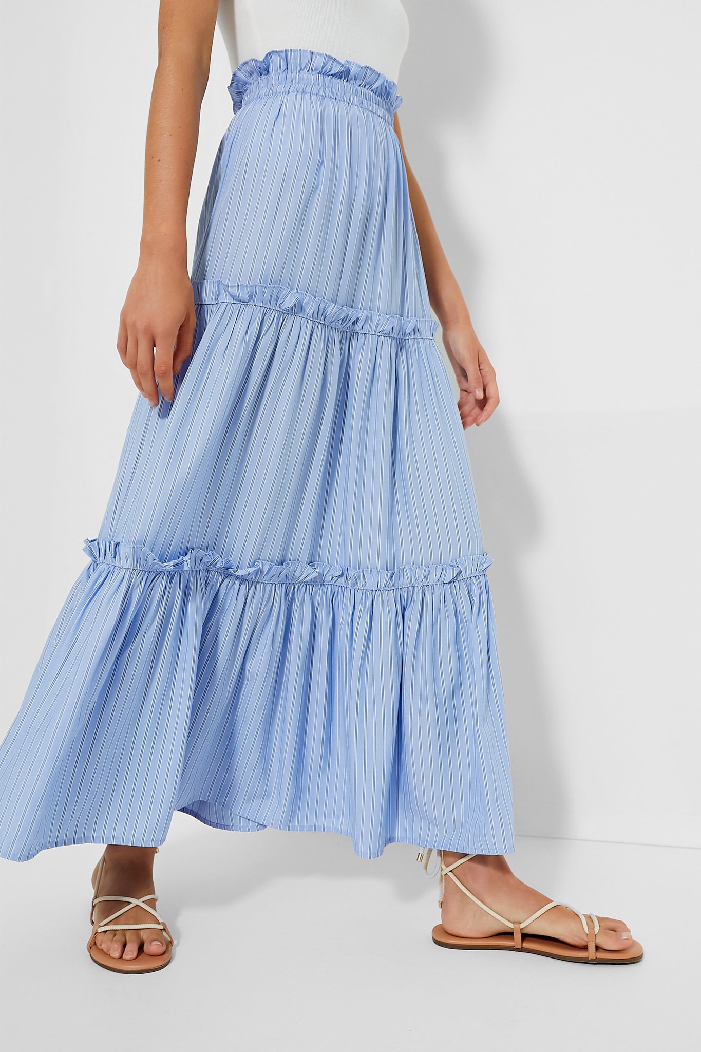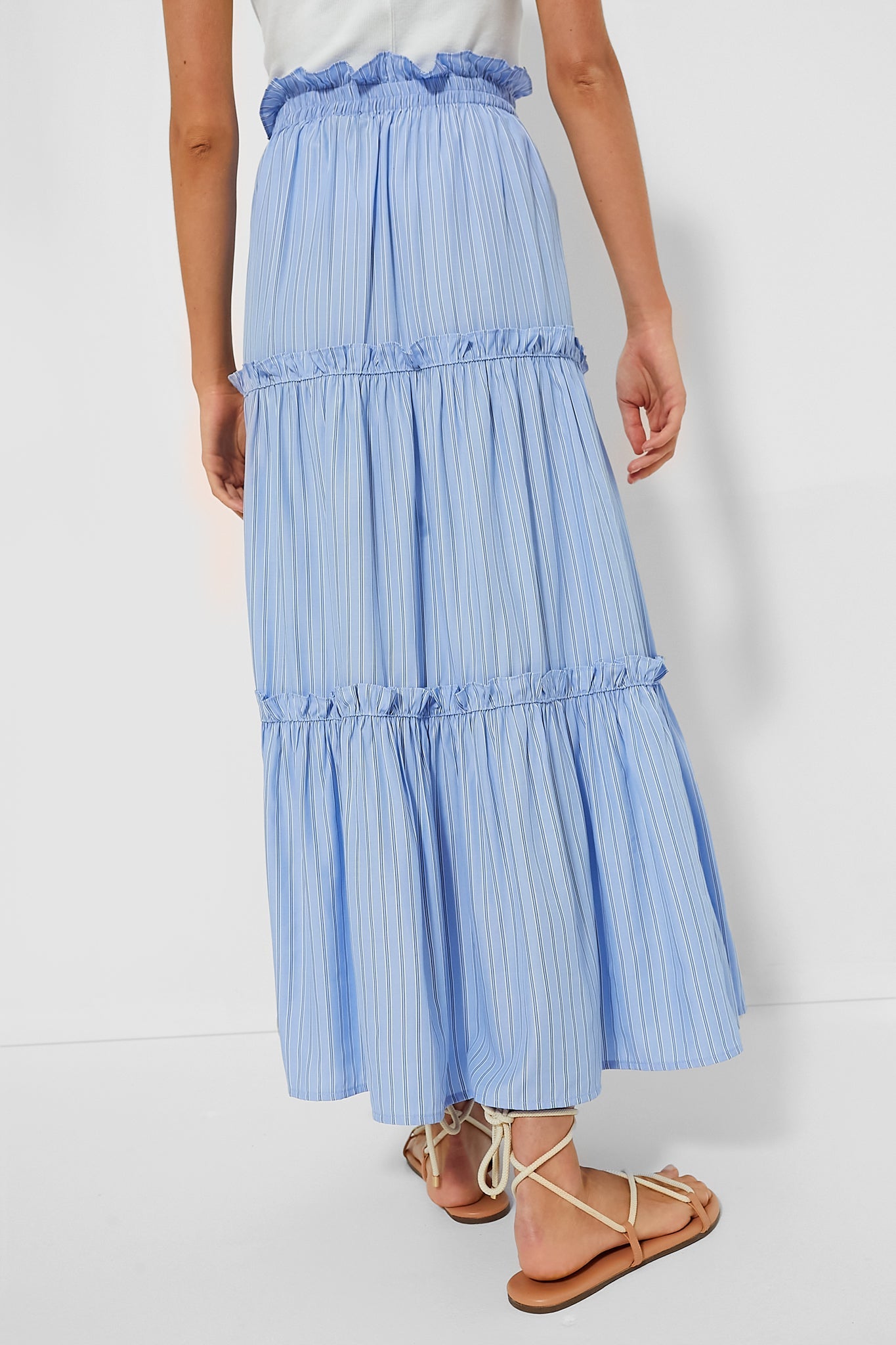 In a timeless cornflower blue stripe, this skirt is one you'll love for summers to come.